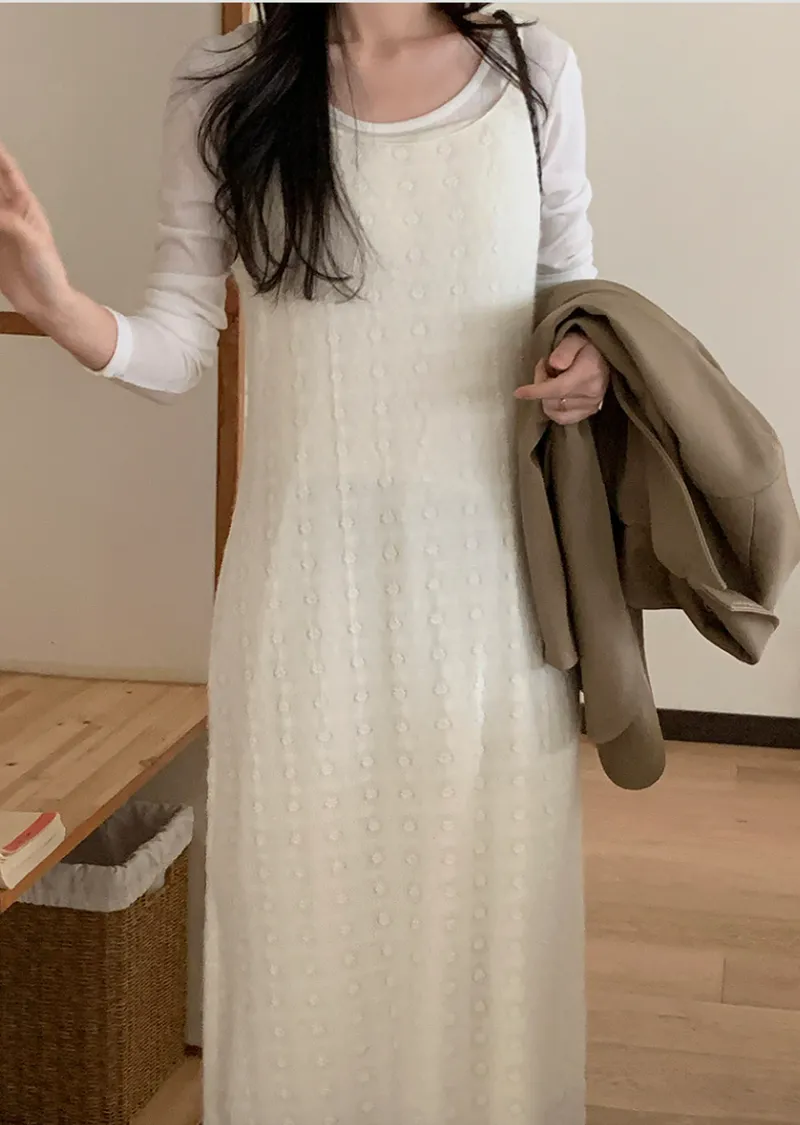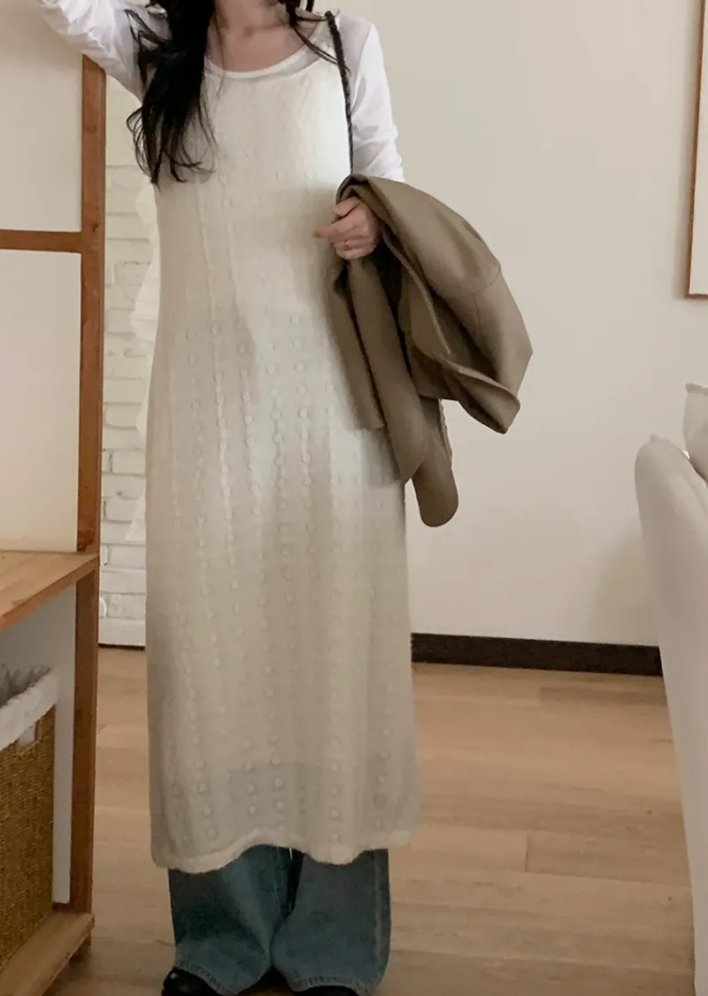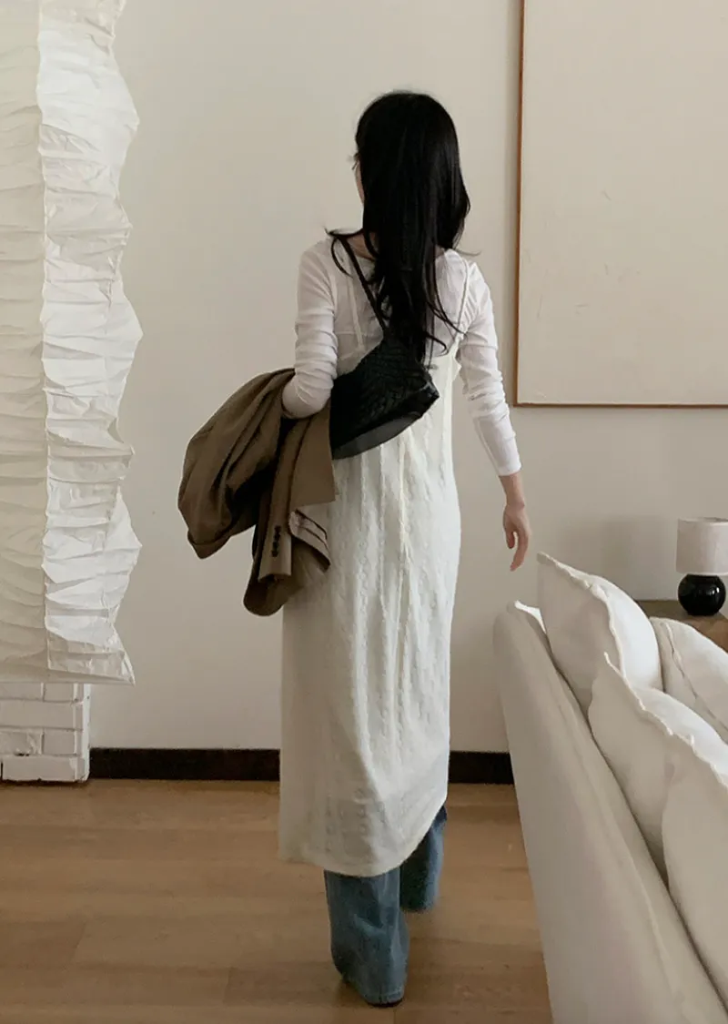 優雅氣質絨質蕾絲穿搭無袖長連身裙