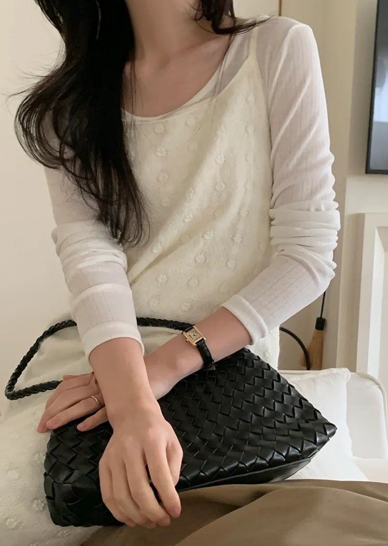 柔美氣息鏤空孔洞線條修身剪裁上衣