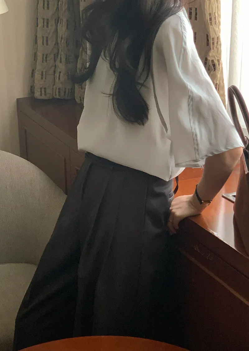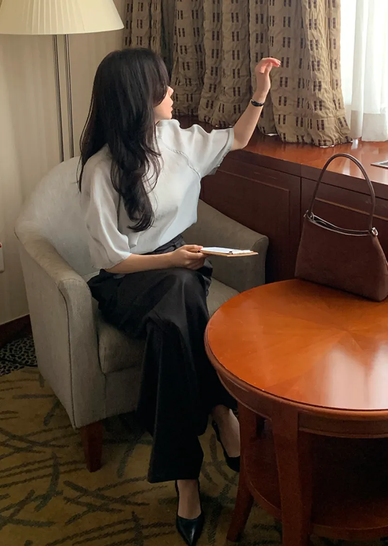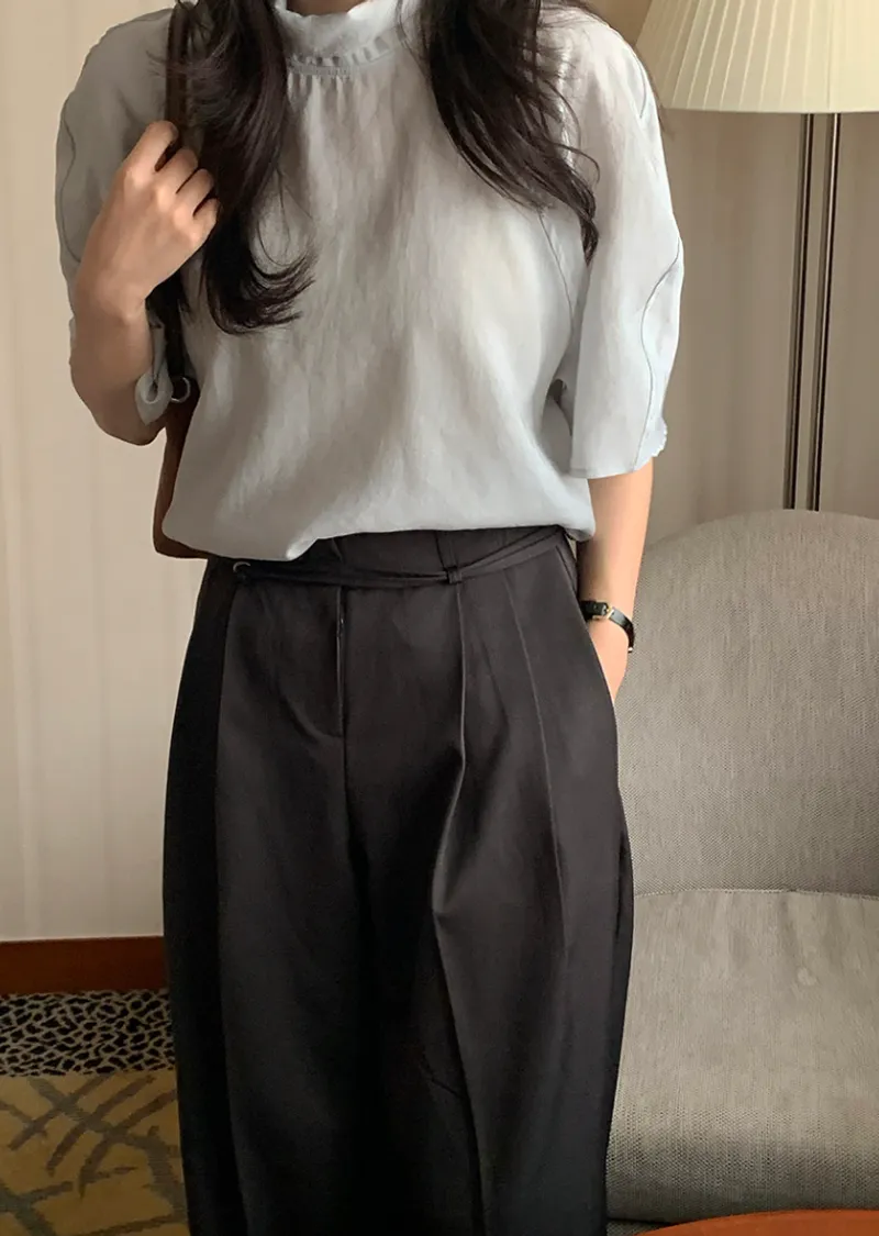 精緻現代輪廓領綁帶微透膚上衣