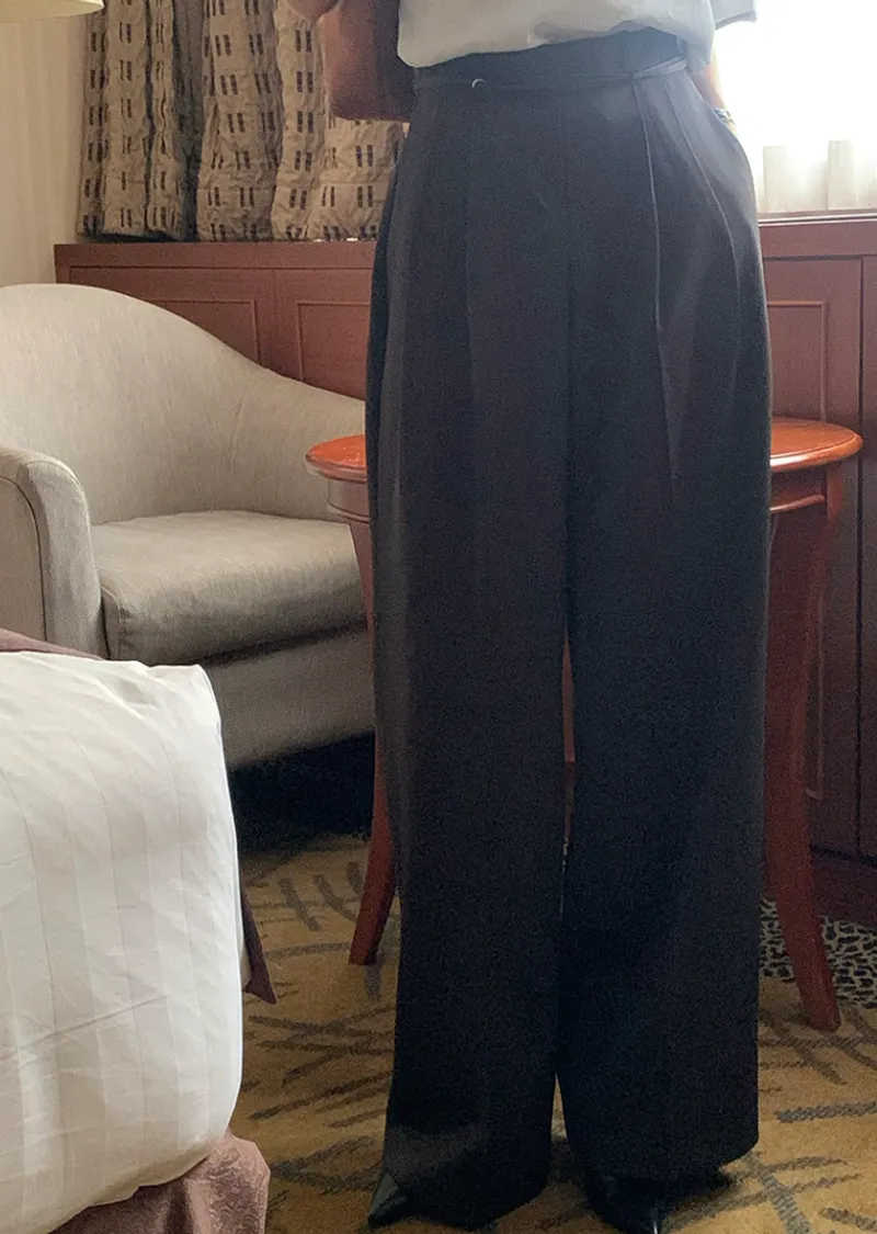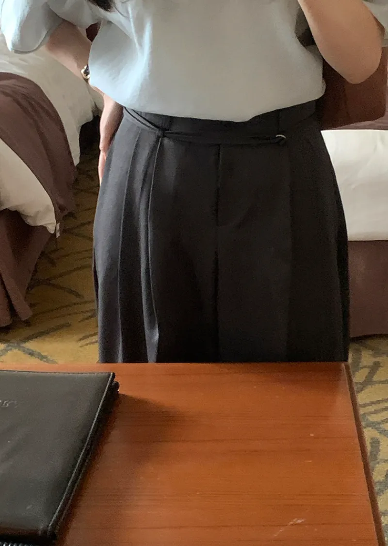 現代時尚氣息垂墜雙針摺腰帶休閒褲