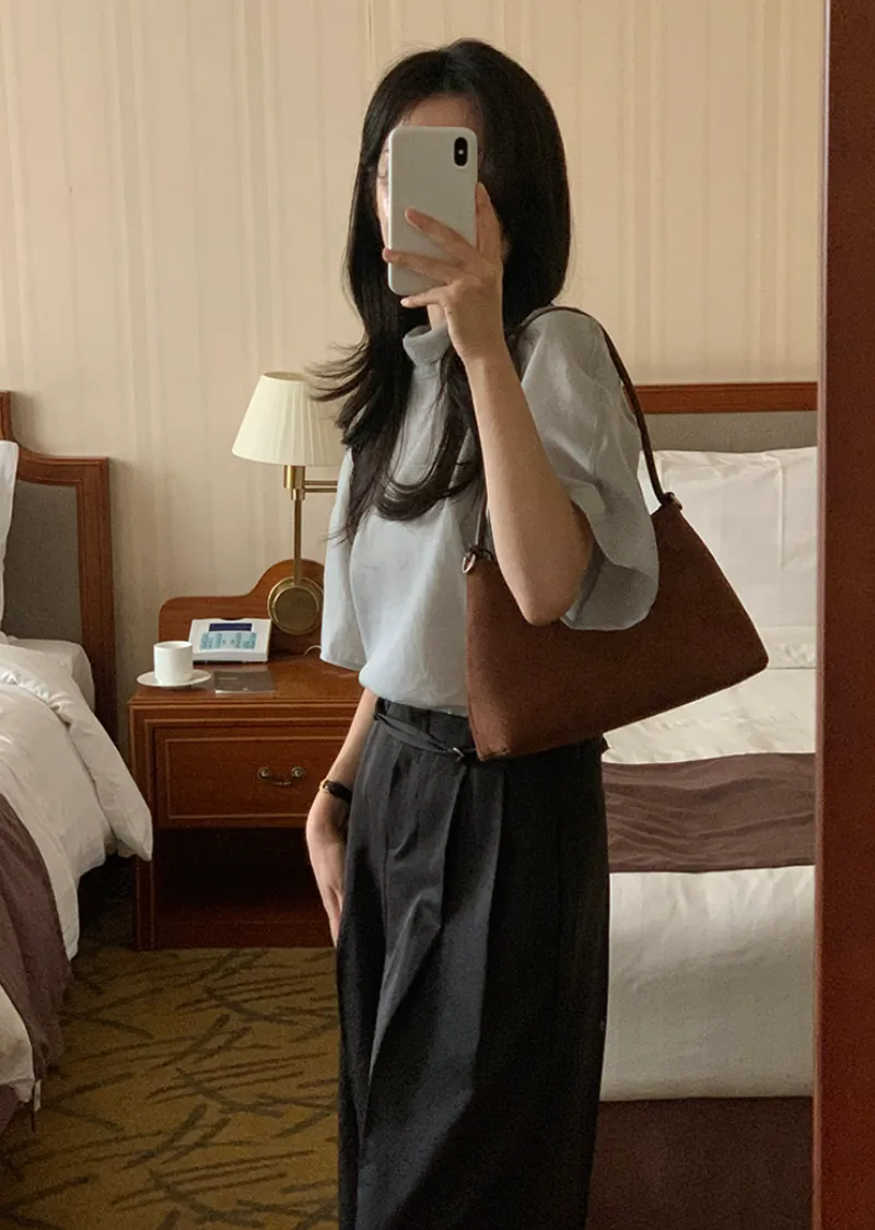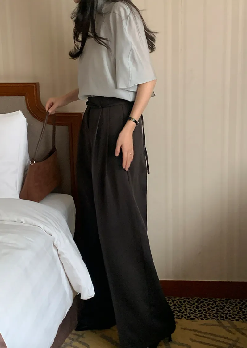 褶襉延伸至褲腳,腰部的兩個細褶自然勾勒出