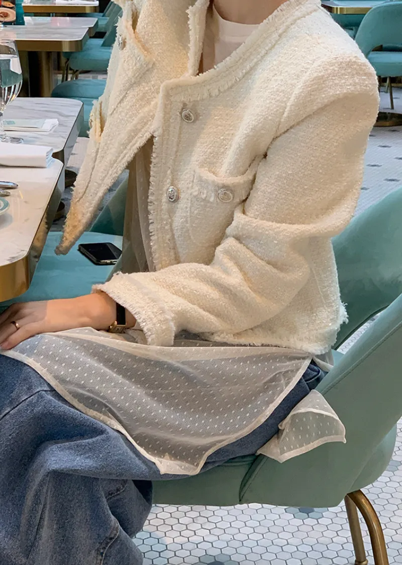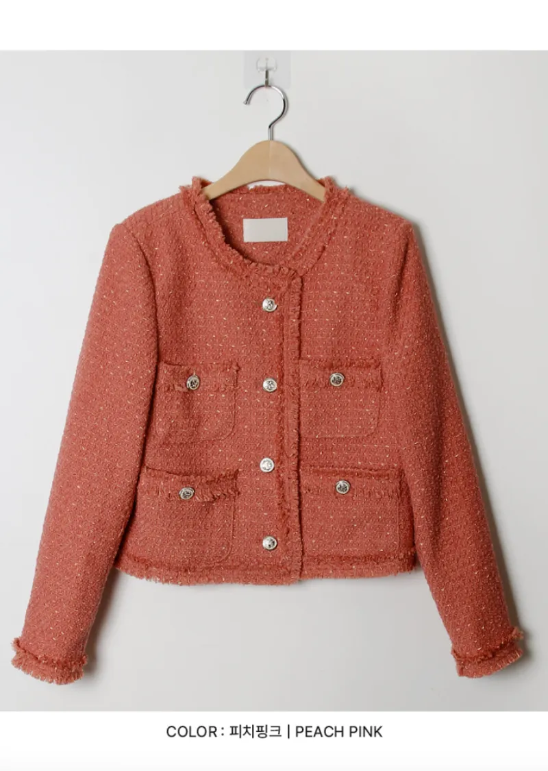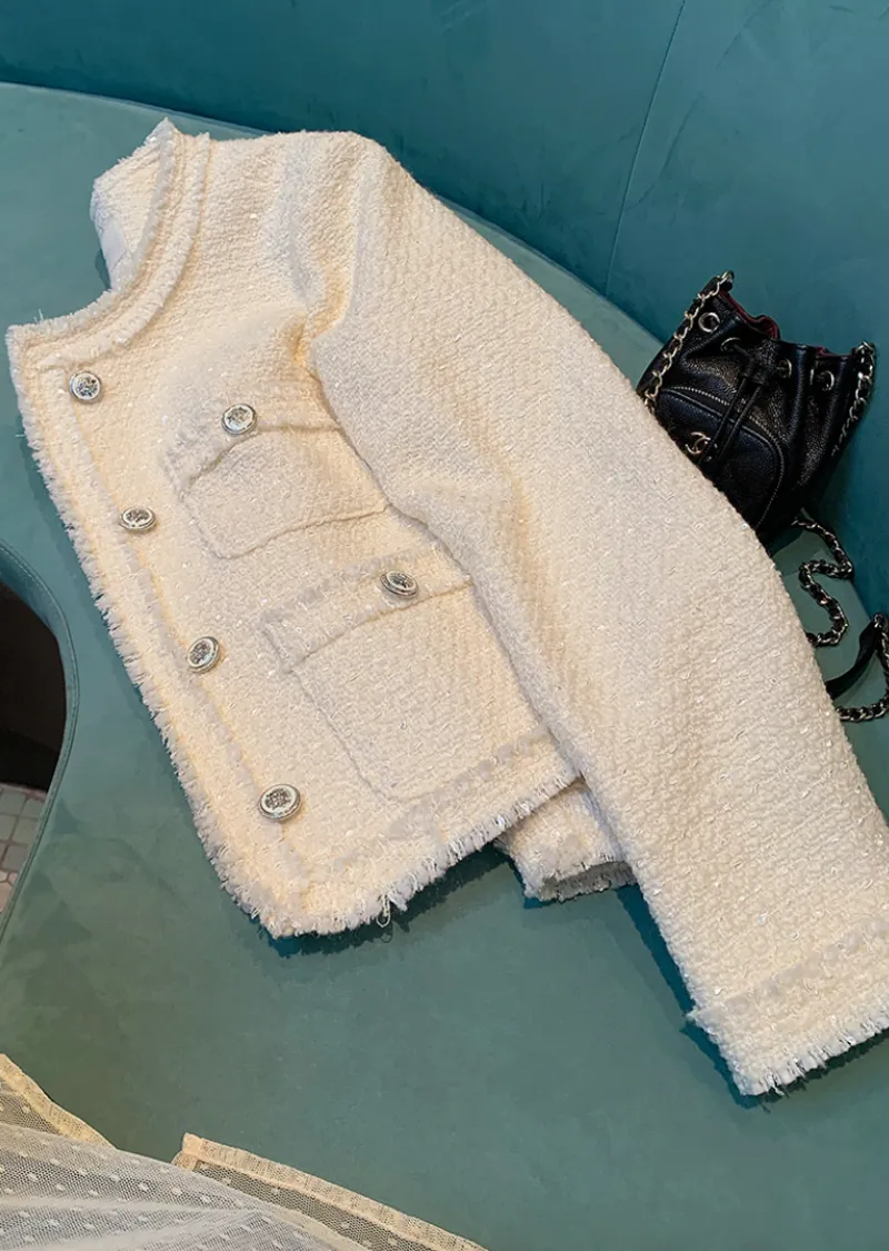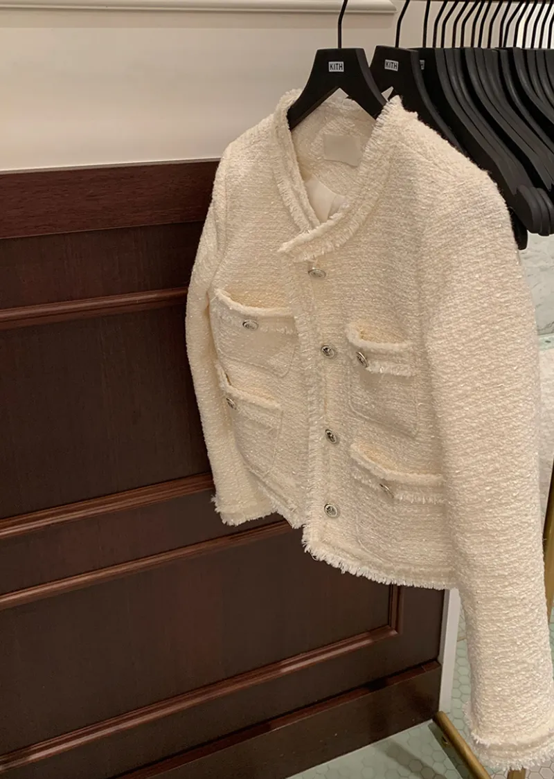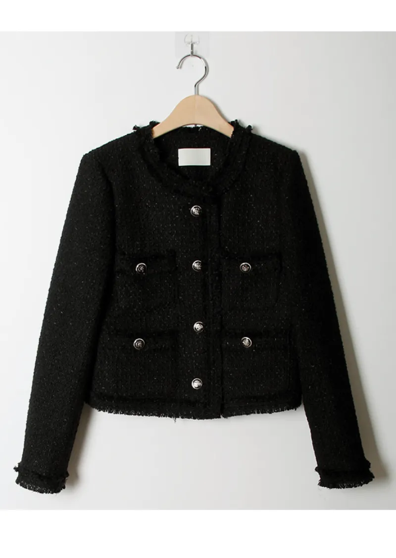浪漫氛圍流蘇飾邊奢華銀扣花呢外套