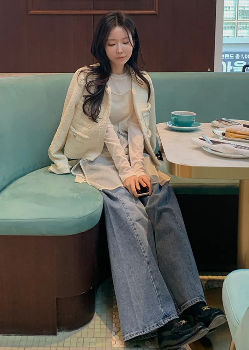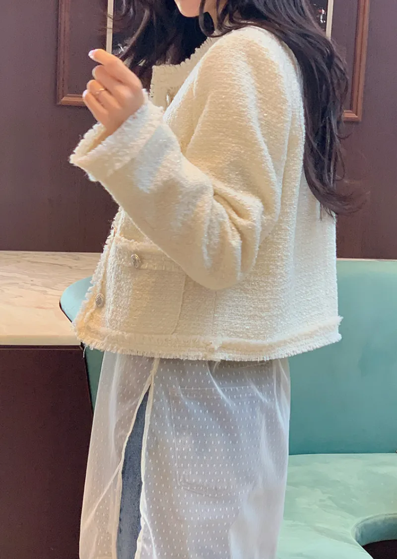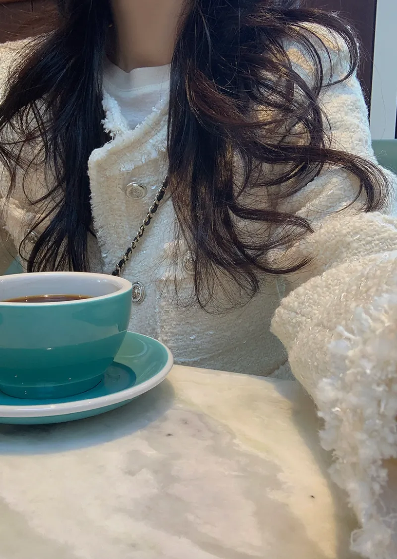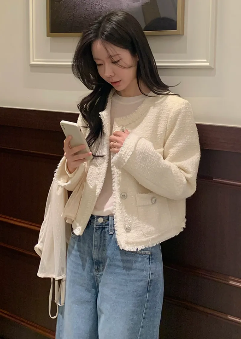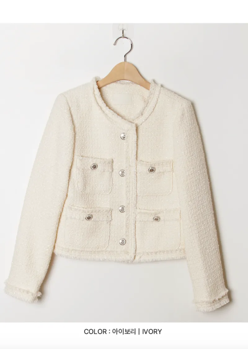 浪漫氛圍流蘇飾邊奢華銀扣花呢外套