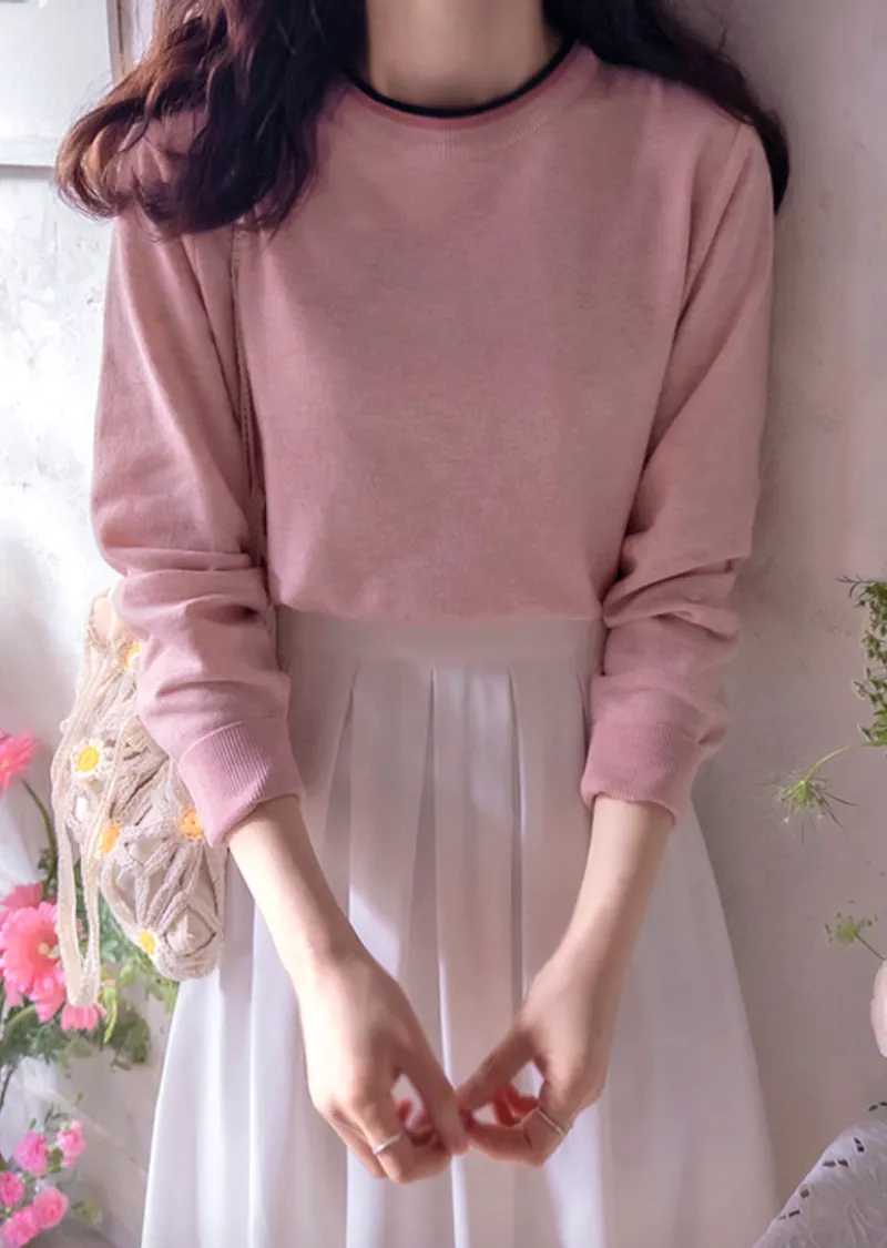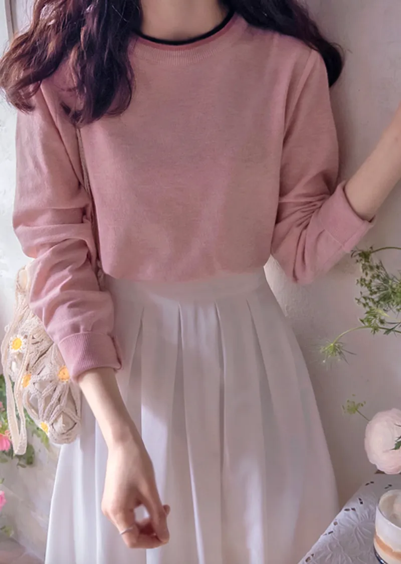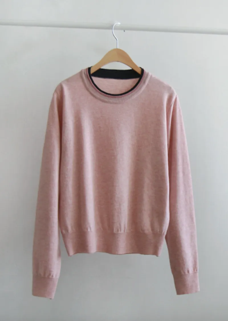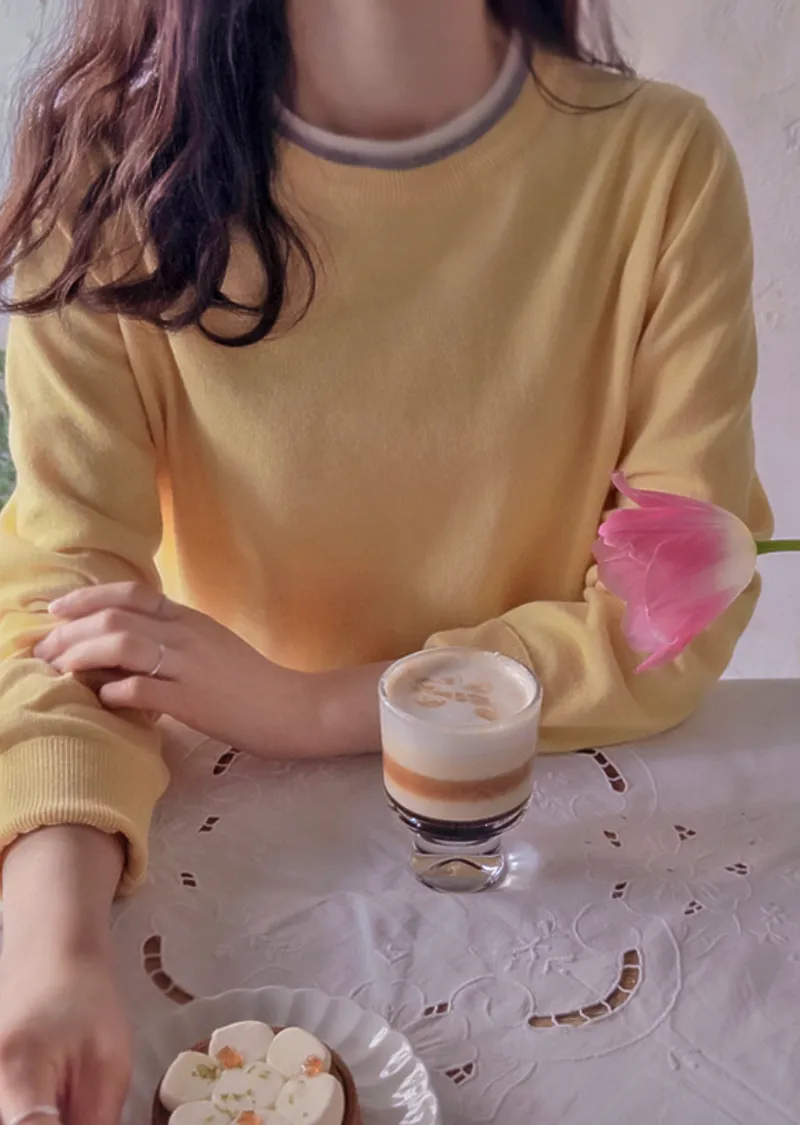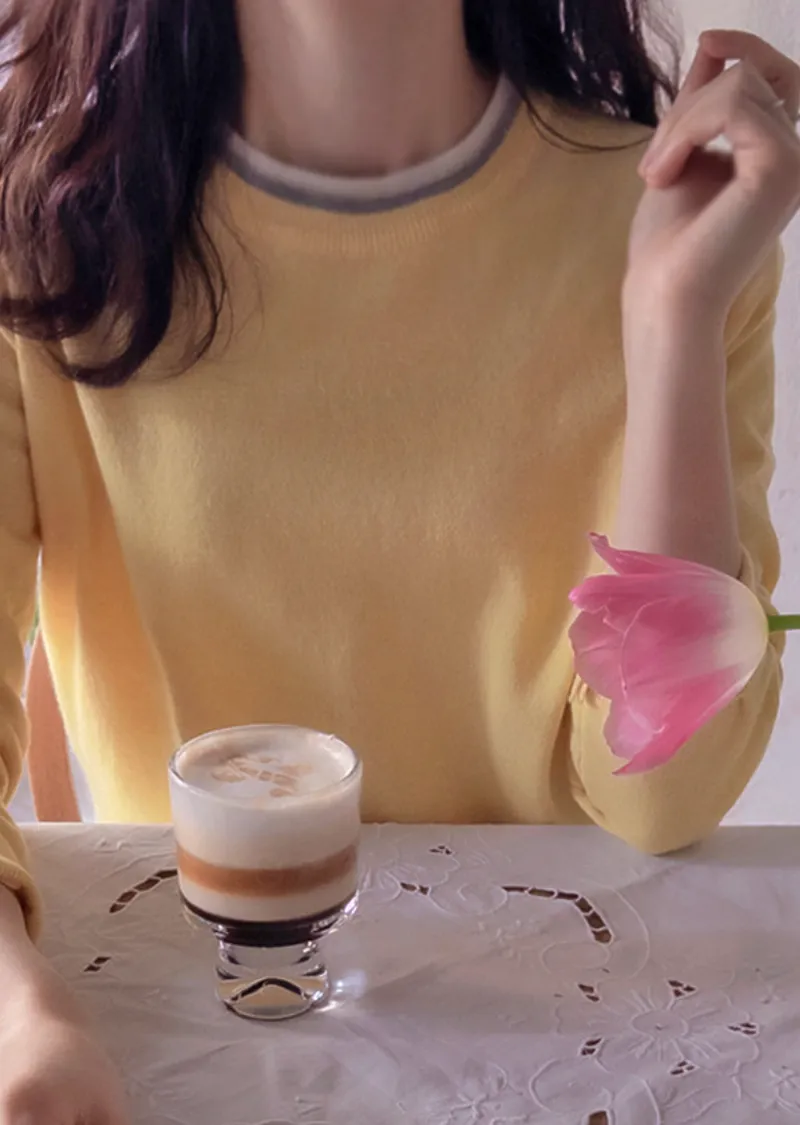 【春季新品】【舒適布料,柔軟彈性】【高性價比配色,基礎領口設計】【簡潔俐落】【領口疊層設計】【柔軟濕潤的彈性布料,打造迷人造型】【明亮精緻的針織上衣】