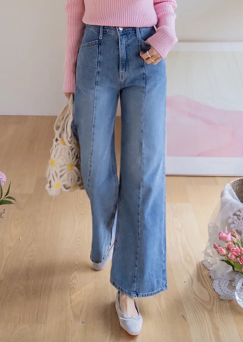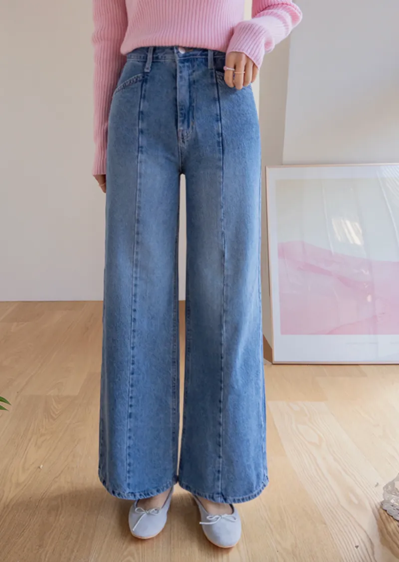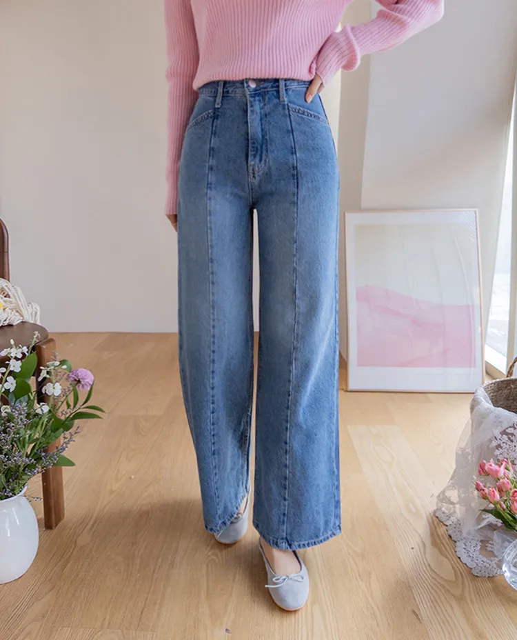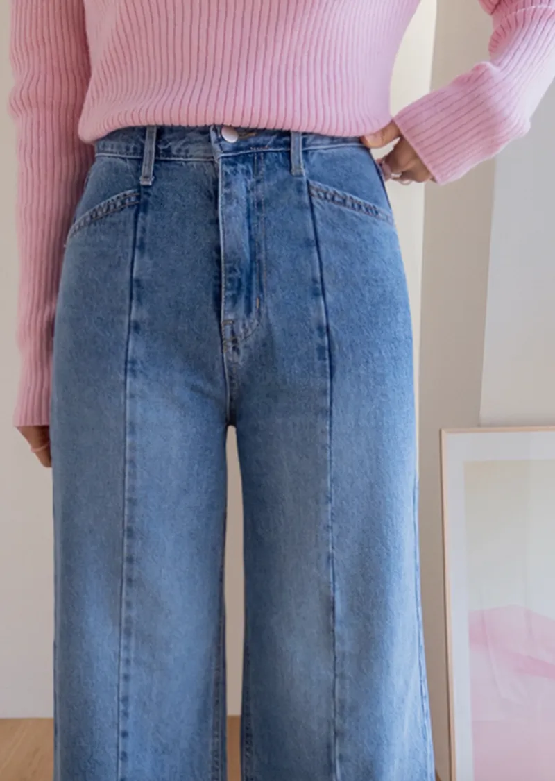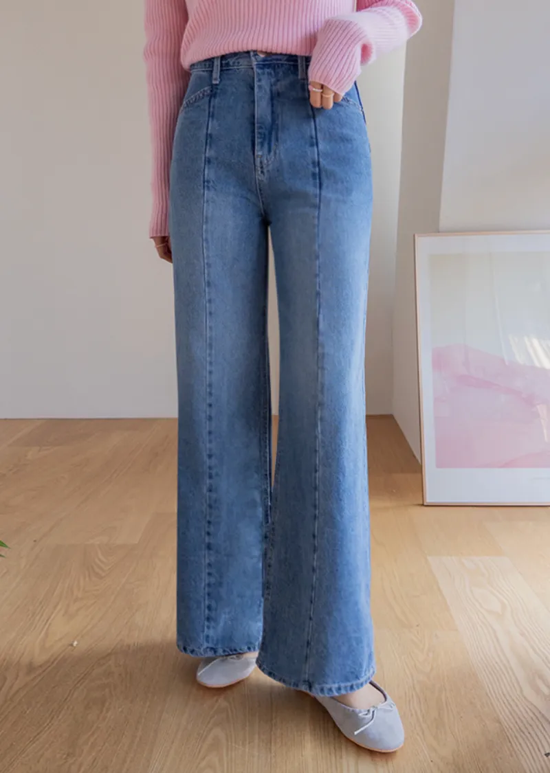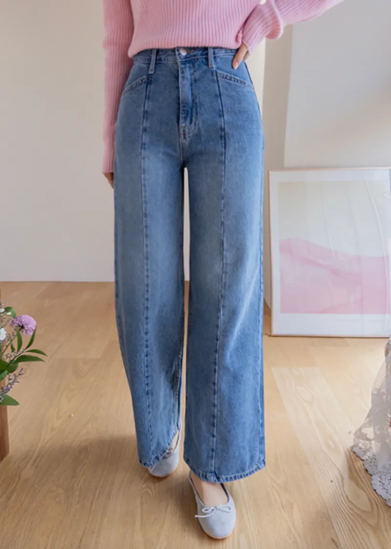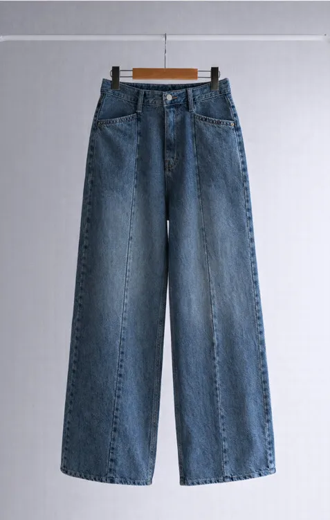 魅力精緻剪裁顯瘦直筒寬版牛仔褲
