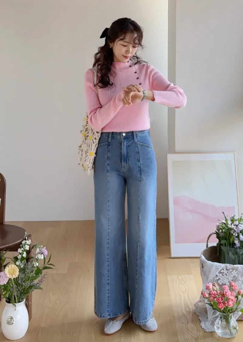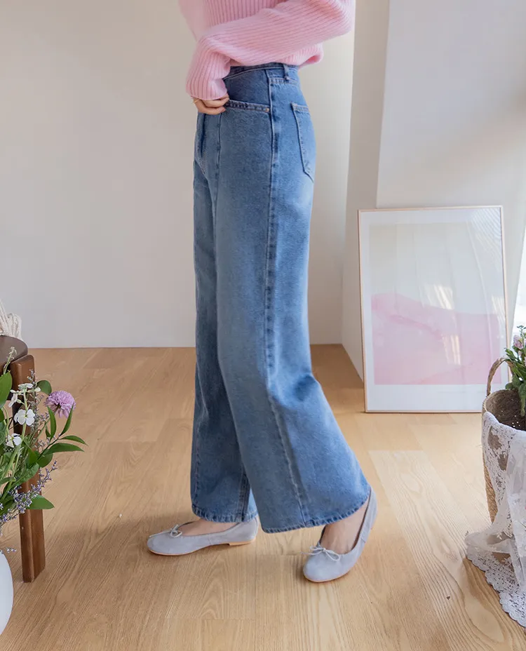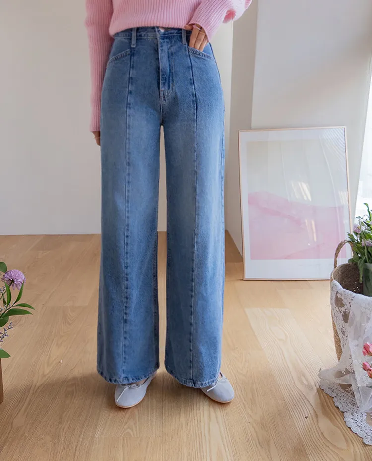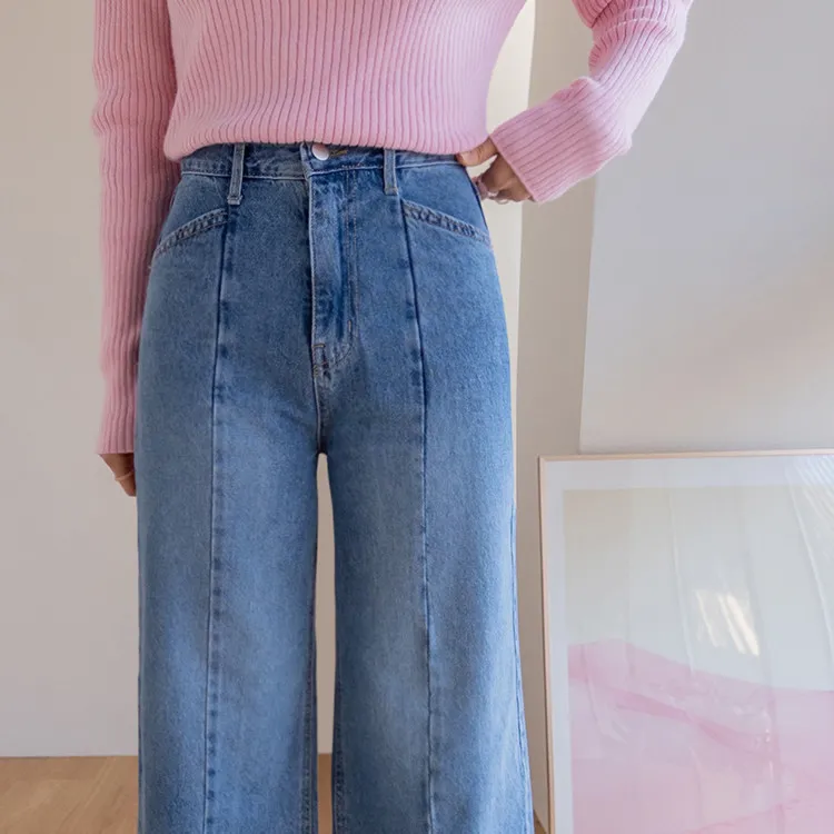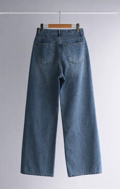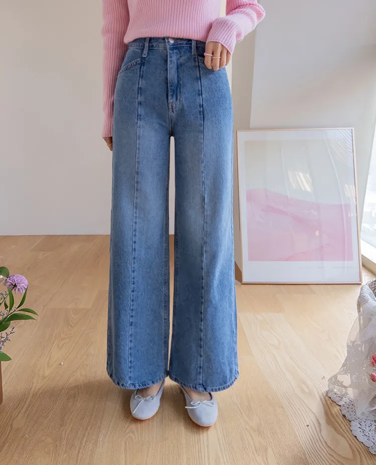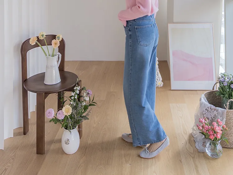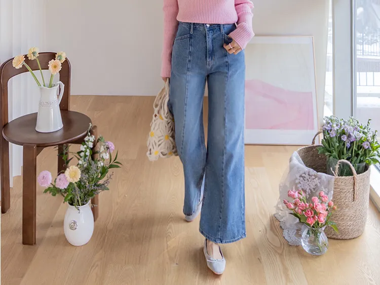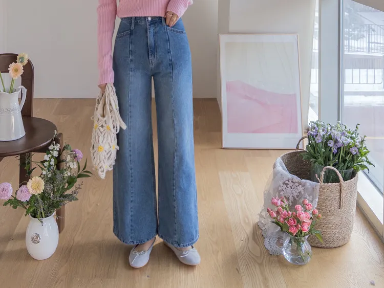 魅力精緻剪裁顯瘦直筒寬版牛仔褲