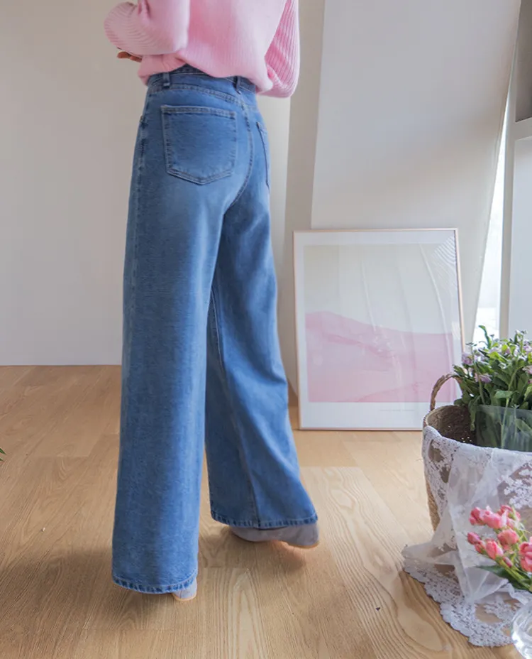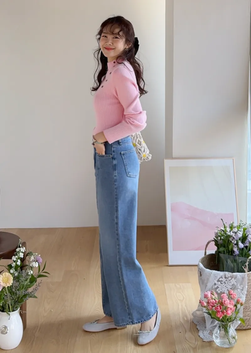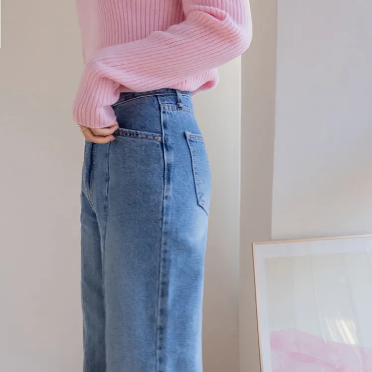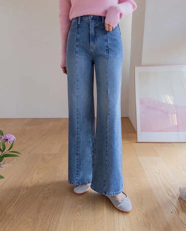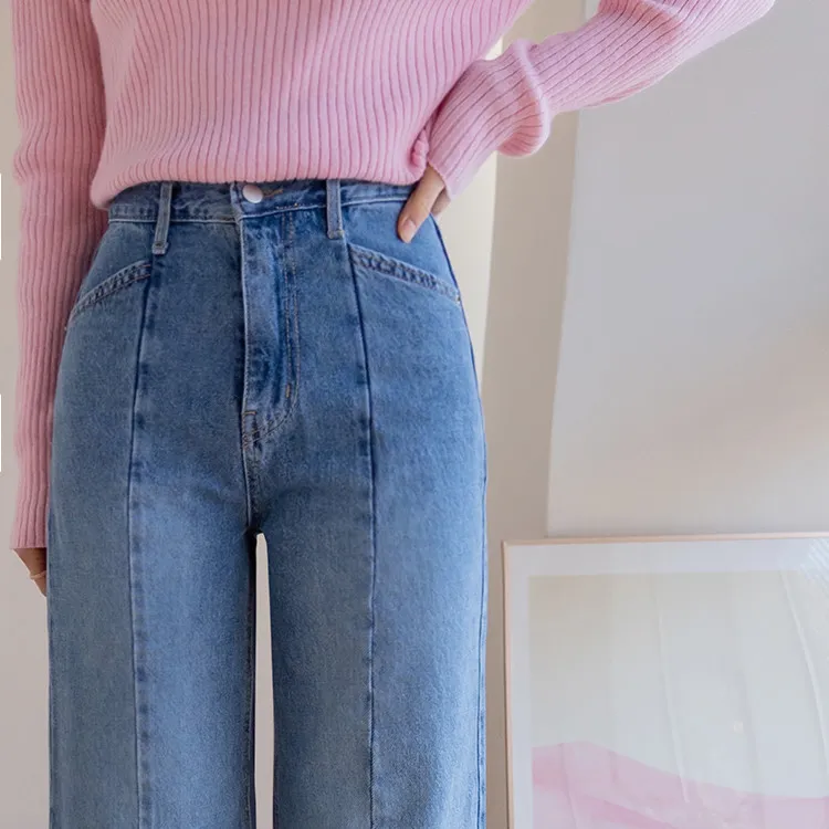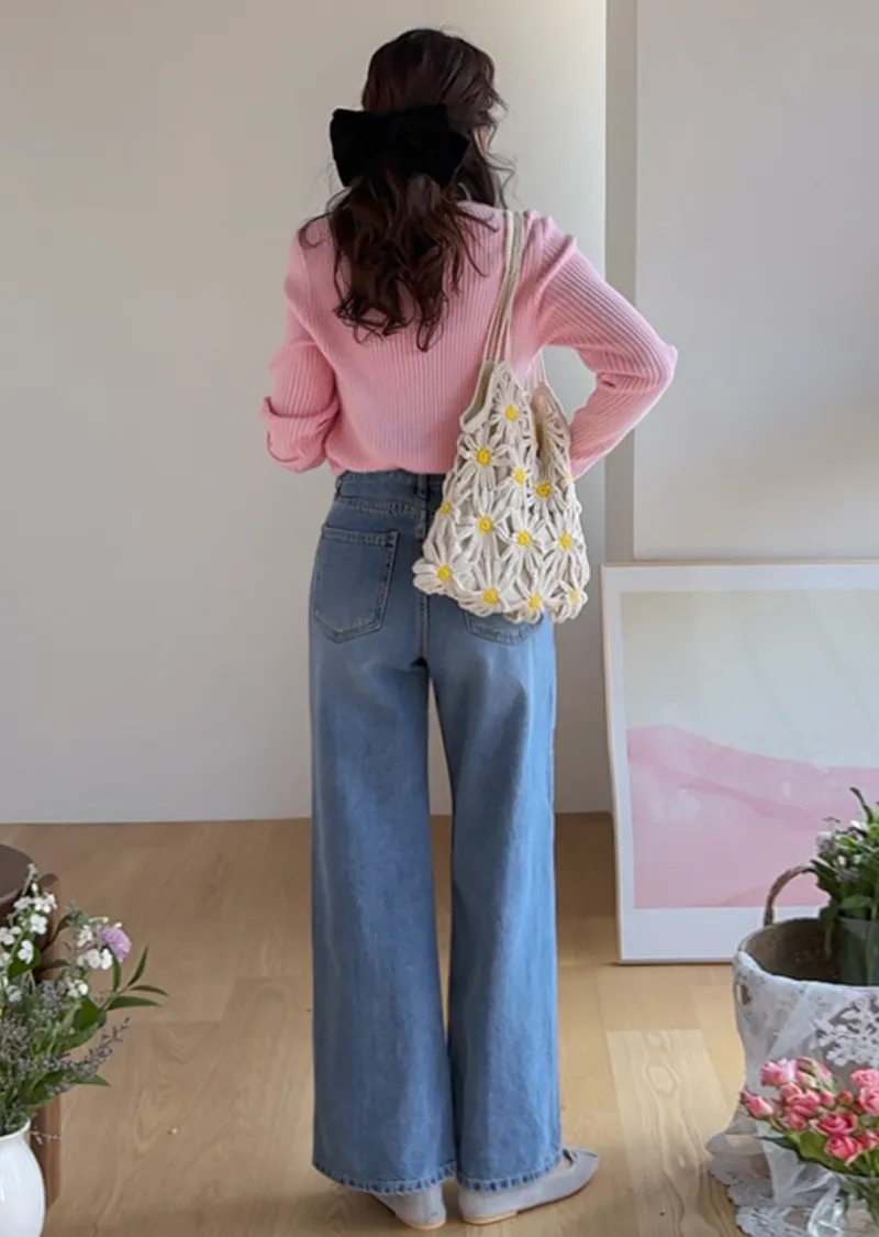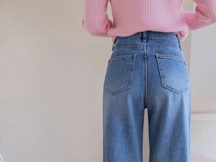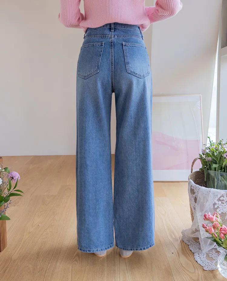 魅力精緻剪裁顯瘦直筒寬版牛仔褲