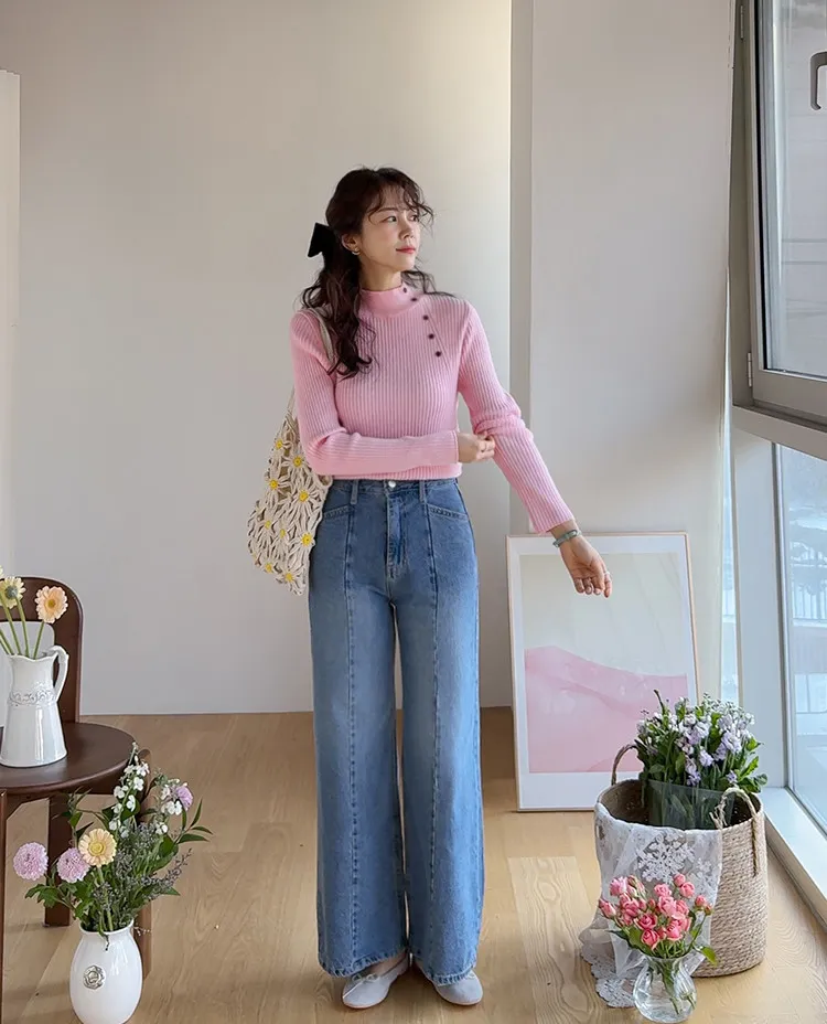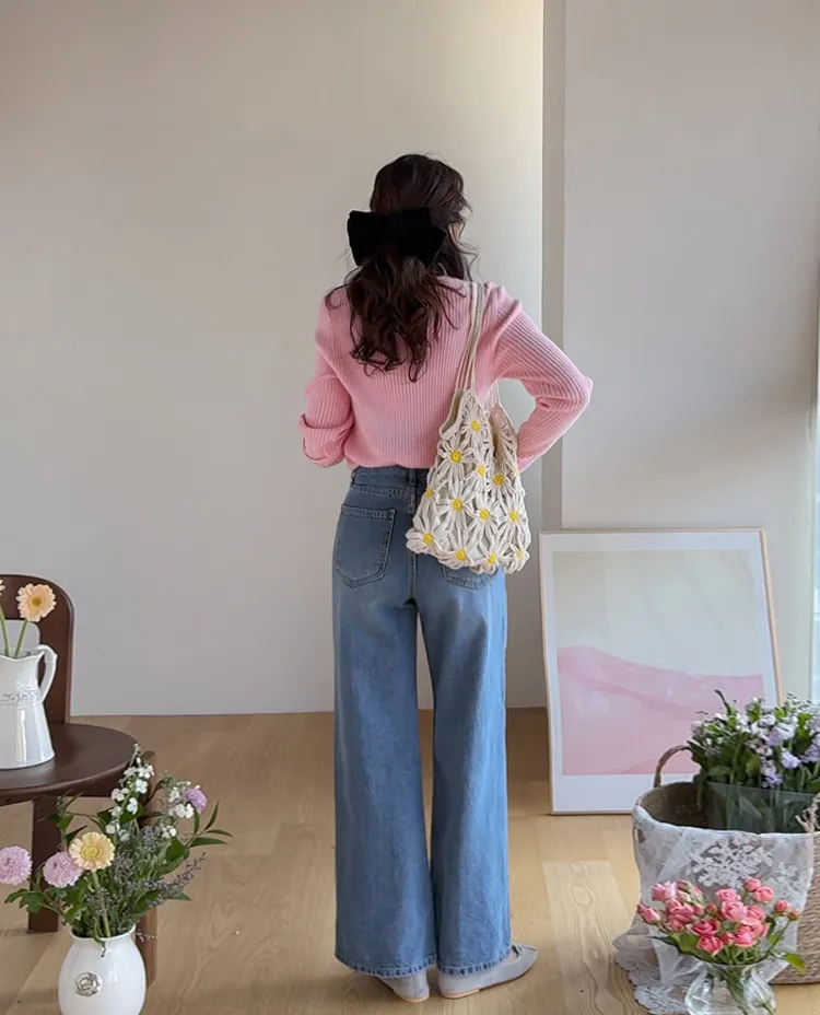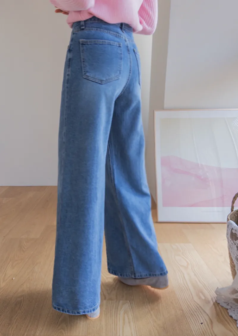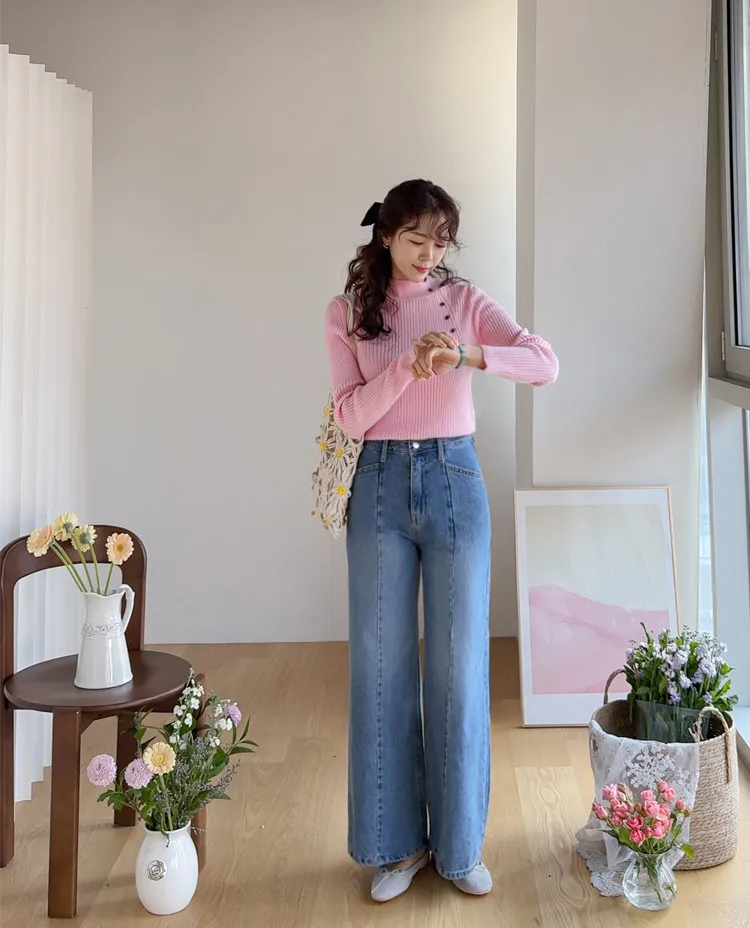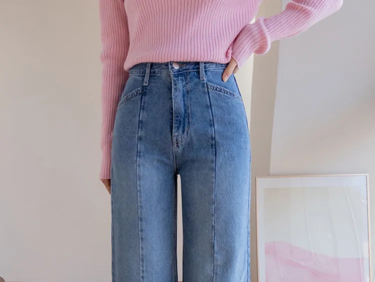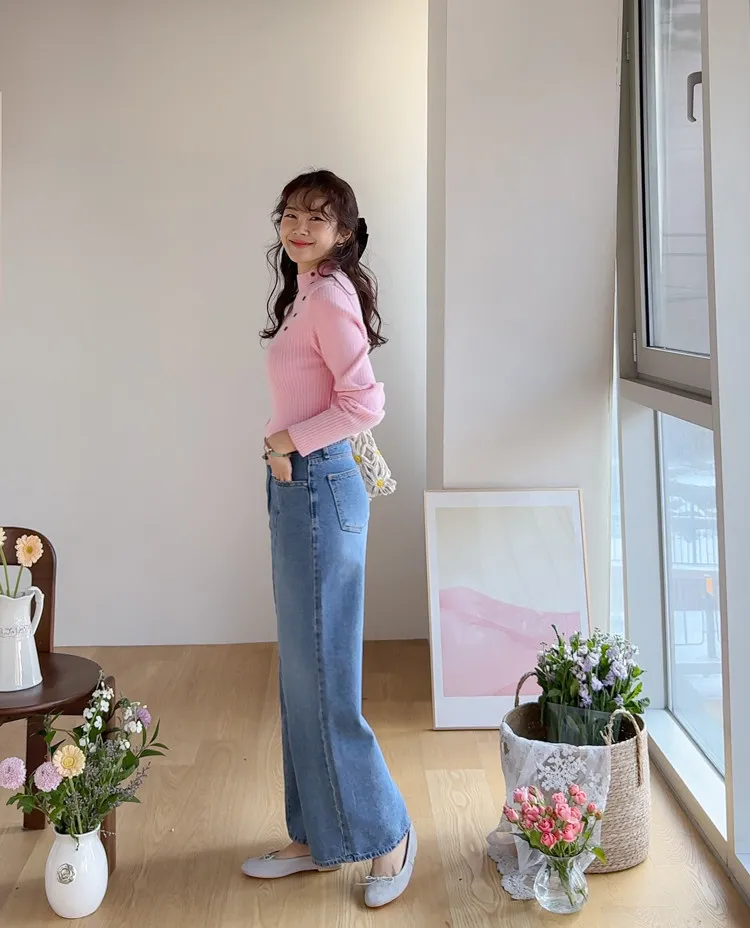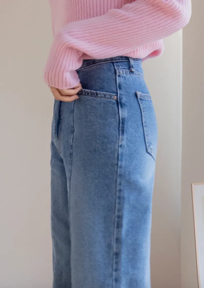魅力精緻剪裁顯瘦直筒寬版牛仔褲