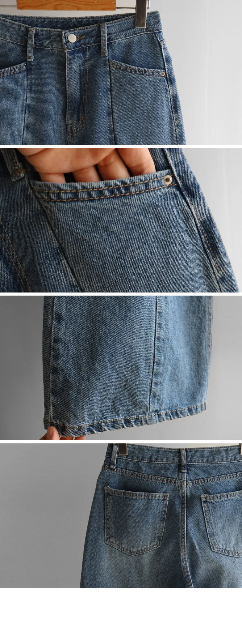 材質:100%棉【剪裁精緻的褲子讓人眼前一亮♥】【獨特的斜插口袋和前線剪裁設計】【寬鬆版型】【越穿越愛的魅力牛仔褲】