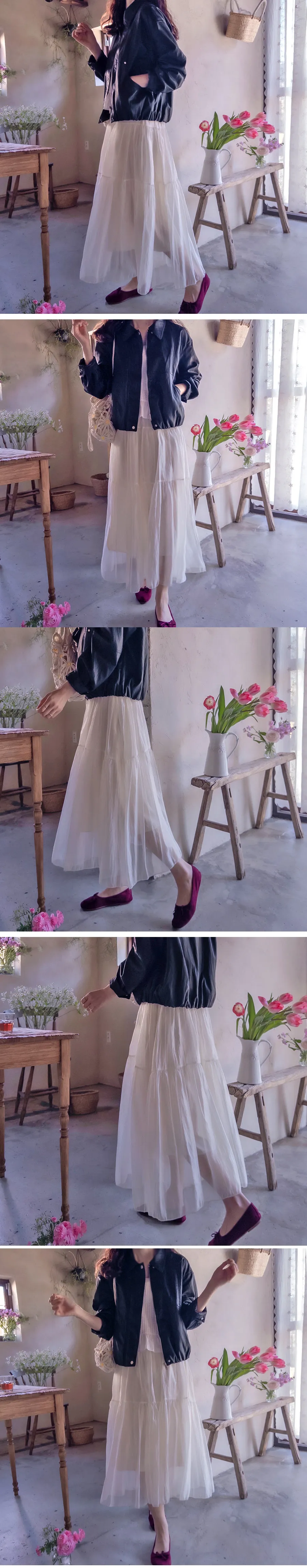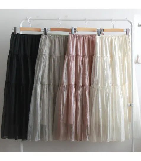 柔美舒適輕盈飄逸層次裙擺中長裙