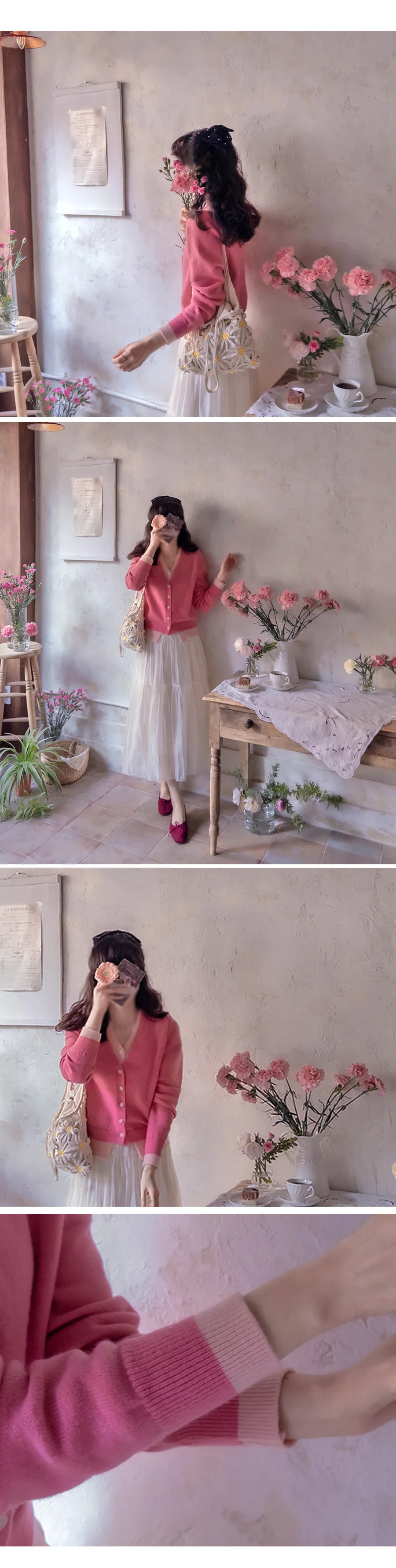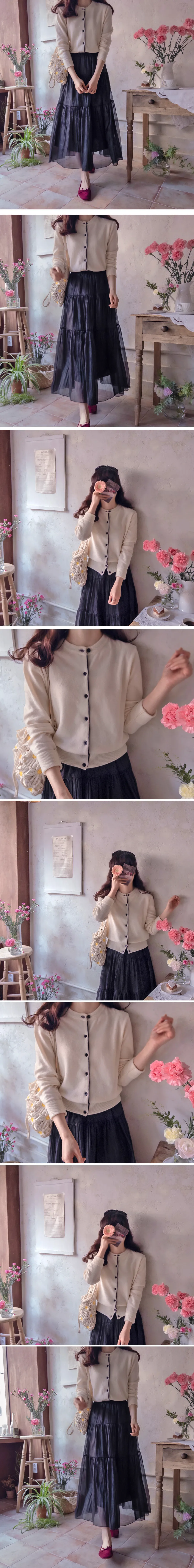 簡約漂亮鈕扣襯邊配色開衫