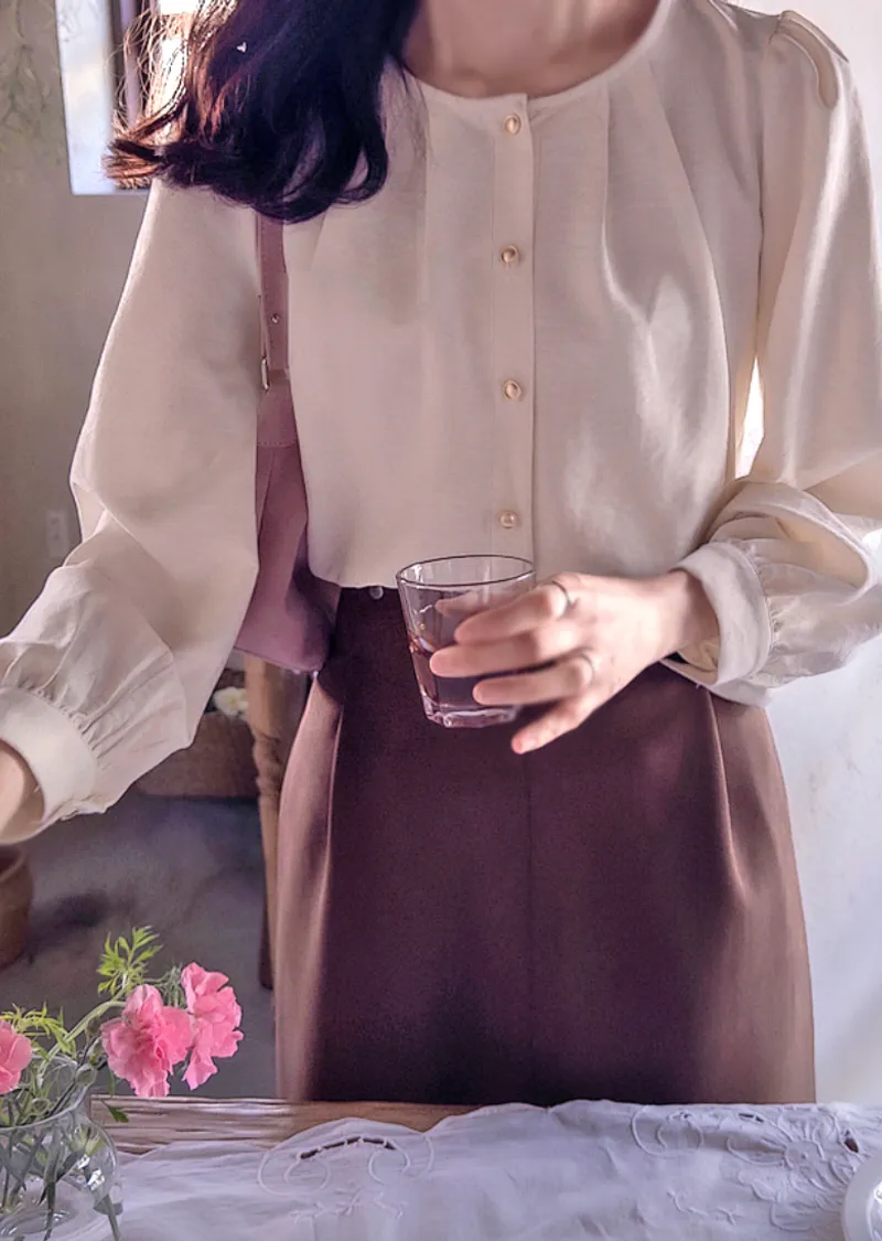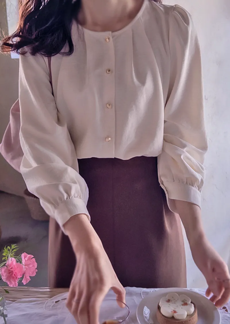 【春季新品】【一款領口精緻、飾有褶襉的漂亮上衣】【一款柔軟線條柔和圓潤的優雅