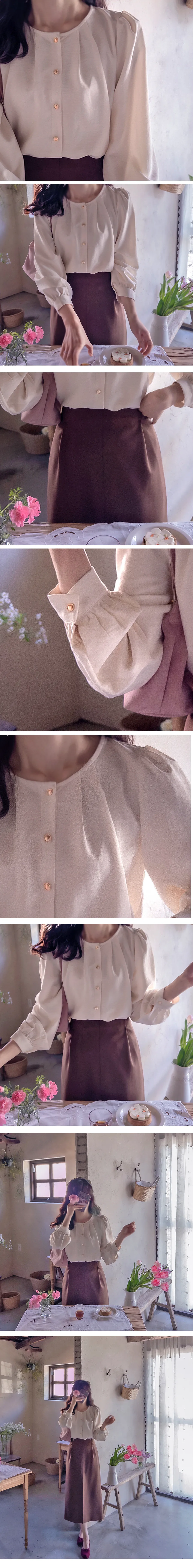 優雅領口褶襉線條奢華金扣排扣上衣