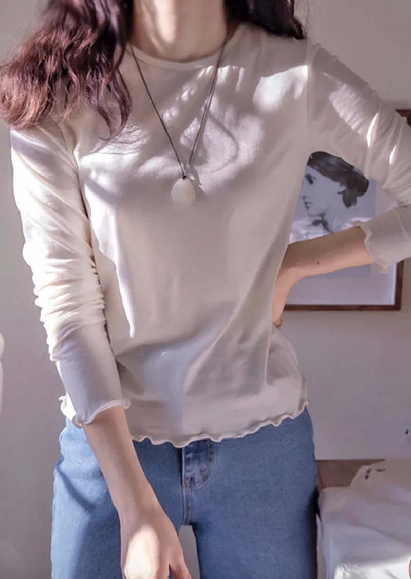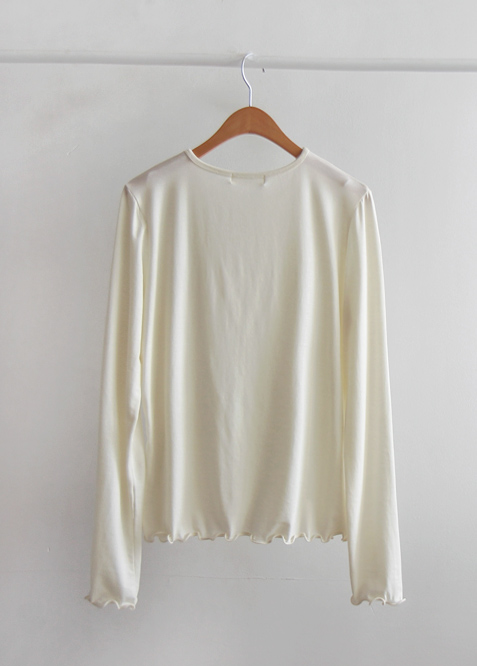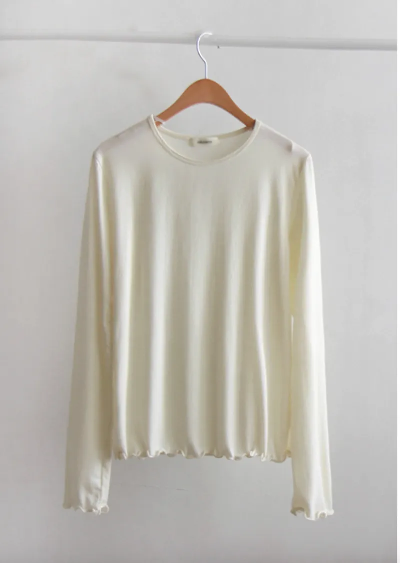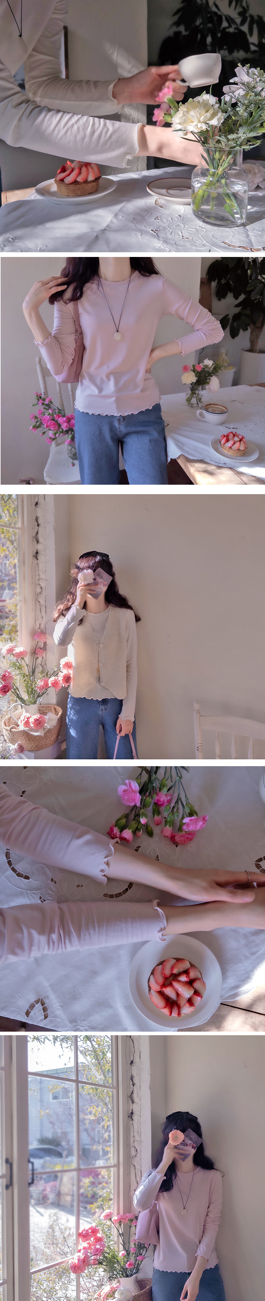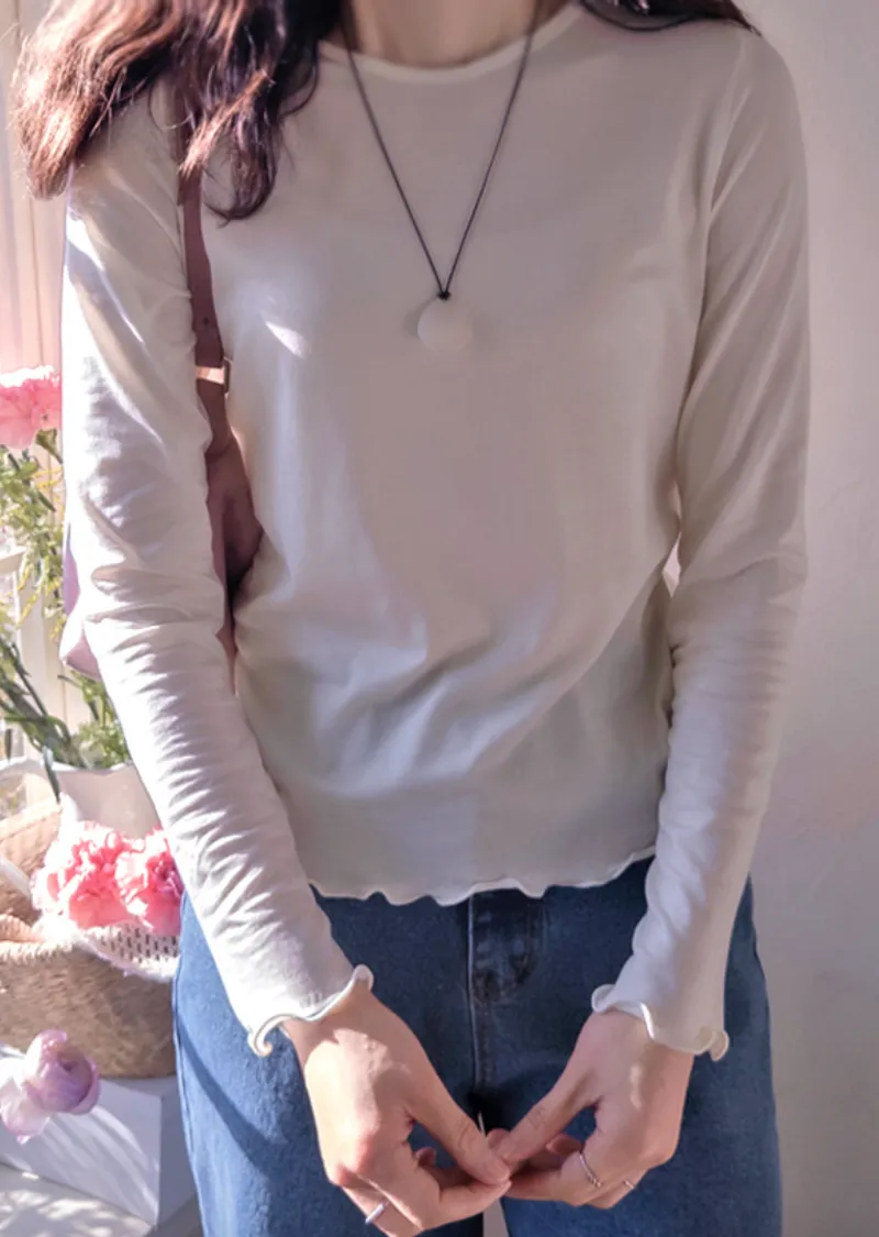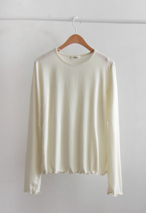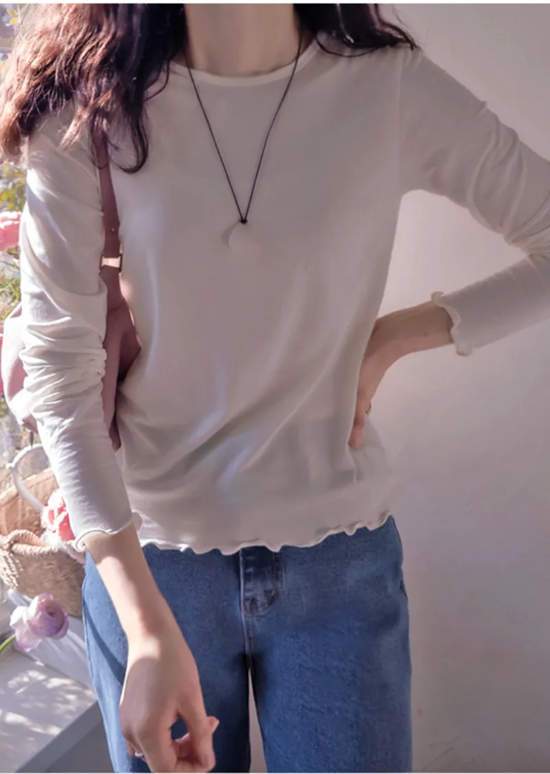 浪漫袖末及下擺波浪邊柔軟彈性穿搭上衣
