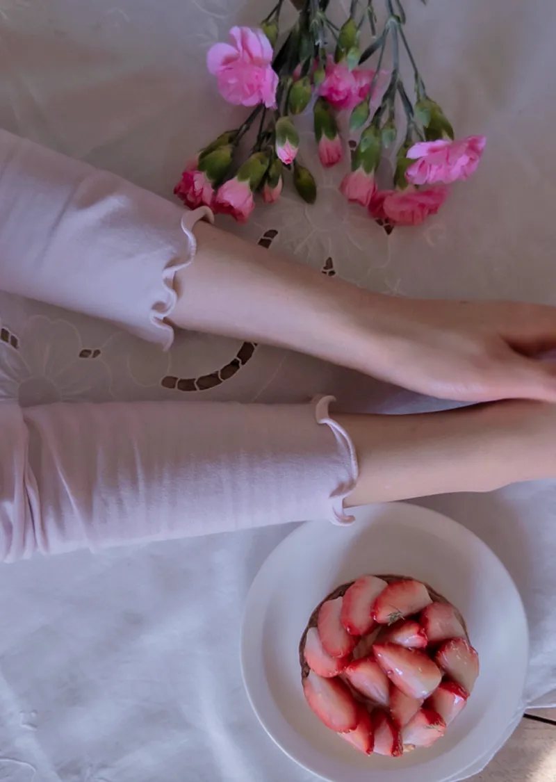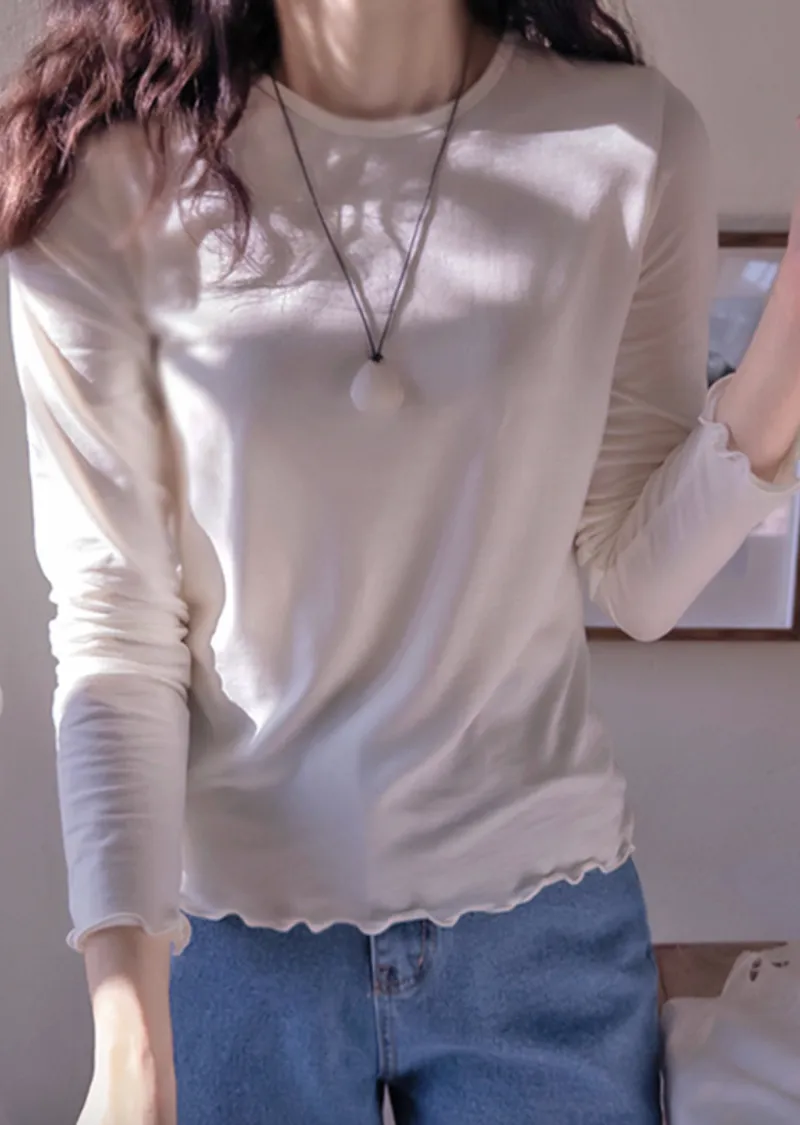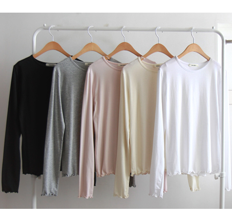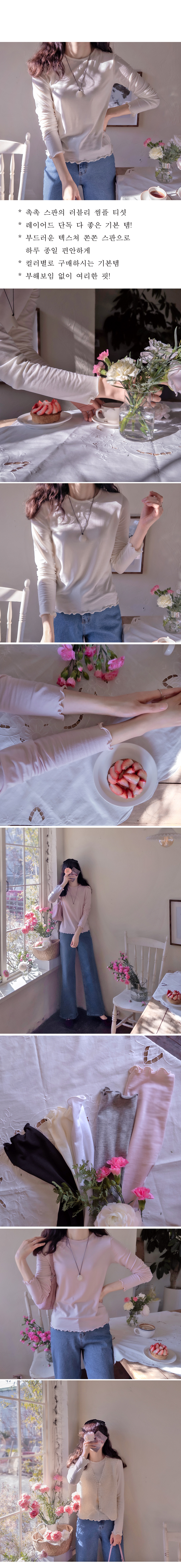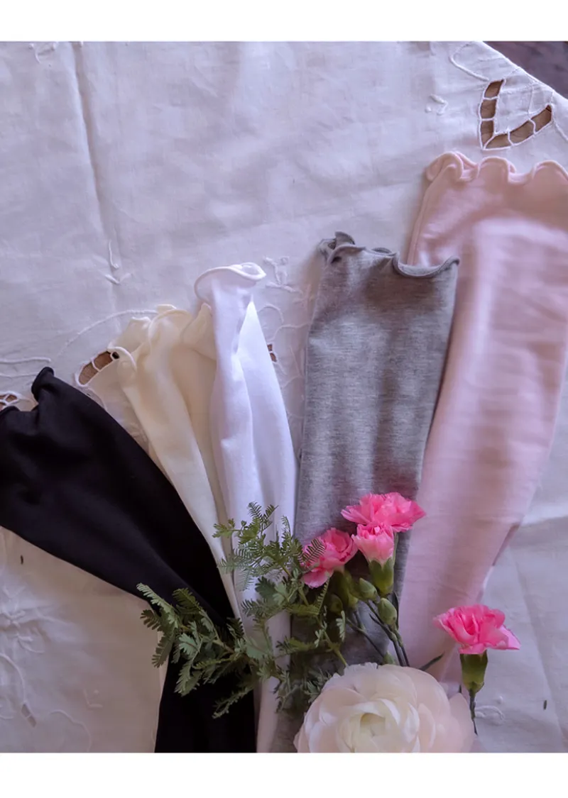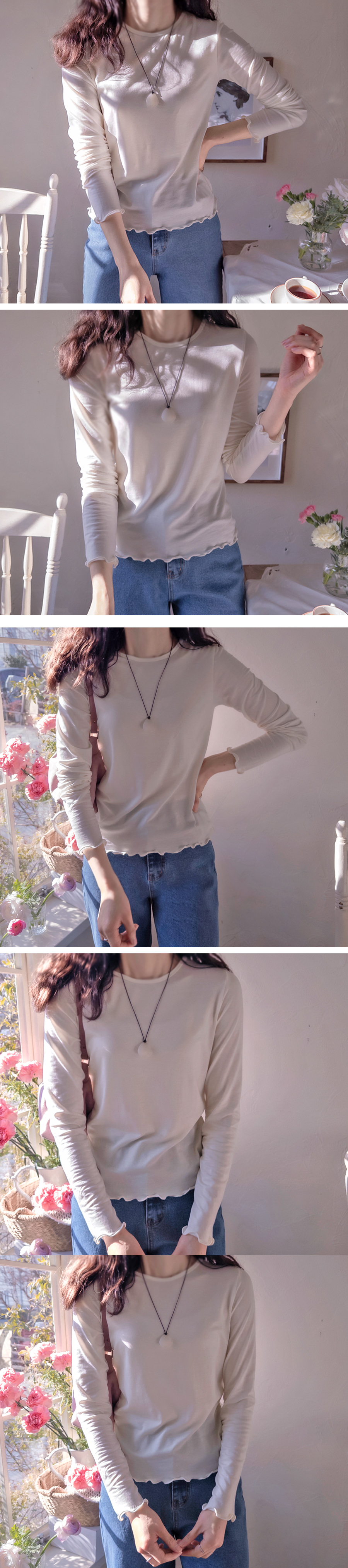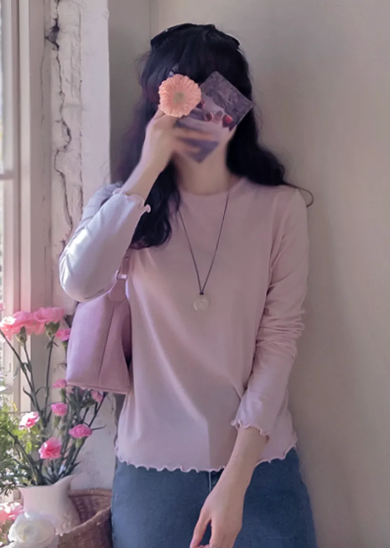 浪漫袖末及下擺波浪邊柔軟彈性穿搭上衣