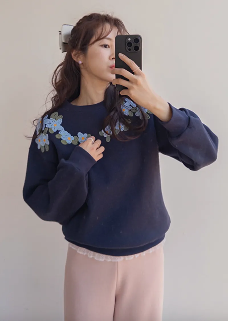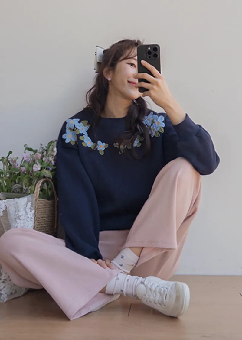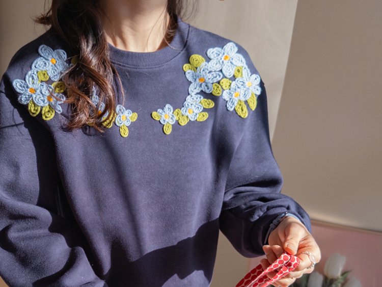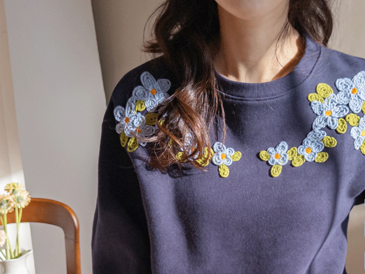 【鮮豔立體花朵的上衣🌺🌼】【溫暖絨毛內襯,穿著舒適】【推薦作為日常單品,增添一絲新意!】【從冬季到換季時節都非常適合穿著~】