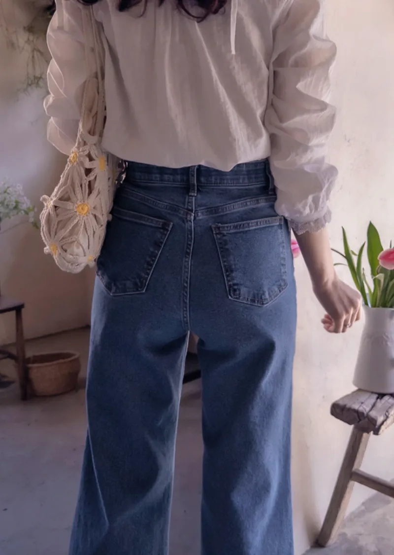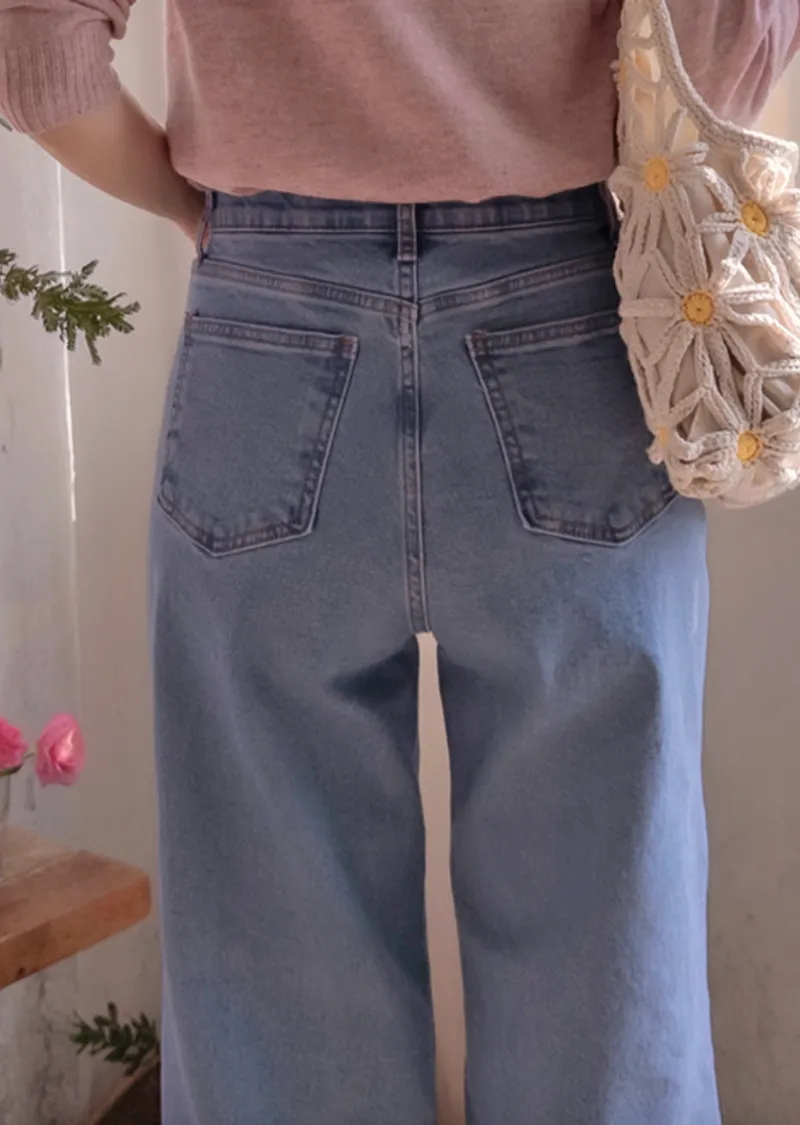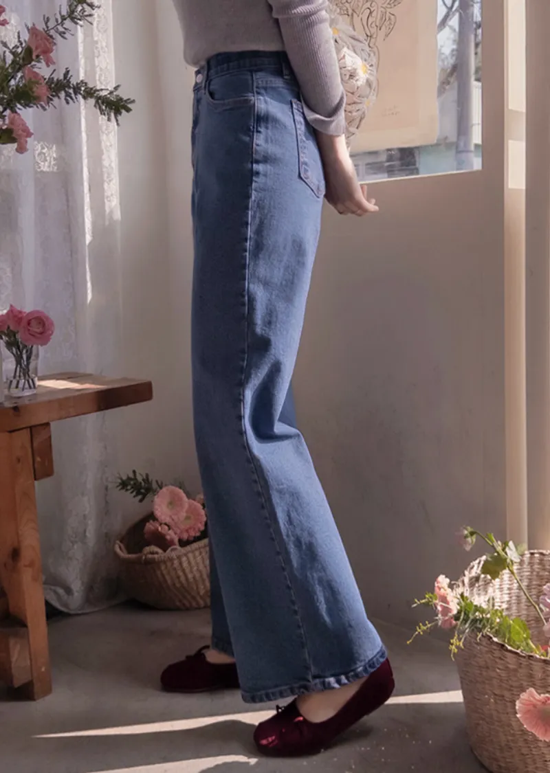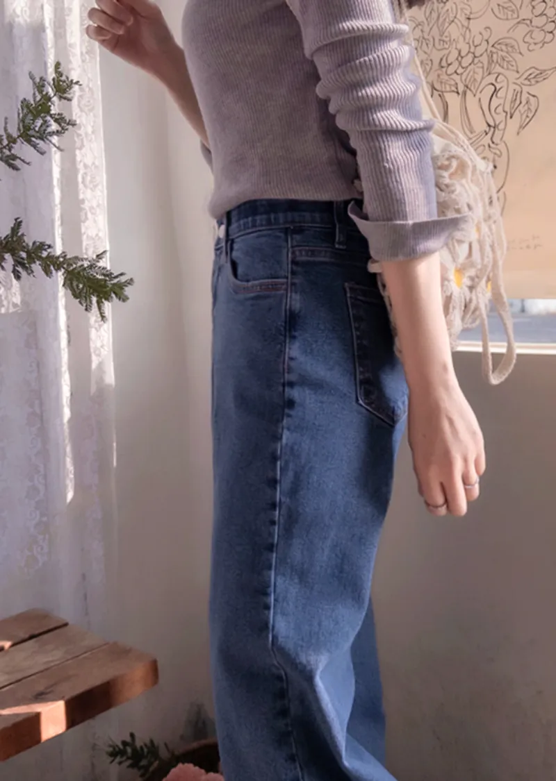 漂亮線條百搭修身腰部隱藏鬆緊舒適牛仔褲