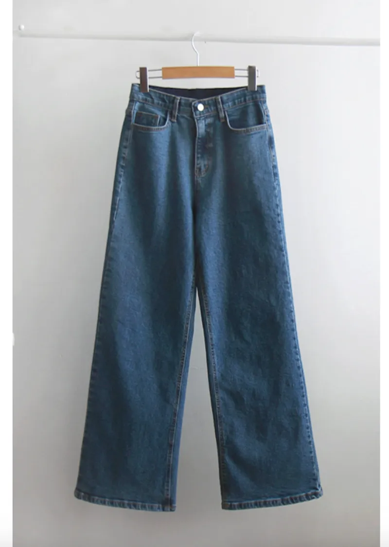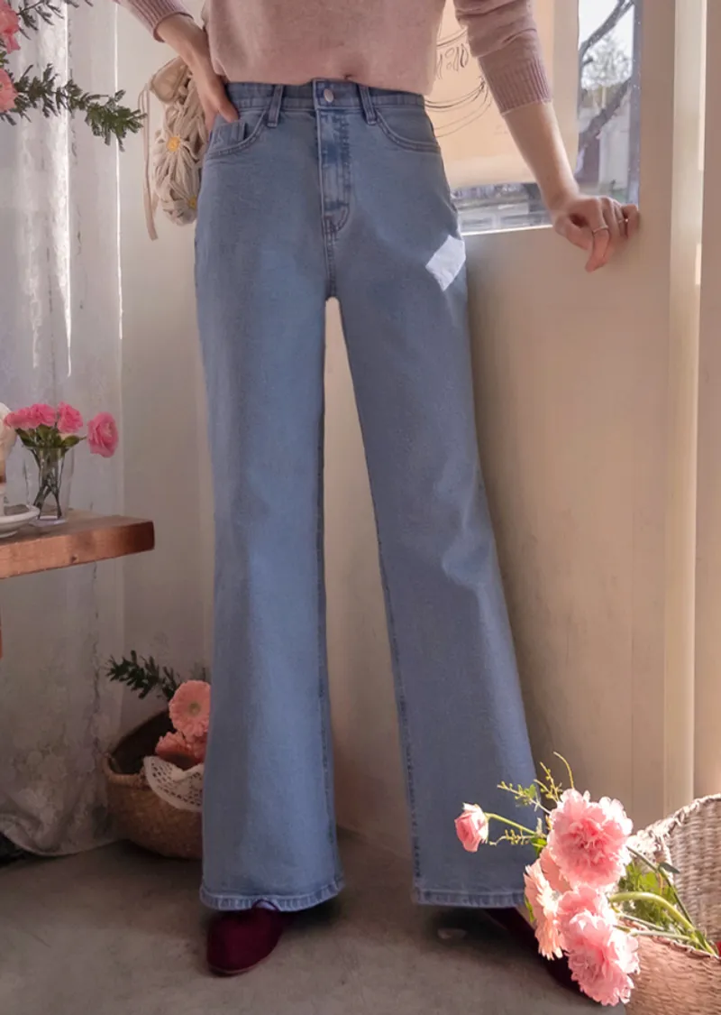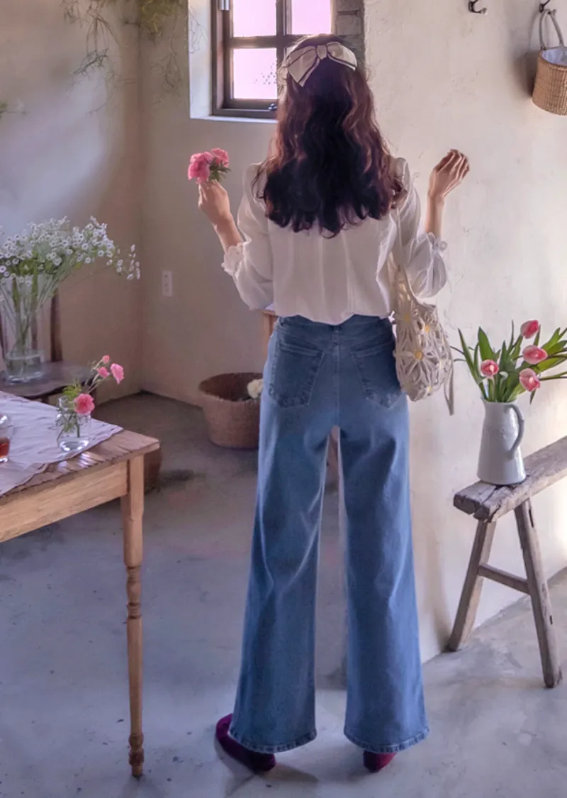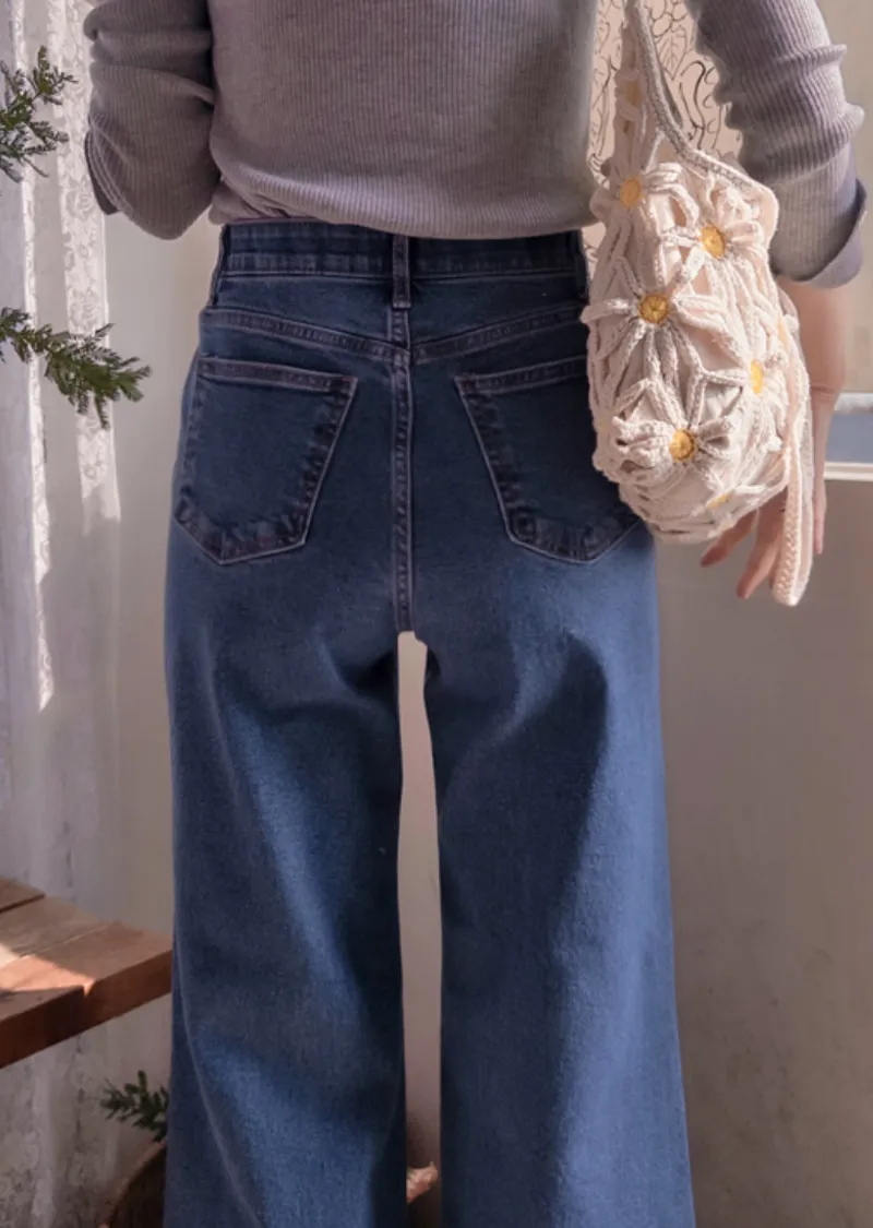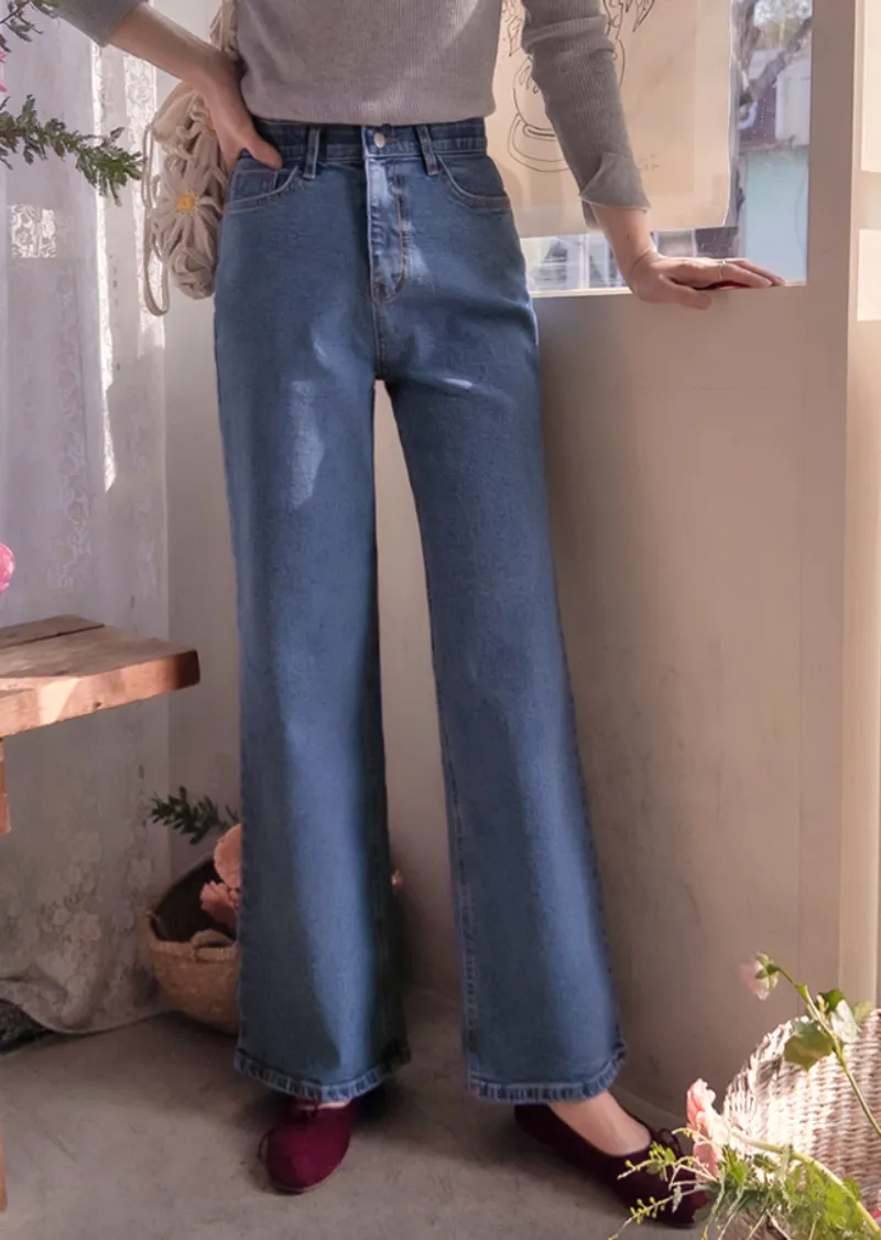 漂亮線條百搭修身腰部隱藏鬆緊舒適牛仔褲