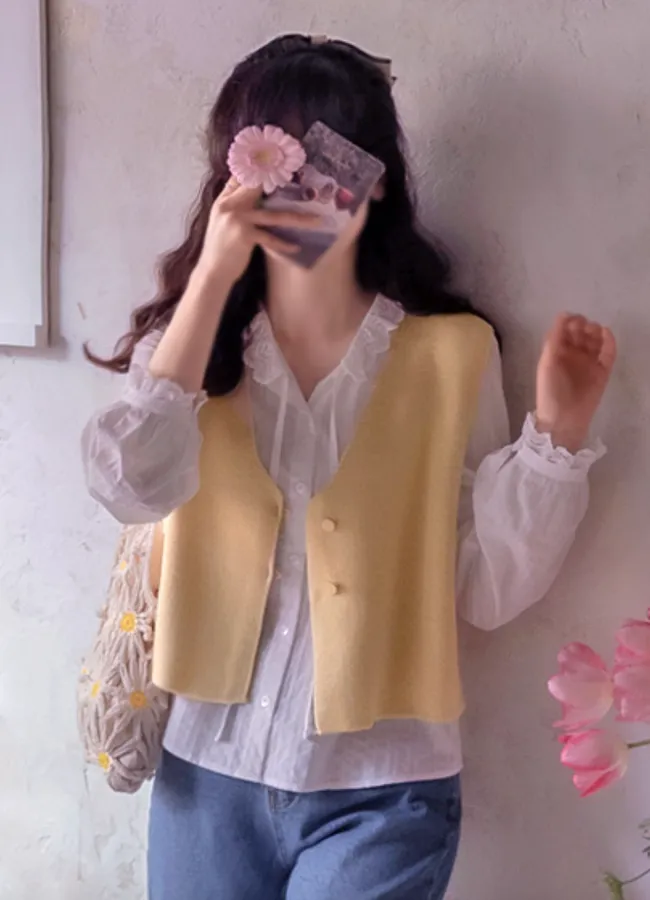 春日氣息柔和色感鈕扣針織穿搭背心