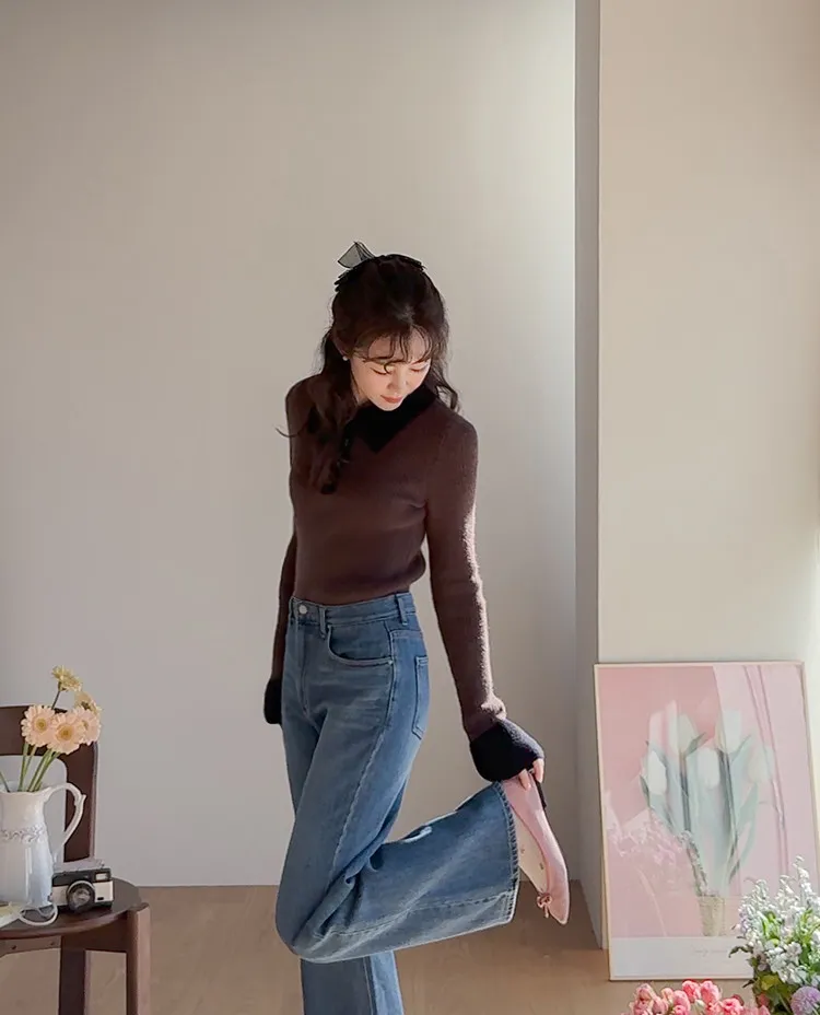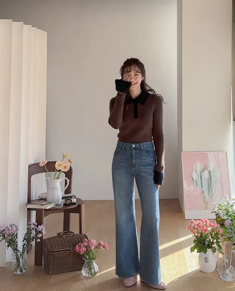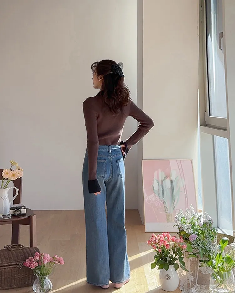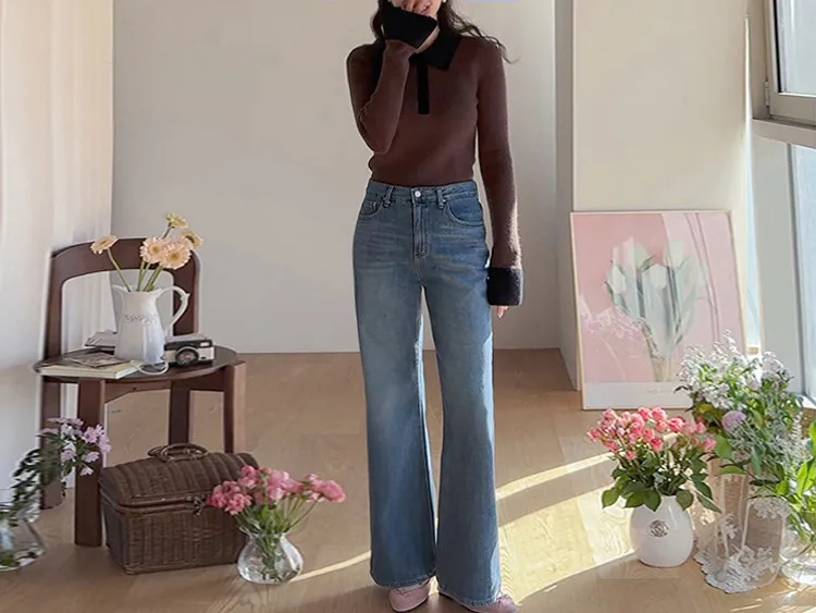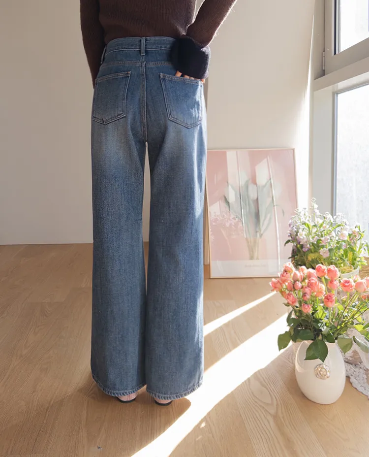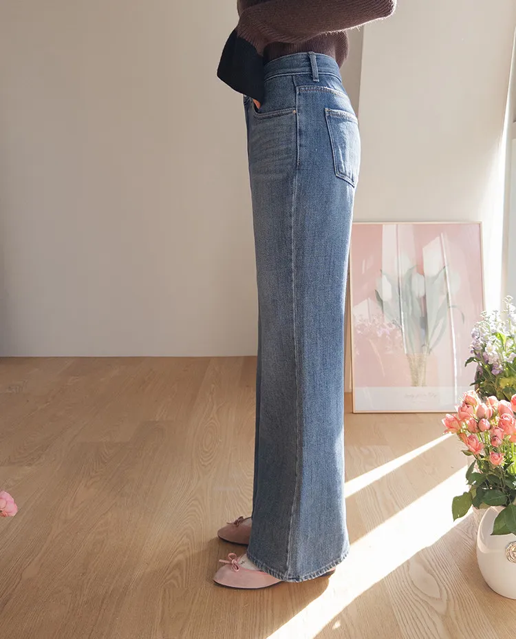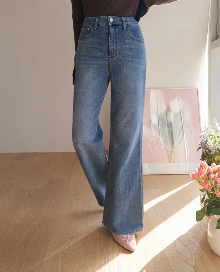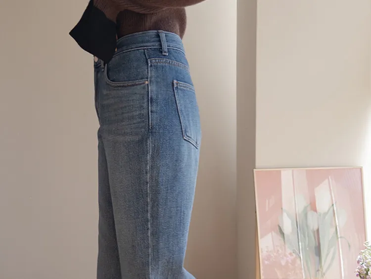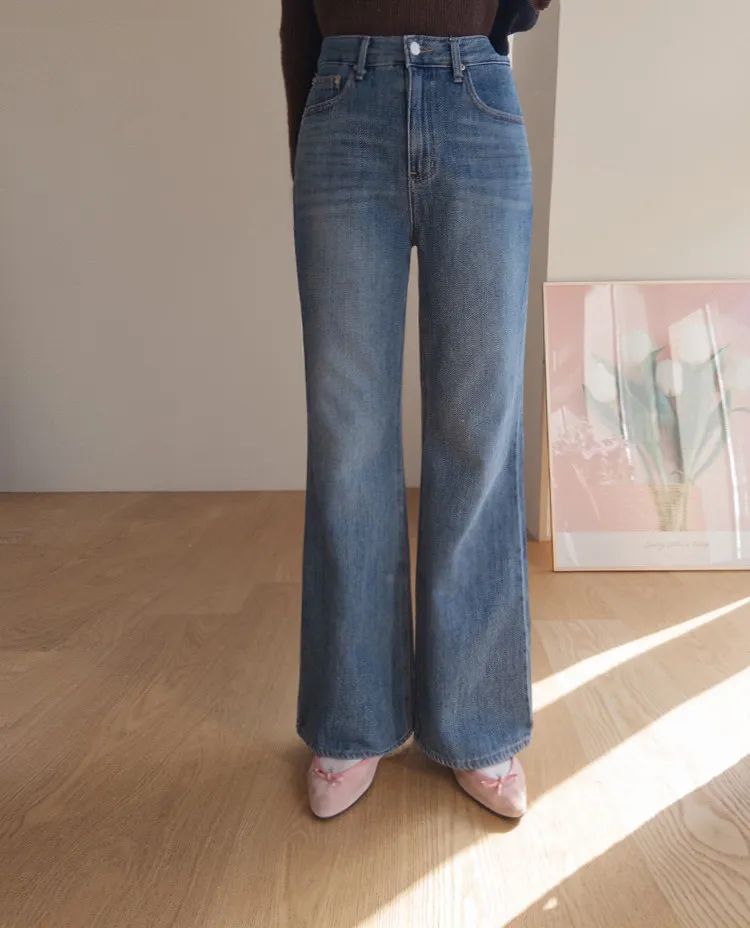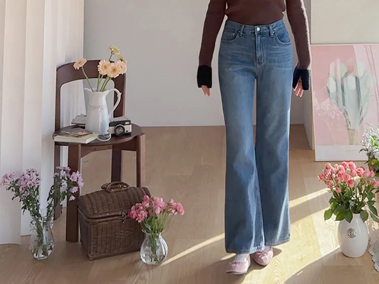 漂亮流暢線條舒適半寬靴型剪裁牛仔褲