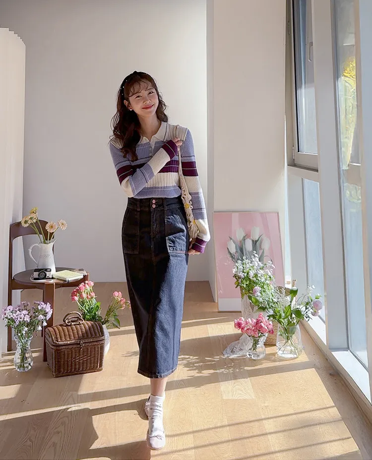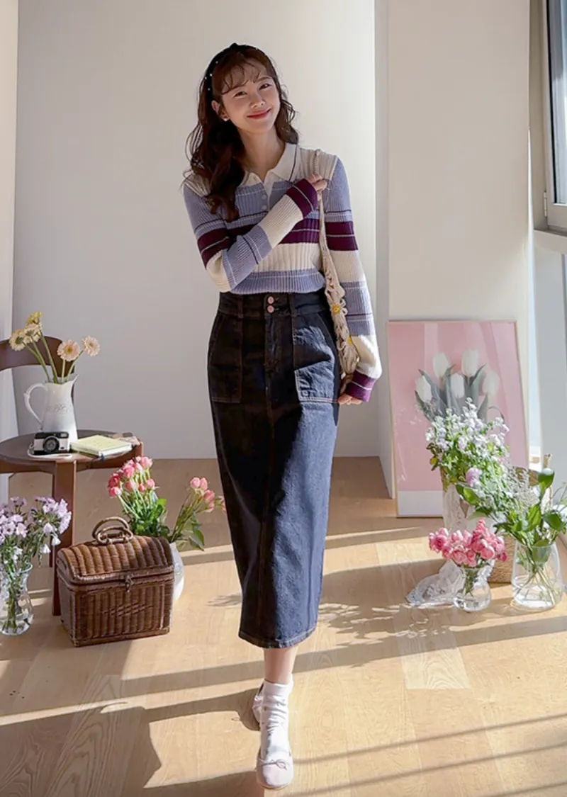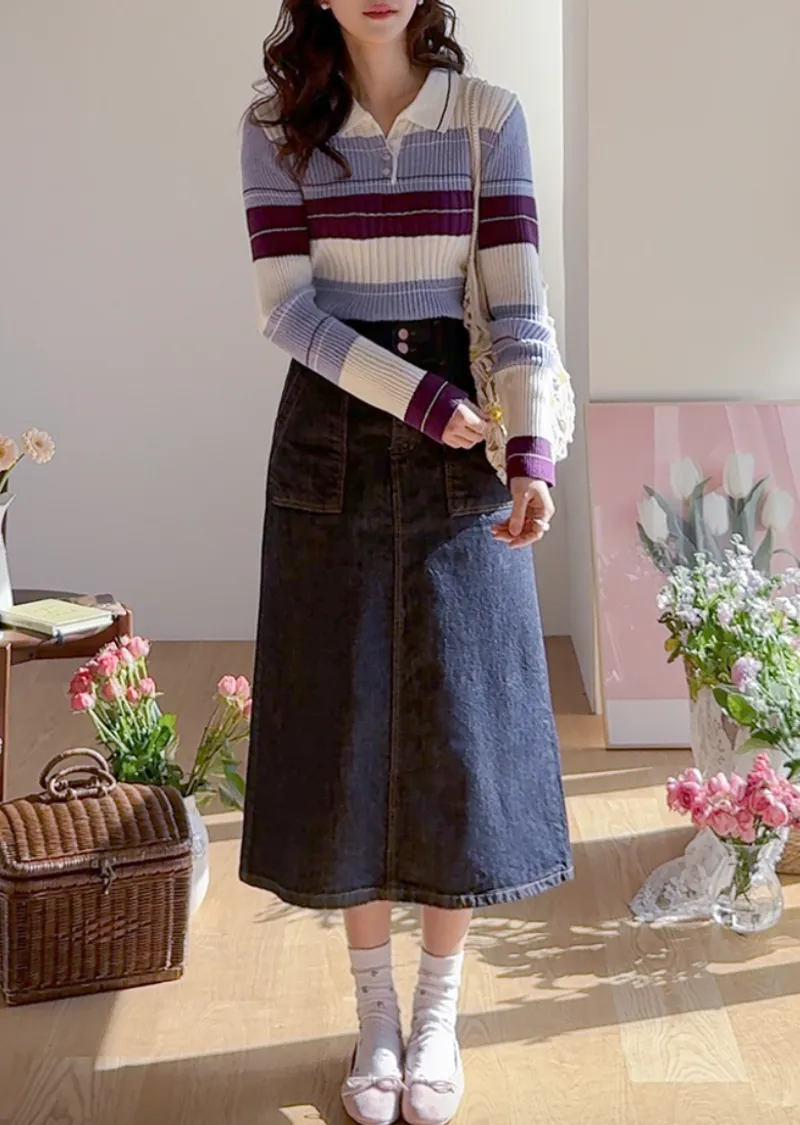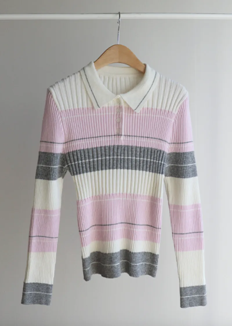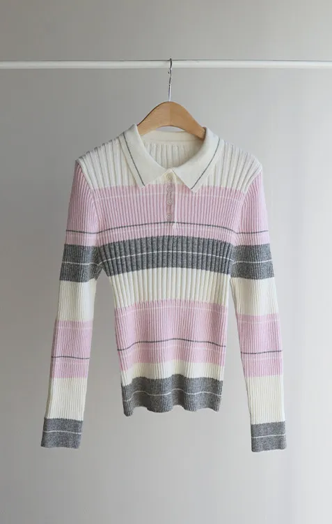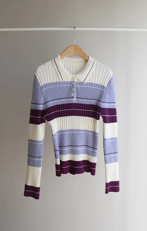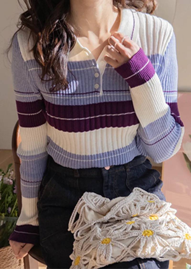 【配色針織衫,增添獨特韻味♥】【豎條紋羅紋勾勒纖細上身線條】【別緻的配色設計,打造獨特造型】【採用彈性氨綸面料,穿著舒適】