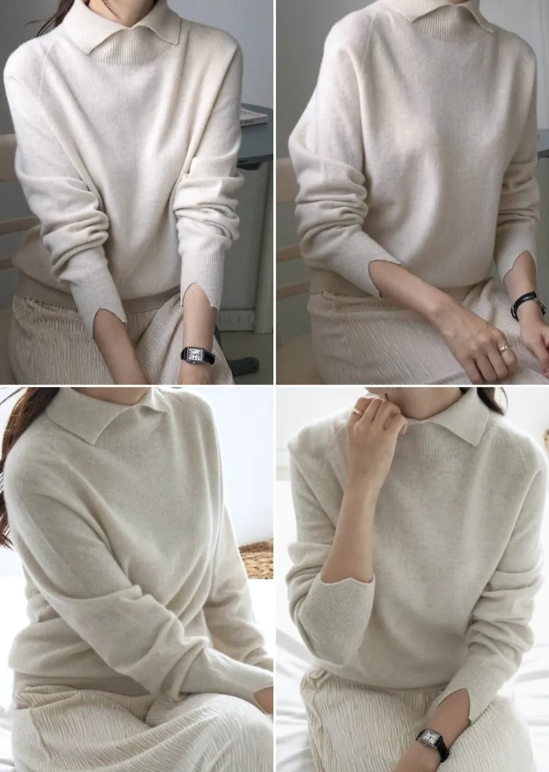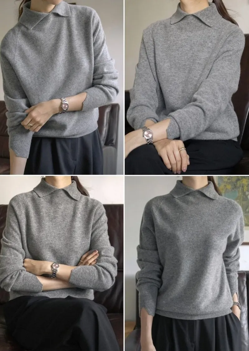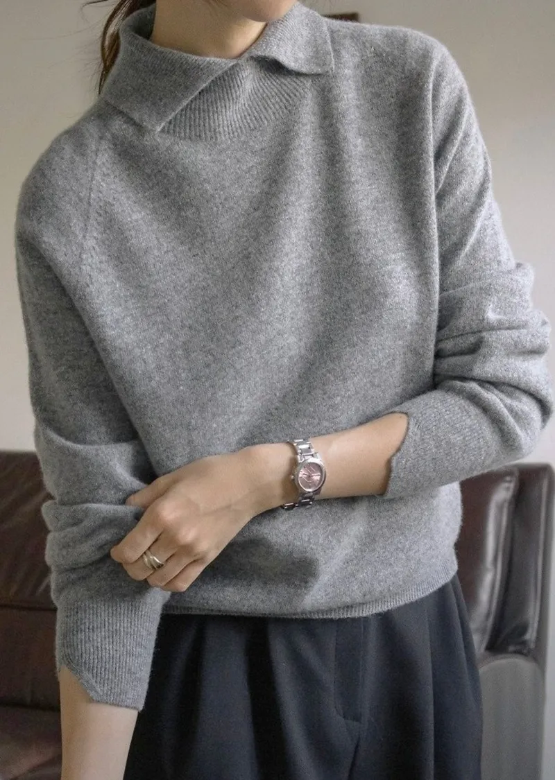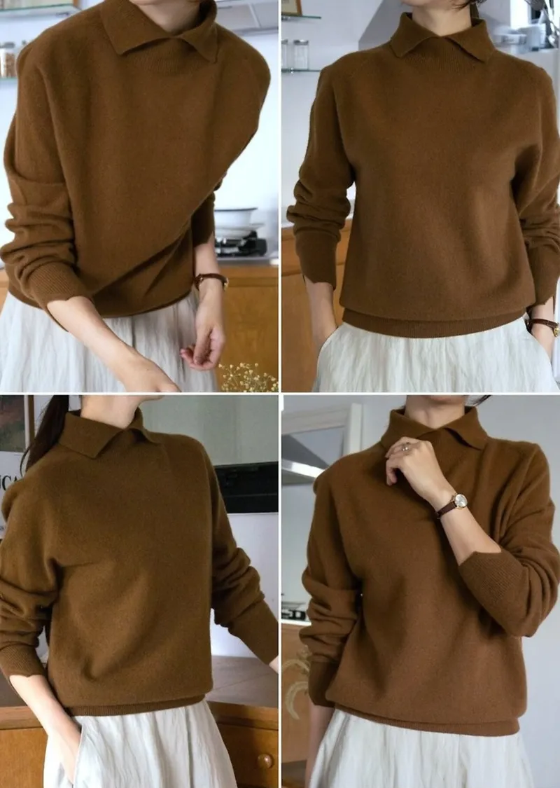翻領長袖設計羊毛長衫