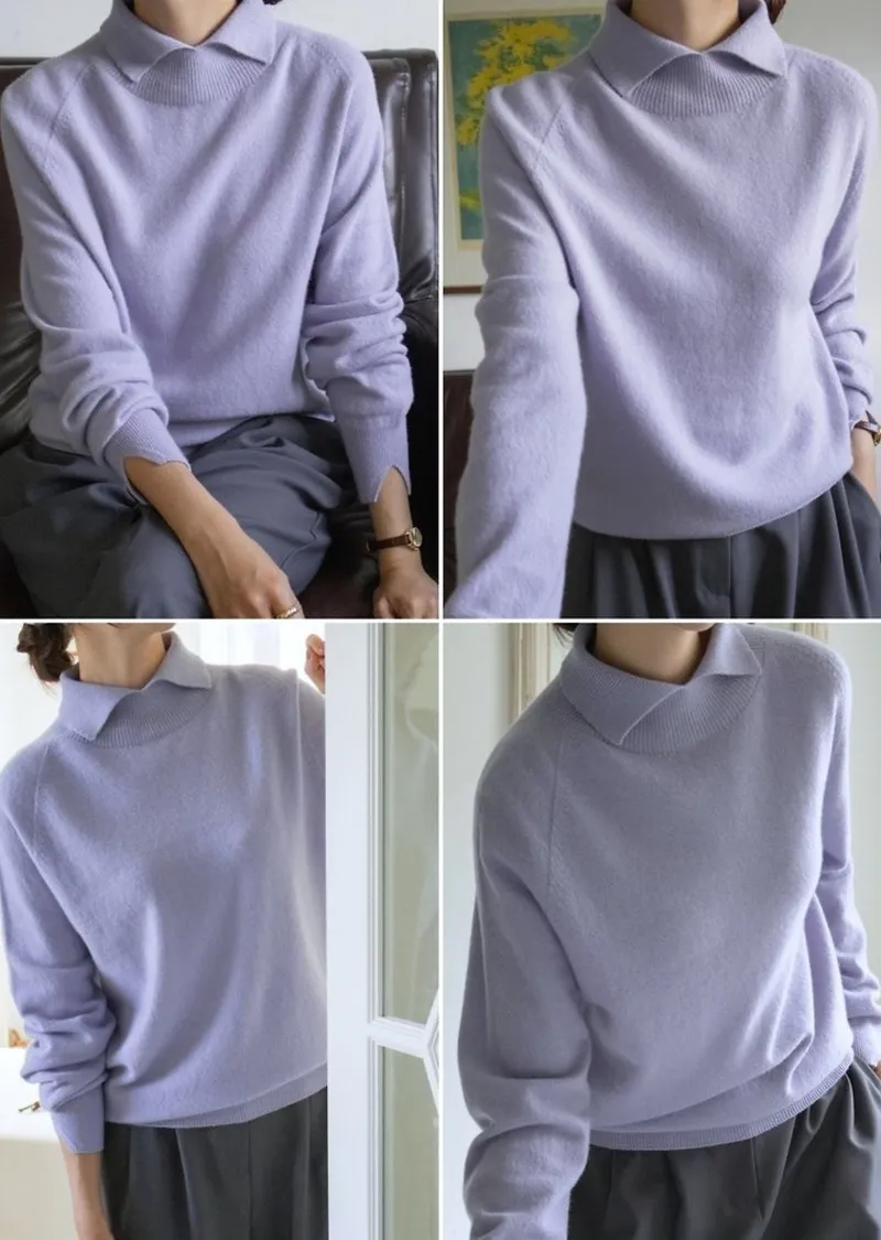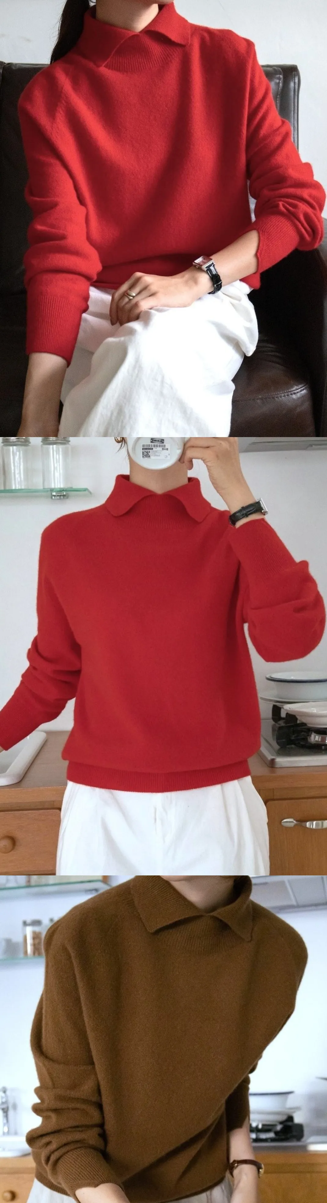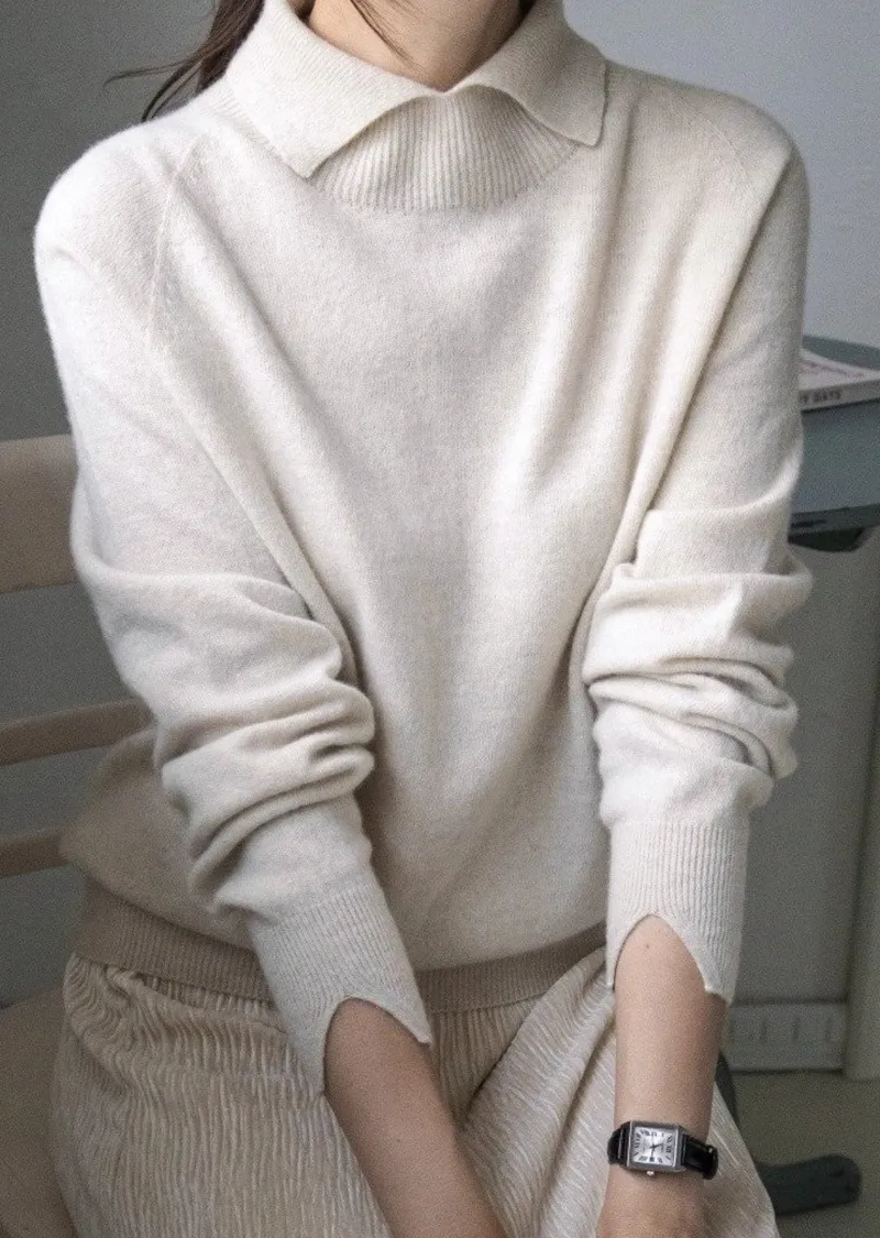 翻領長袖設計羊毛長衫