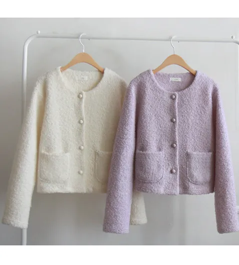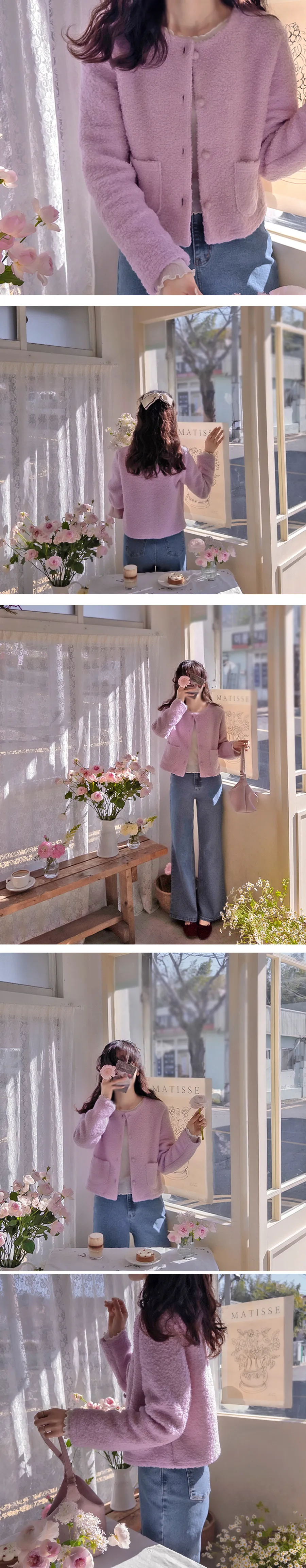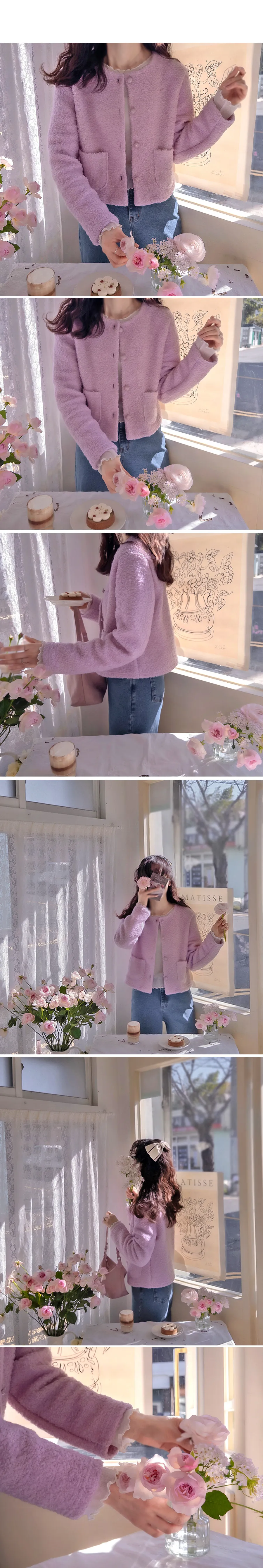 春季粉彩可愛圓扣立體感圈紗外套