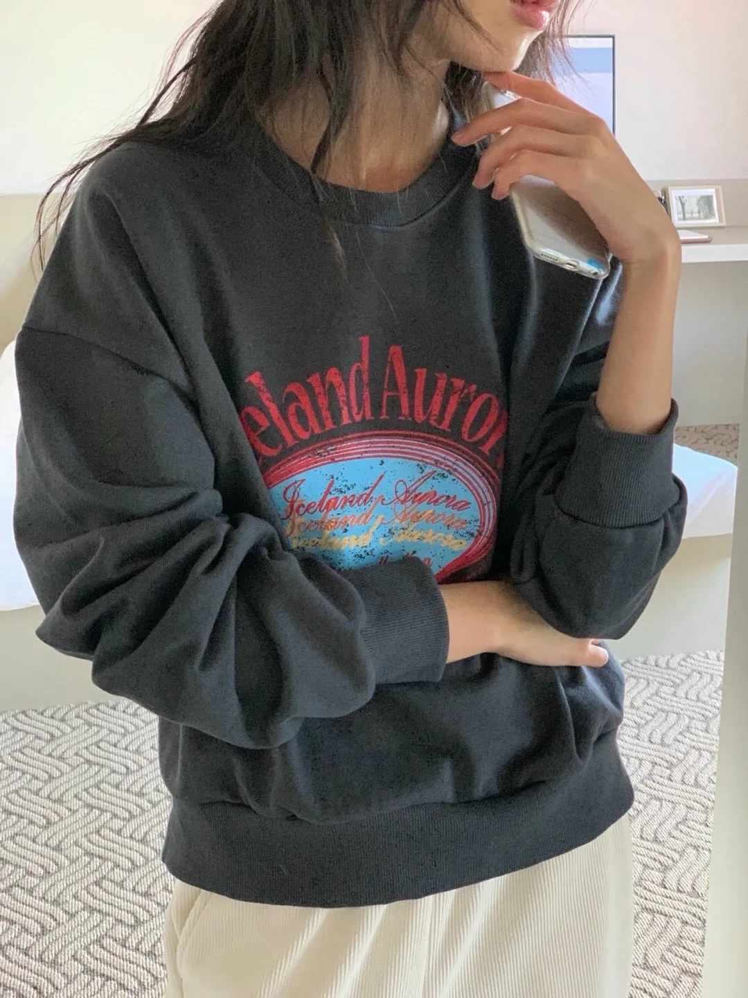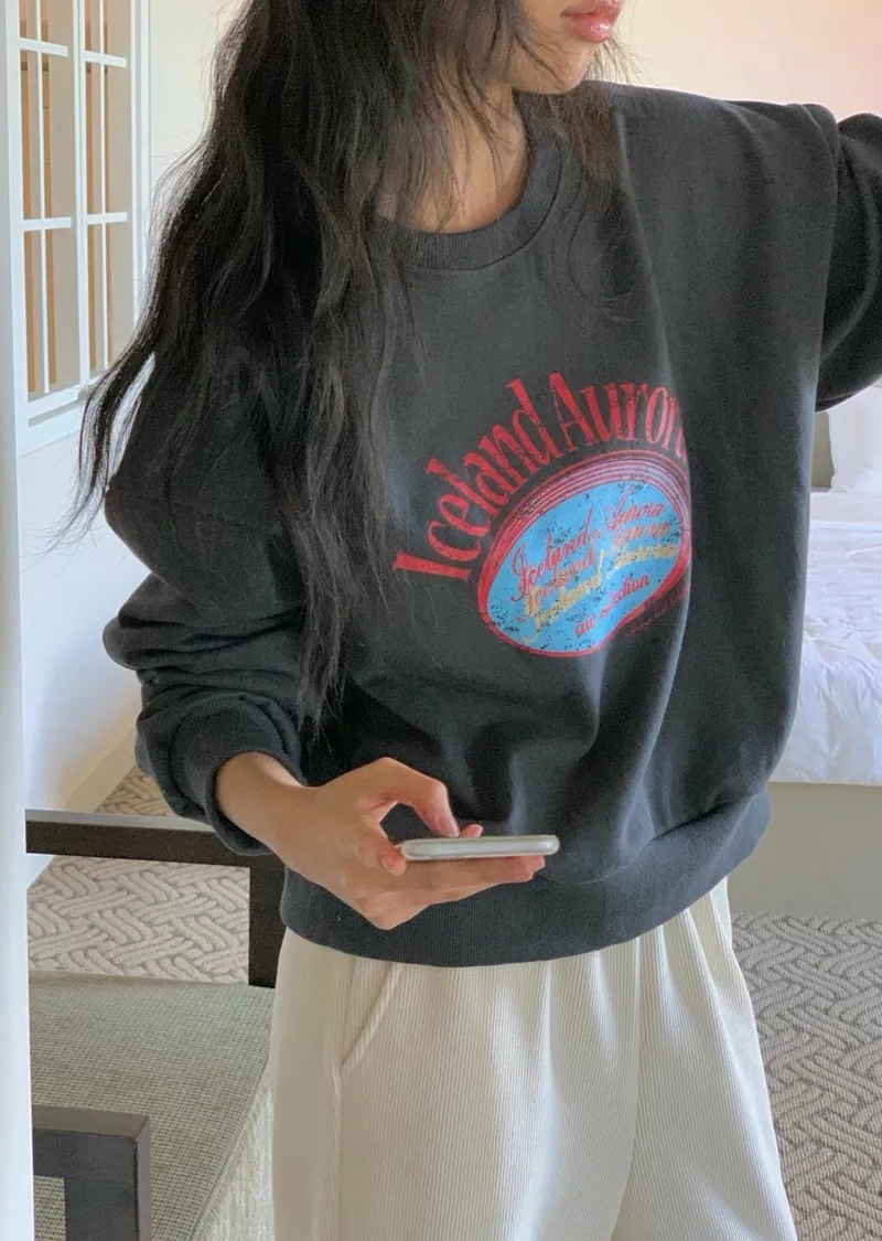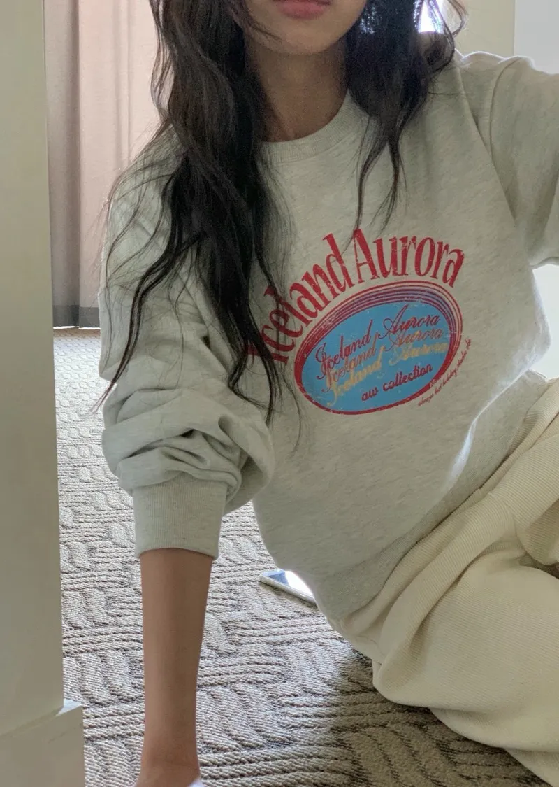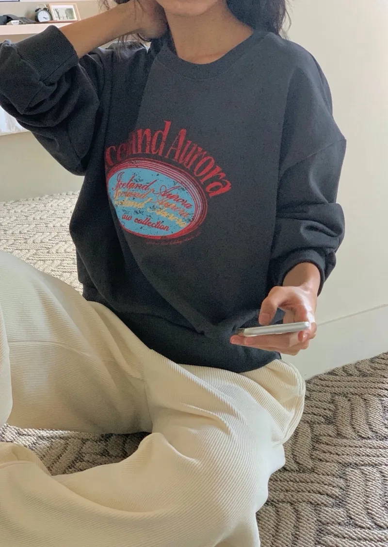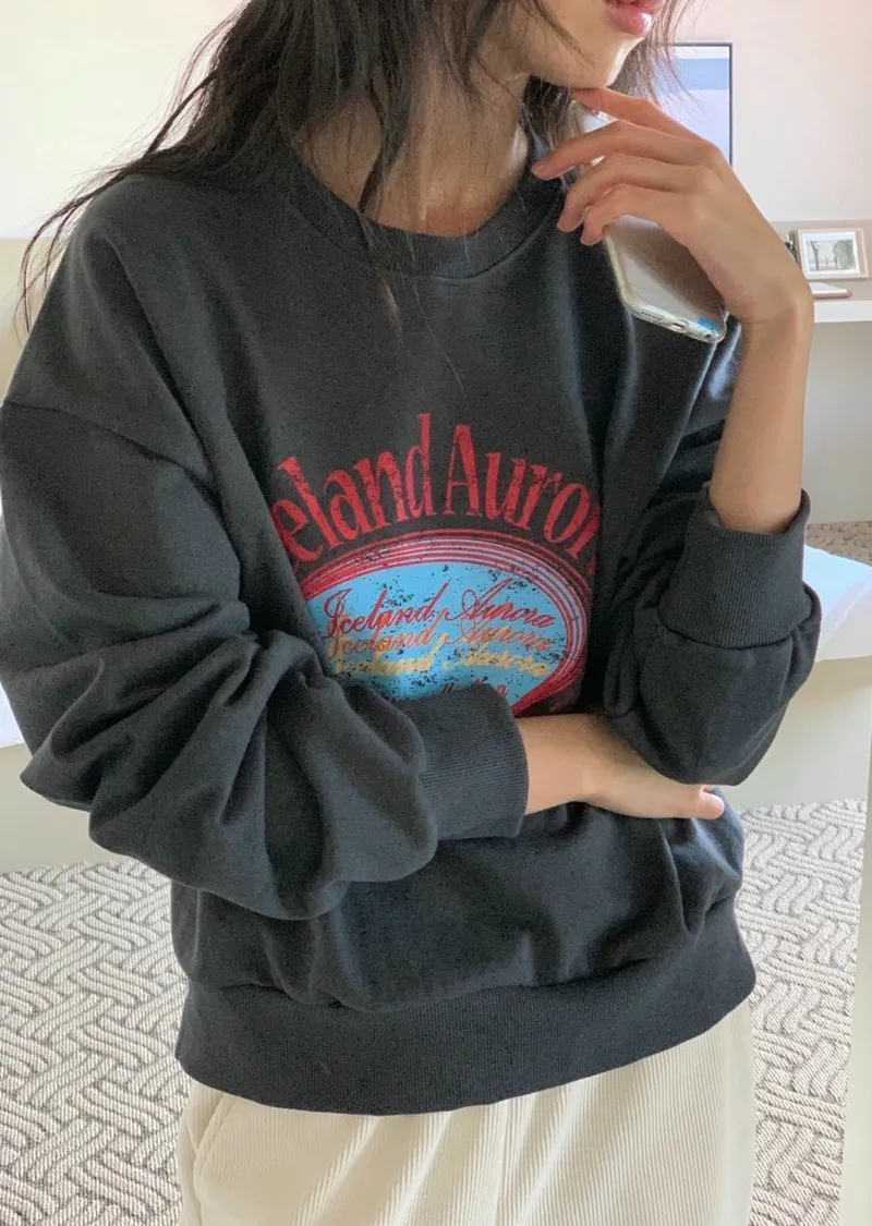 休閒落肩字母長袖衫