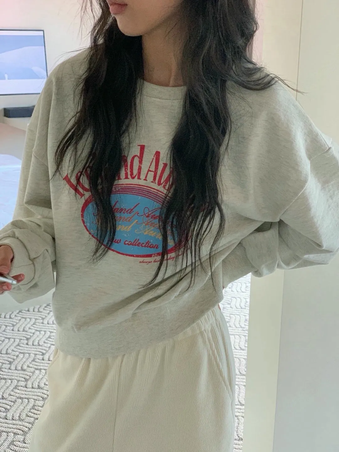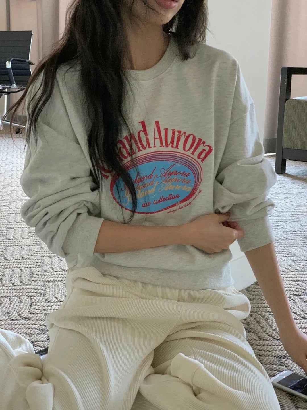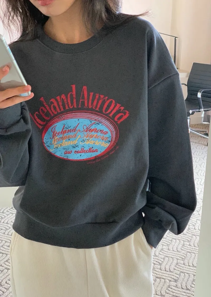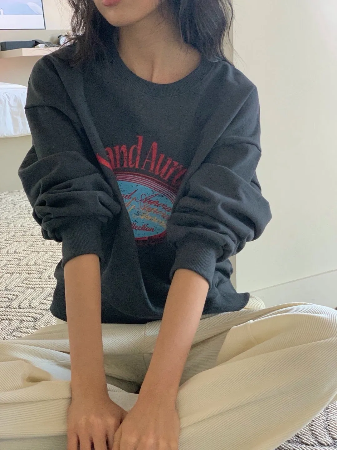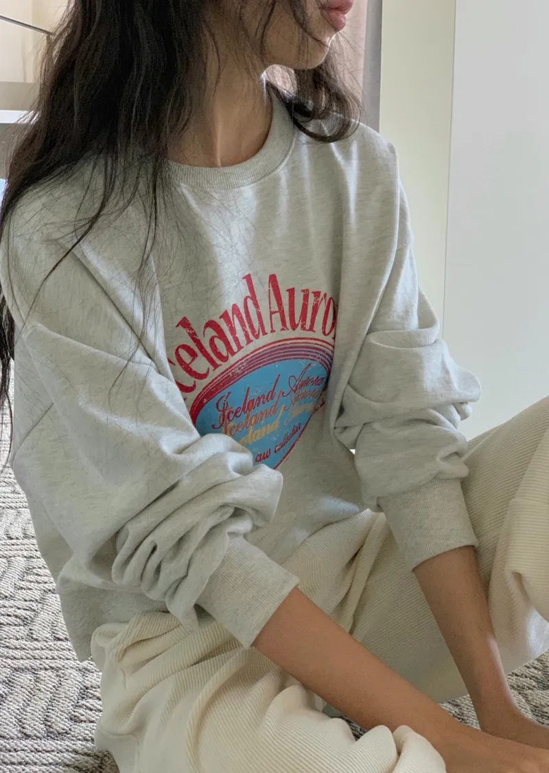 休閒落肩字母長袖衫