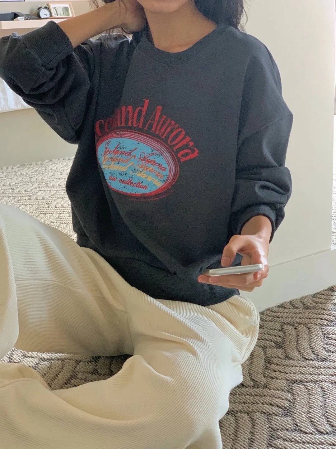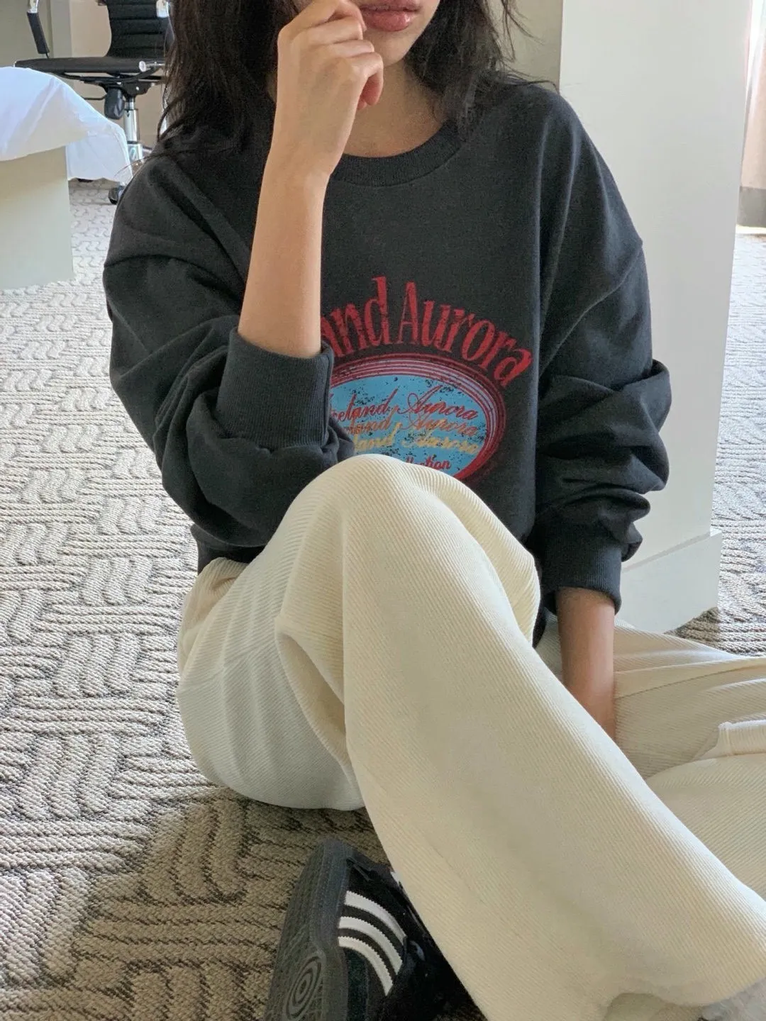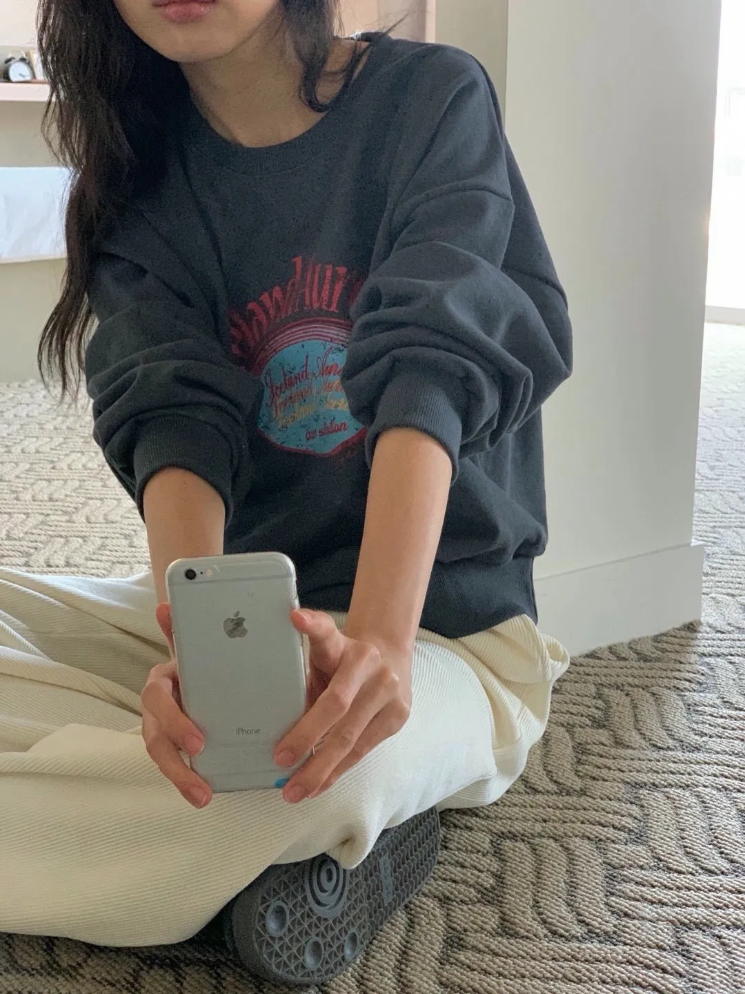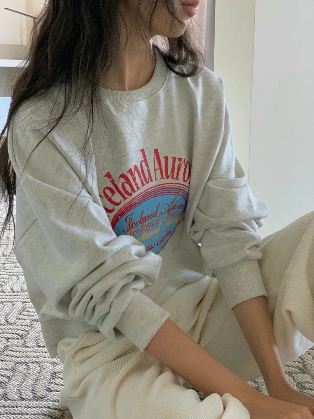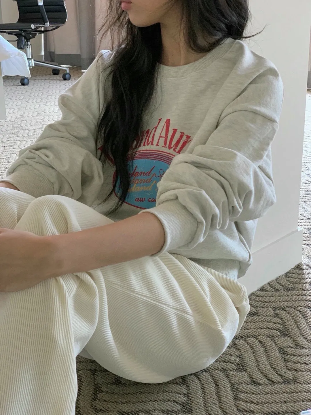 休閒落肩字母長袖衫