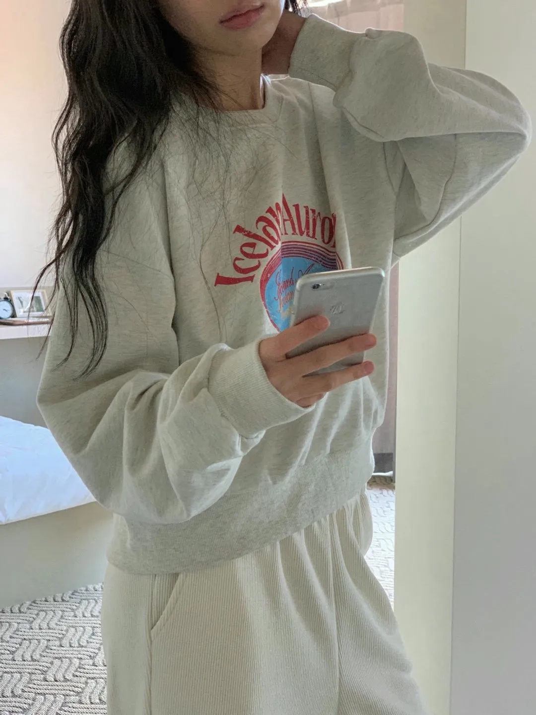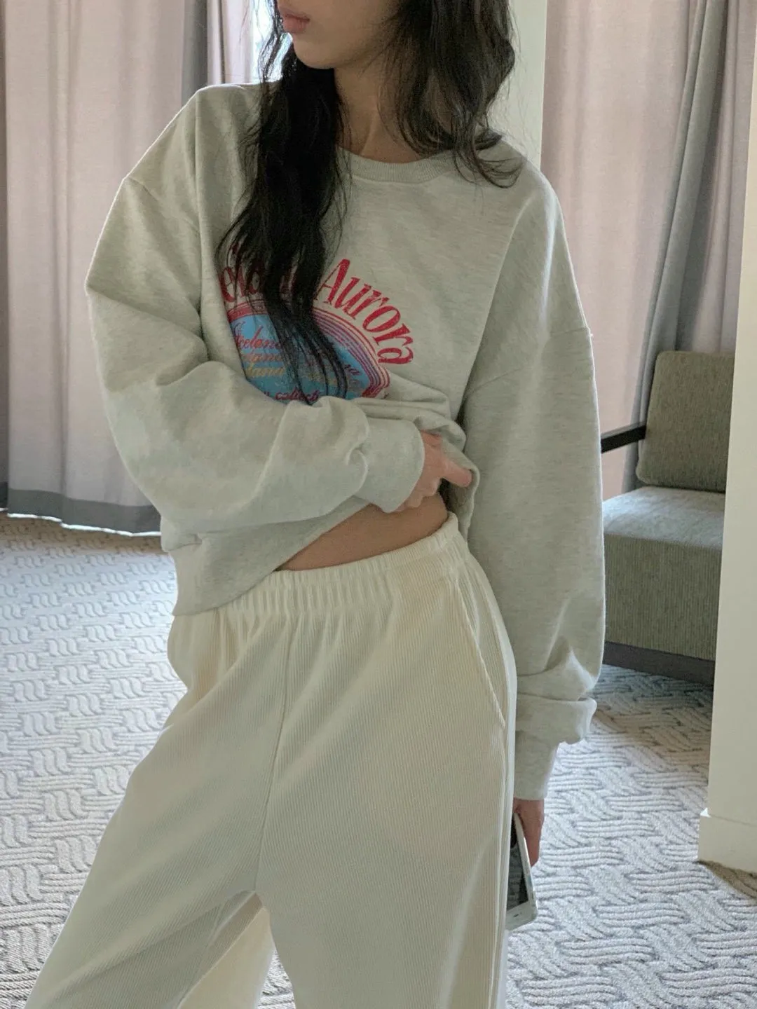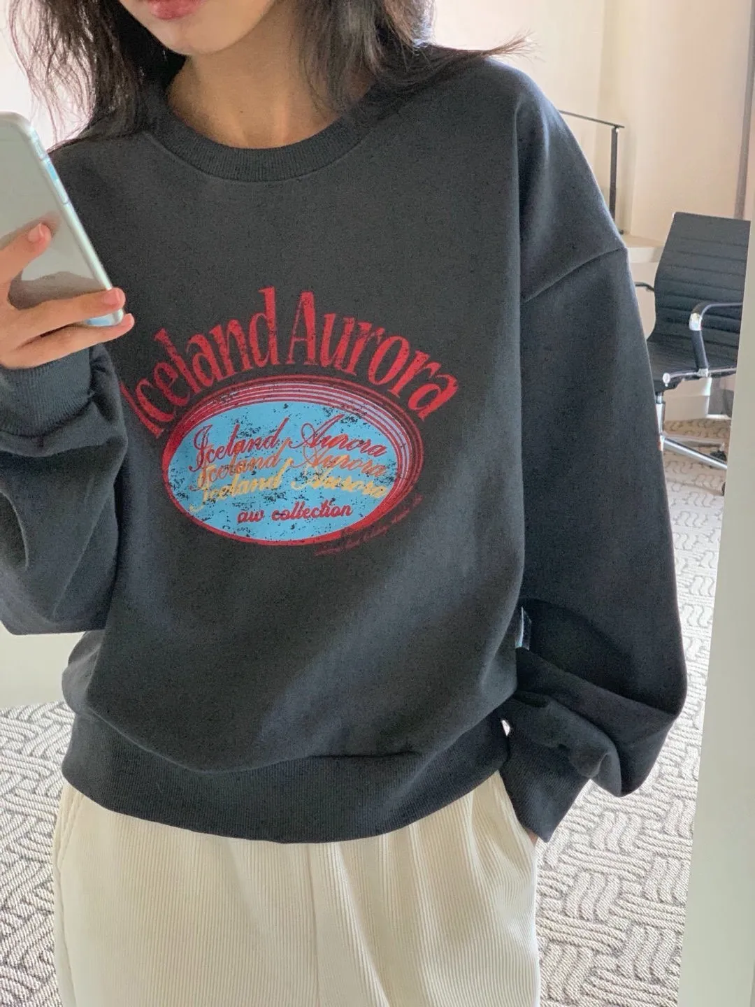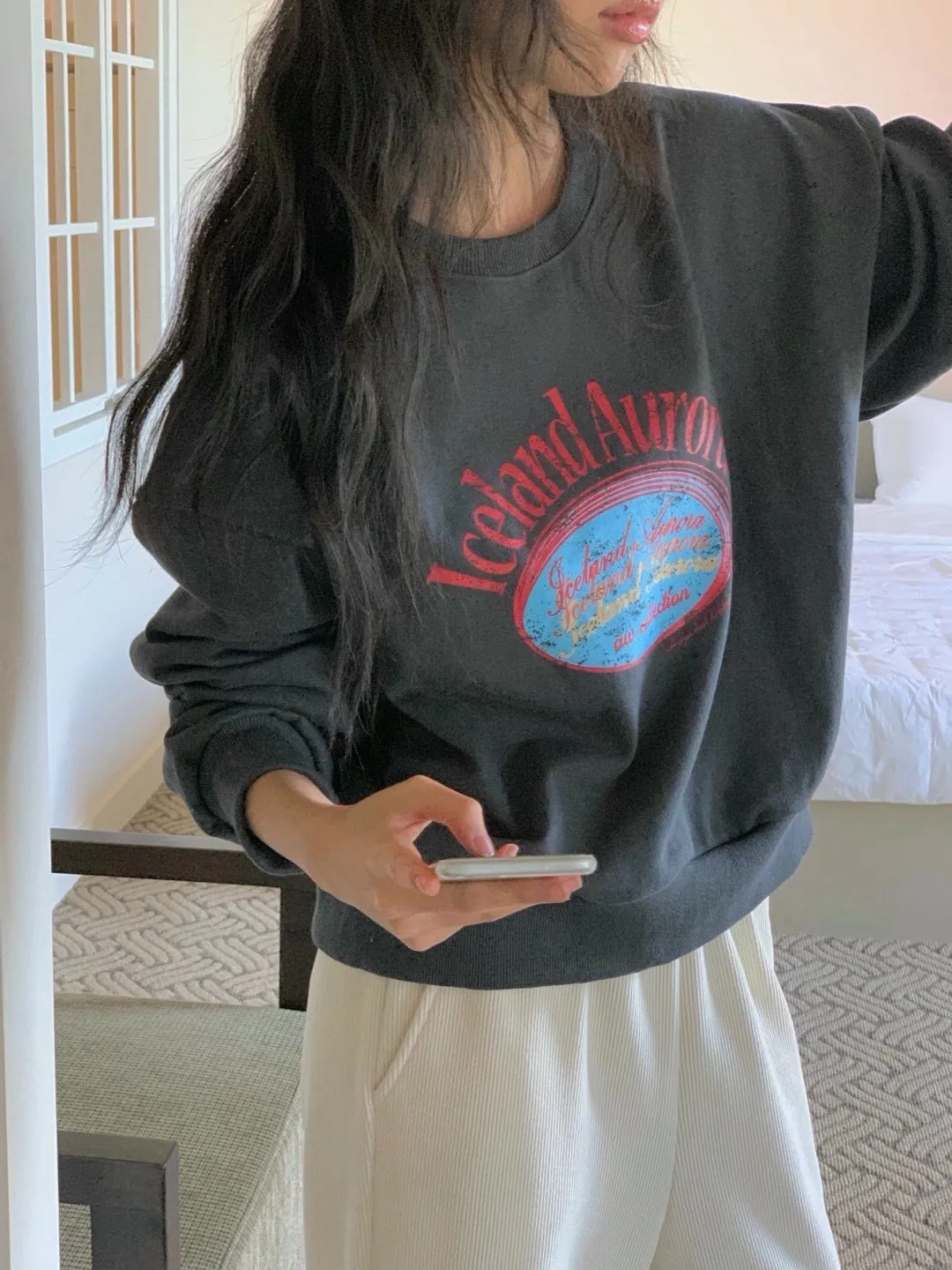 休閒落肩字母長袖衫