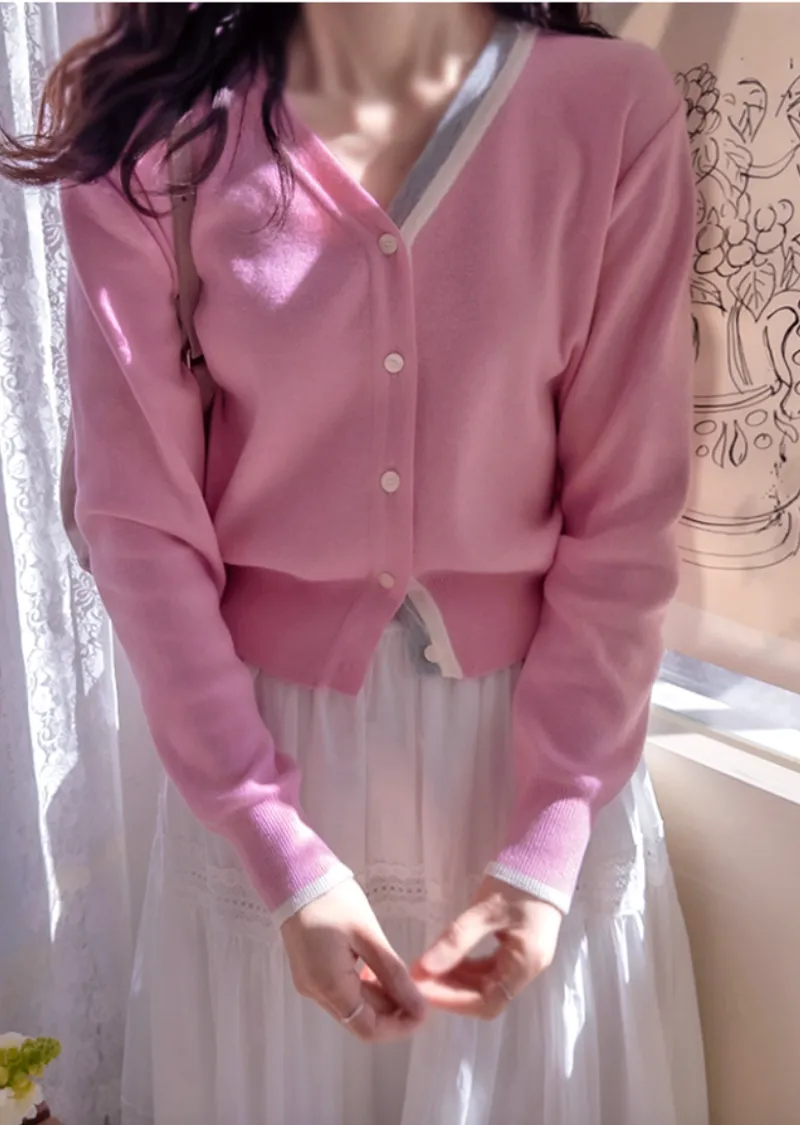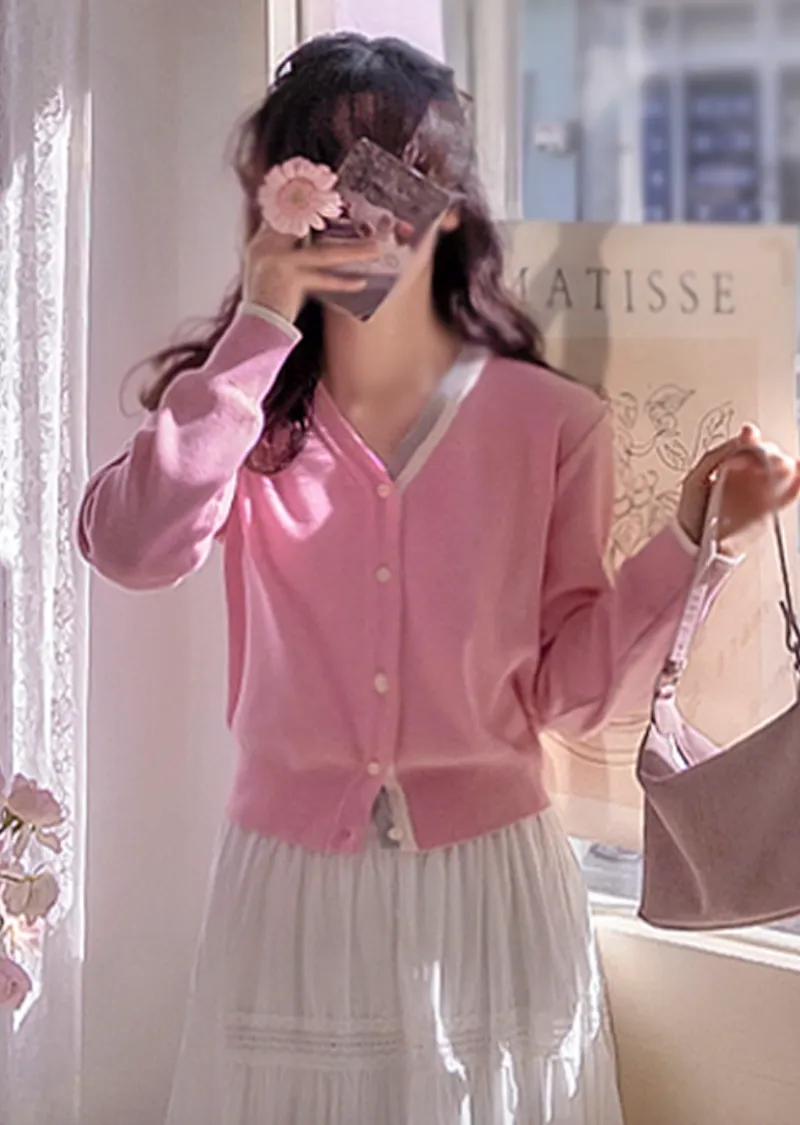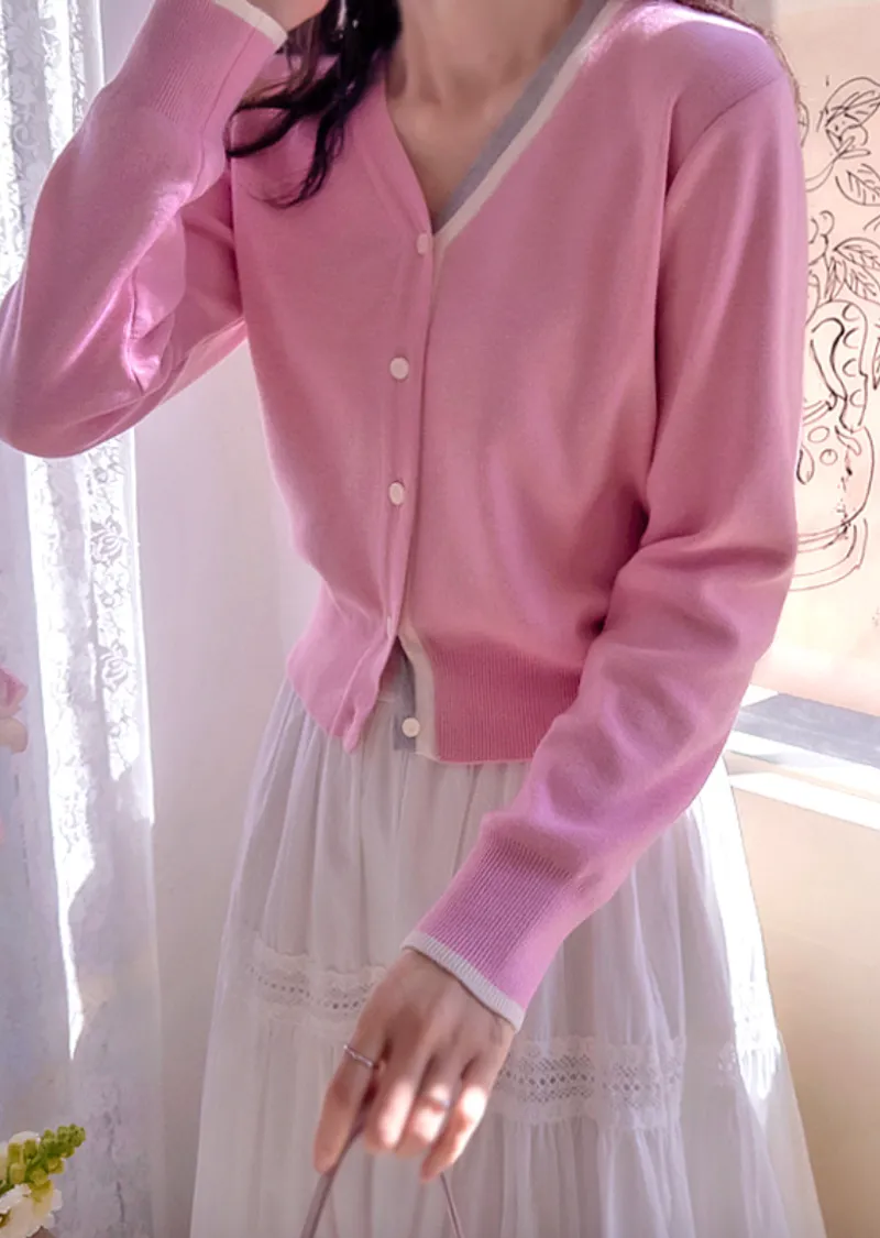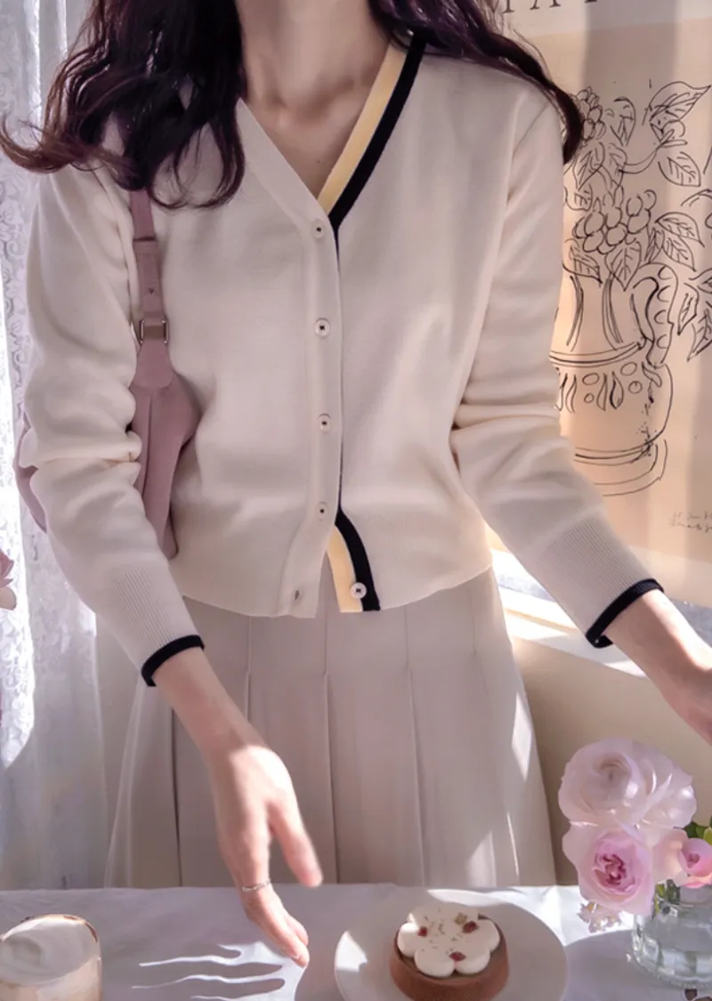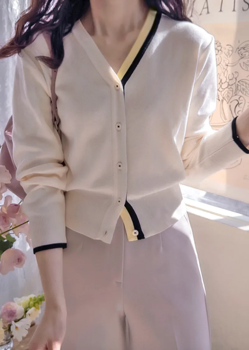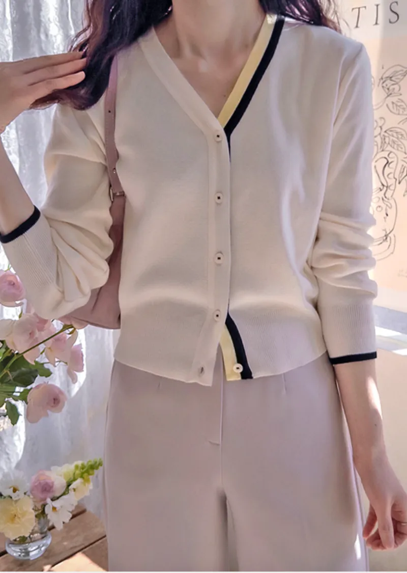獨特精緻配色線邊柔軟舒適開衫
