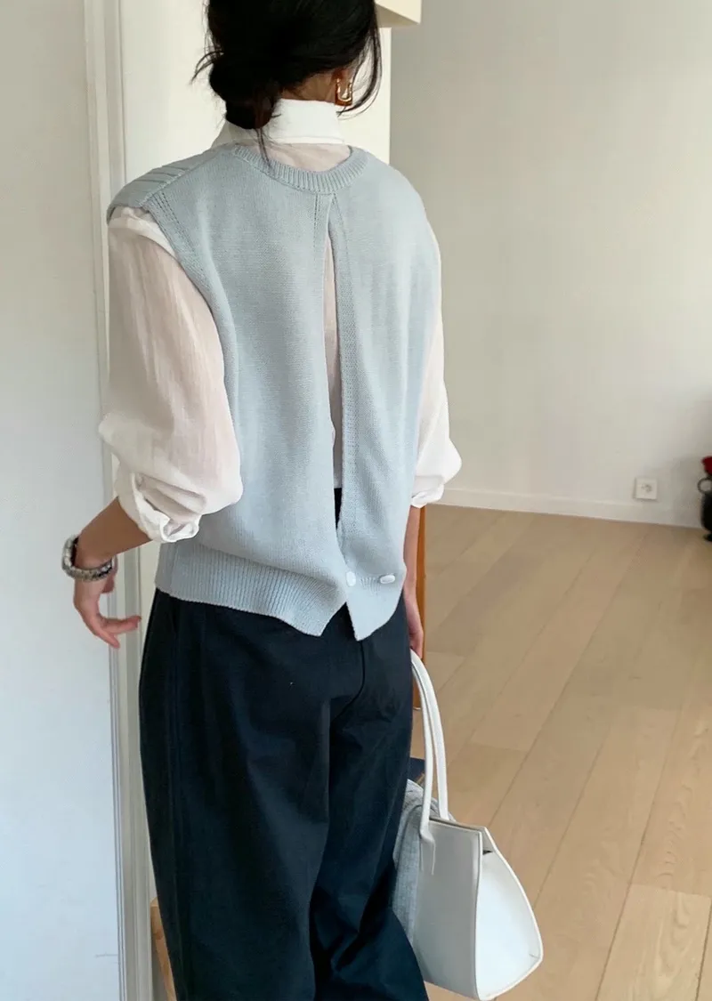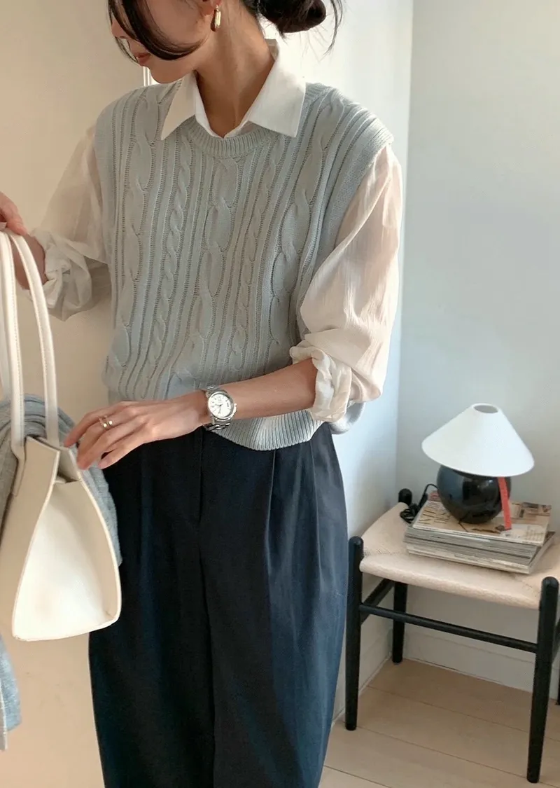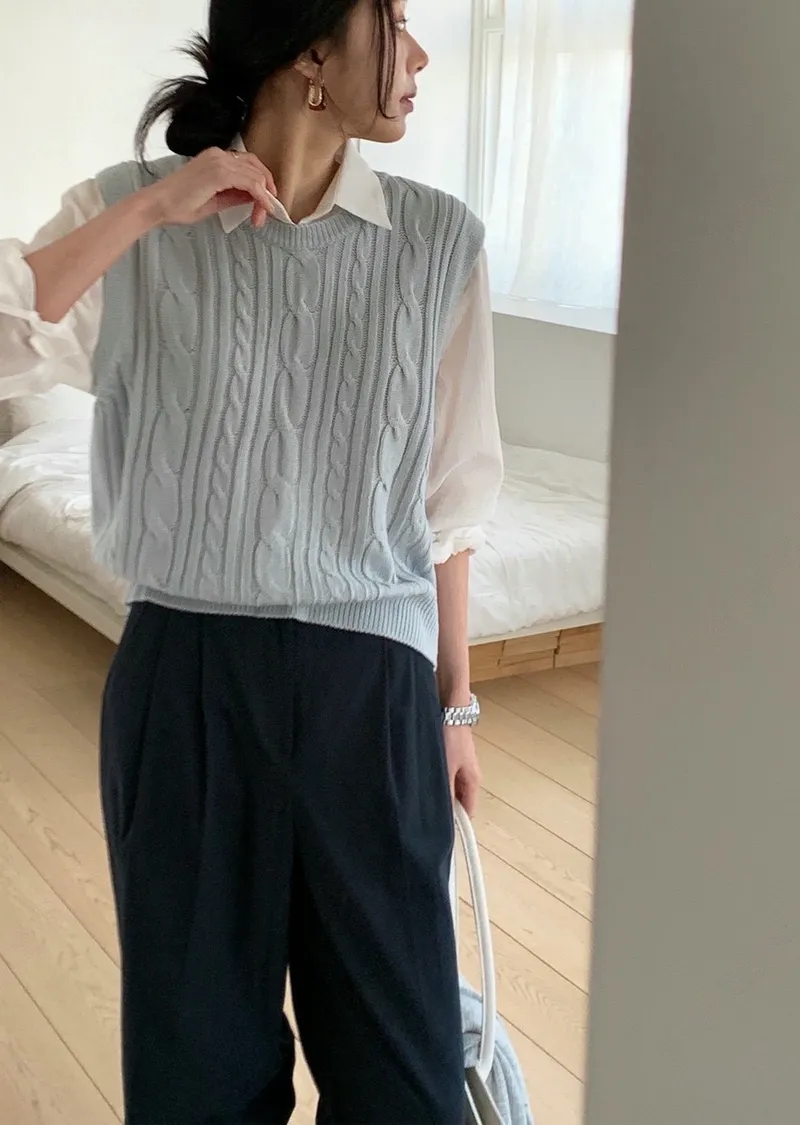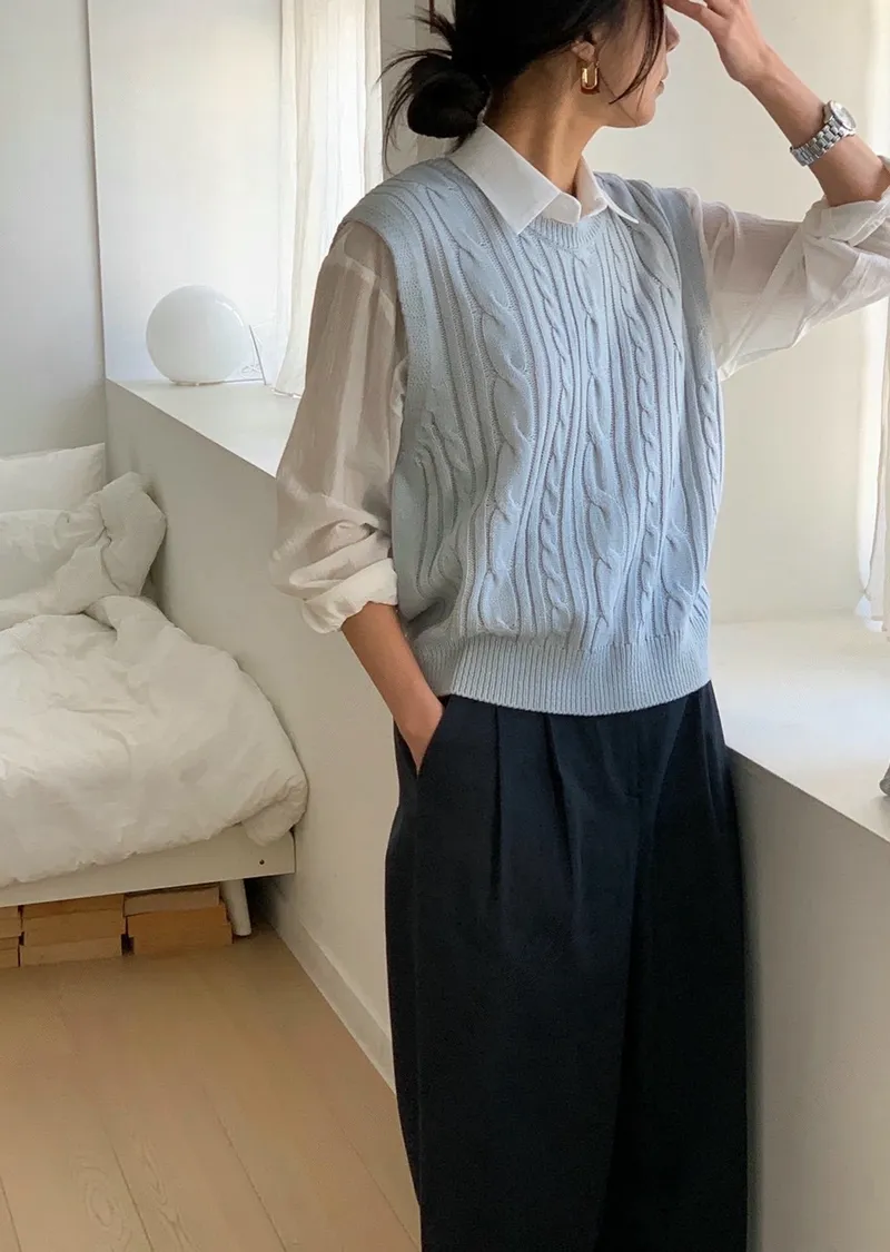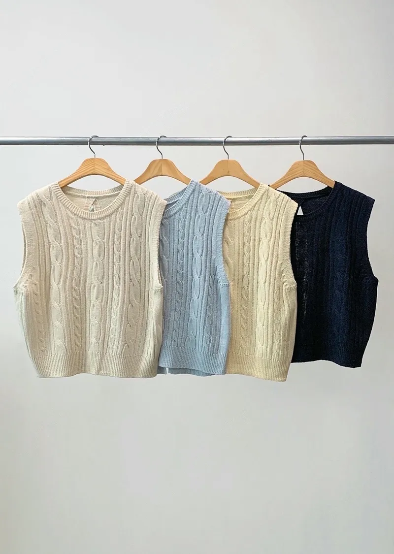麻花紋路後開衩針織背心