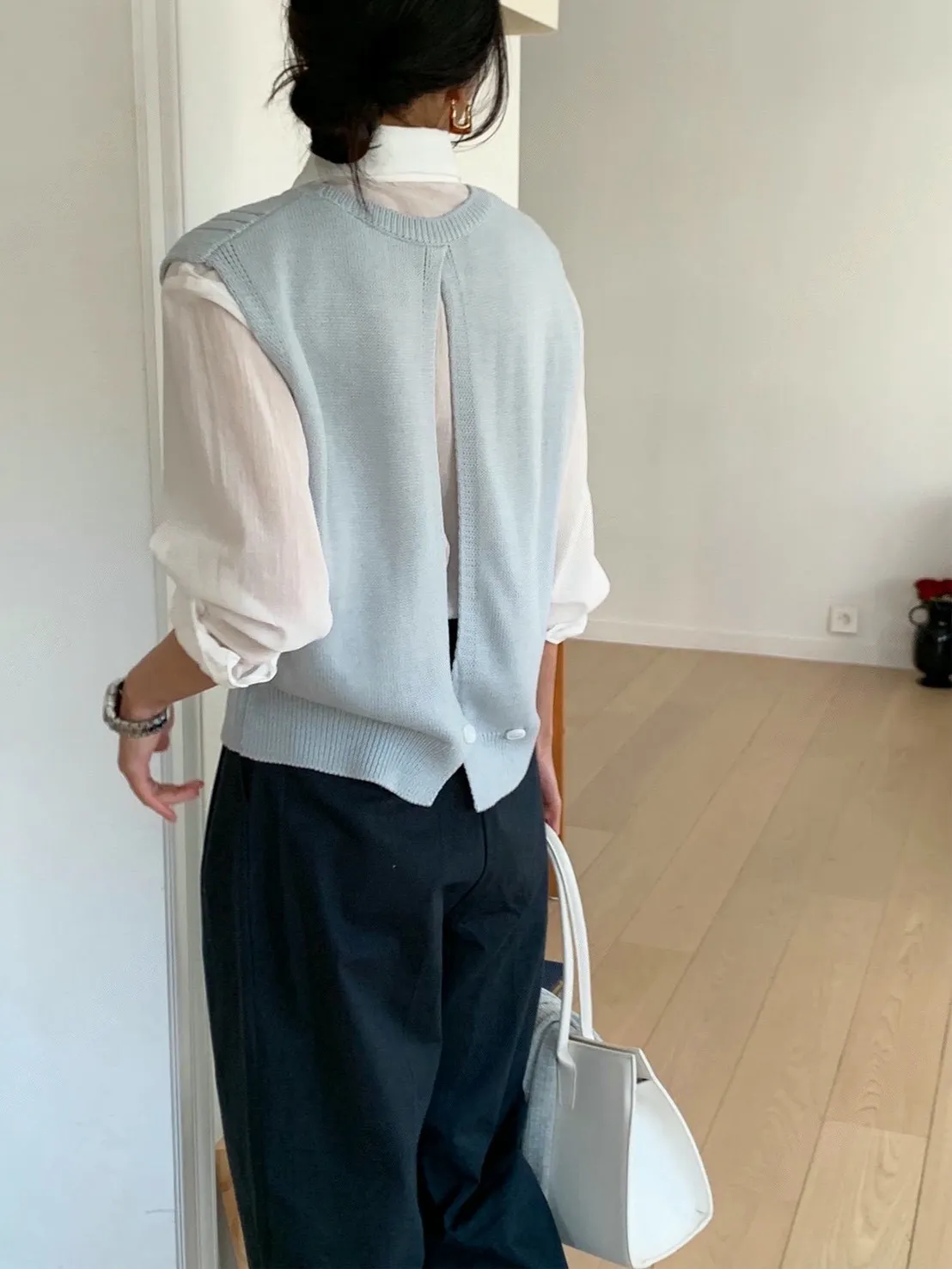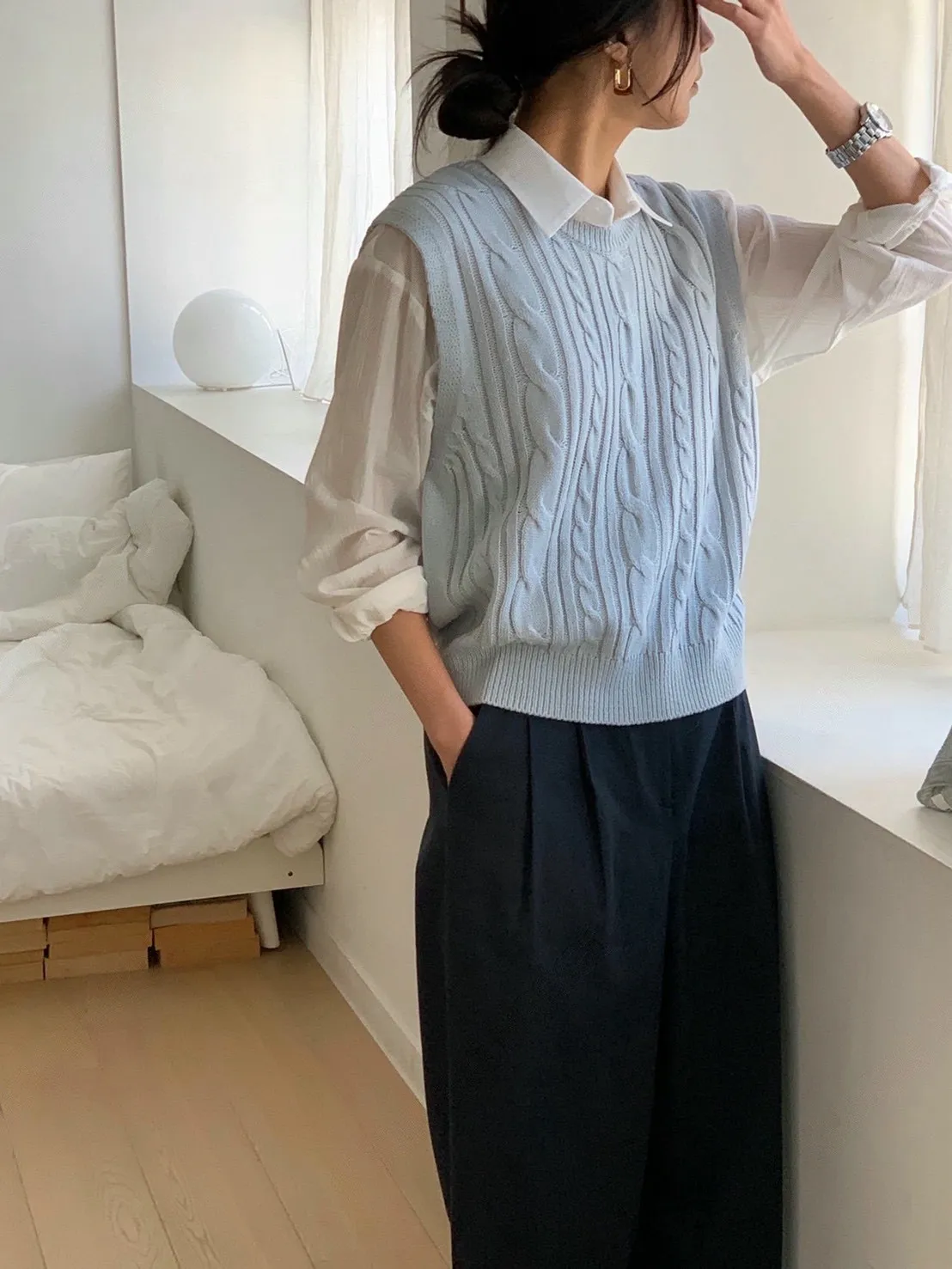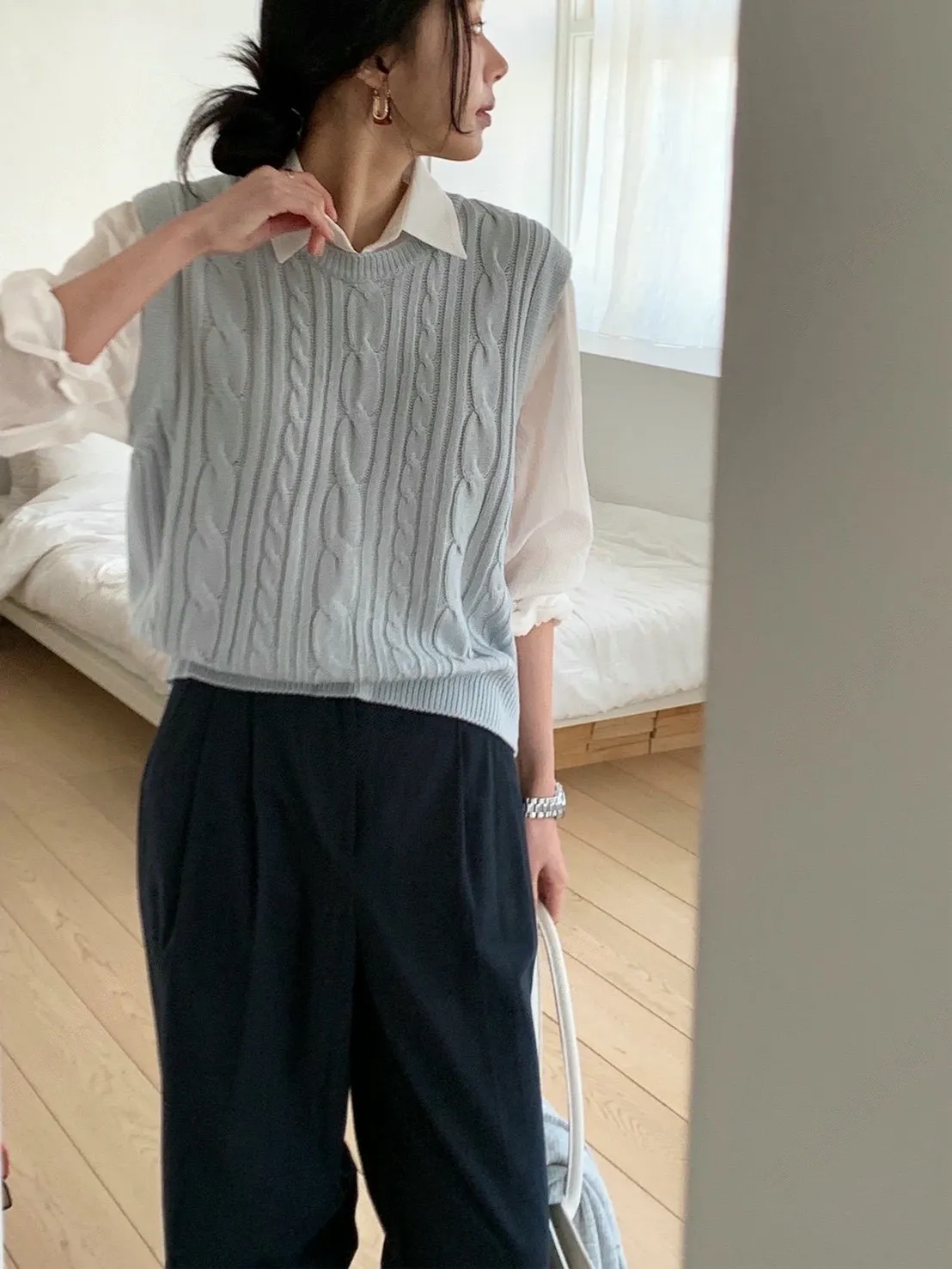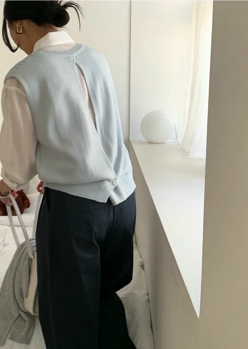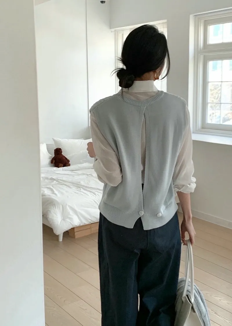 麻花紋路後開衩針織背心