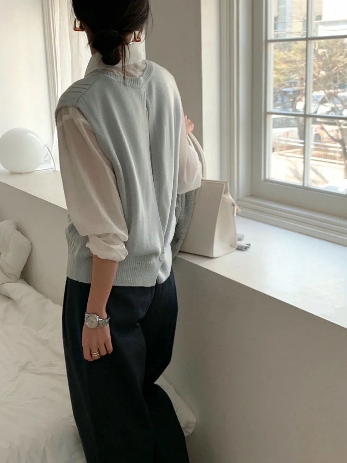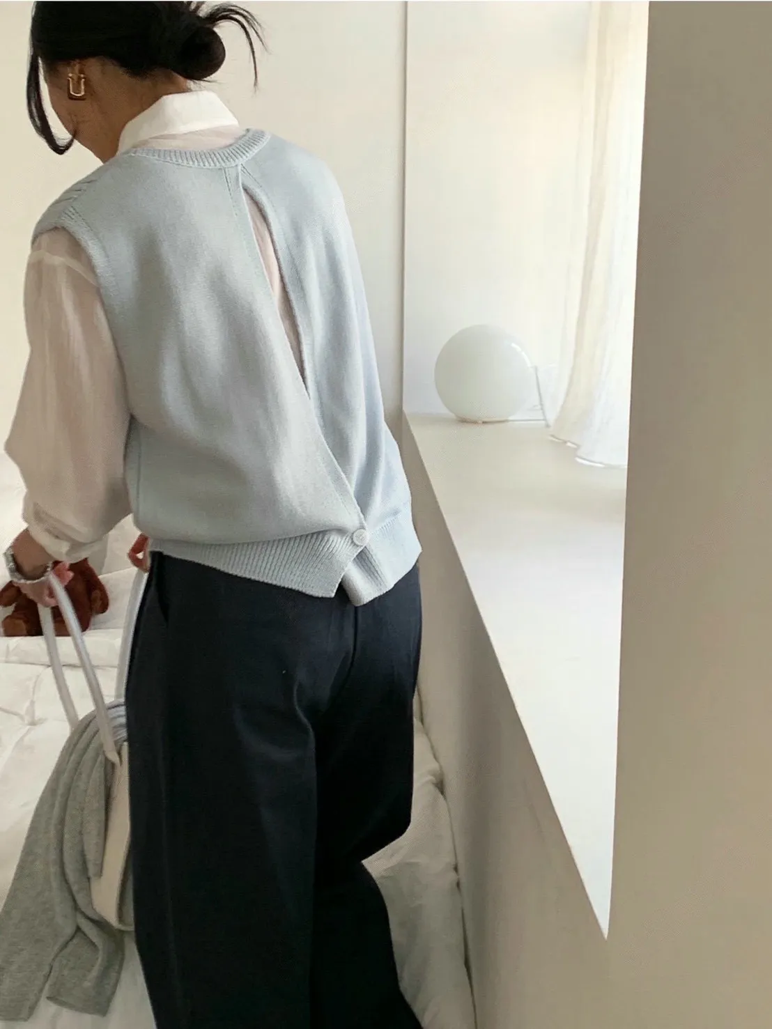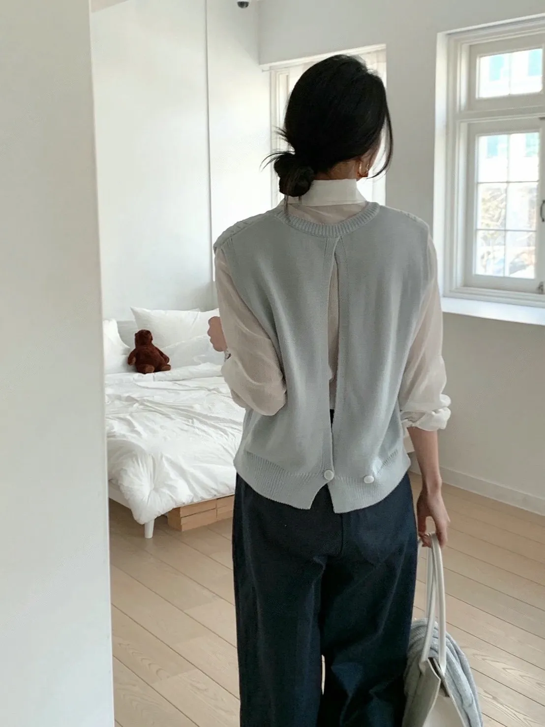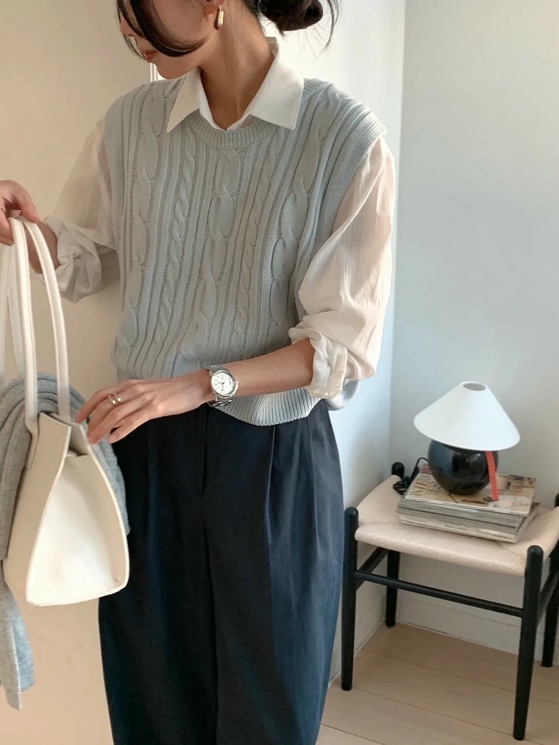 麻花紋路後開衩針織背心