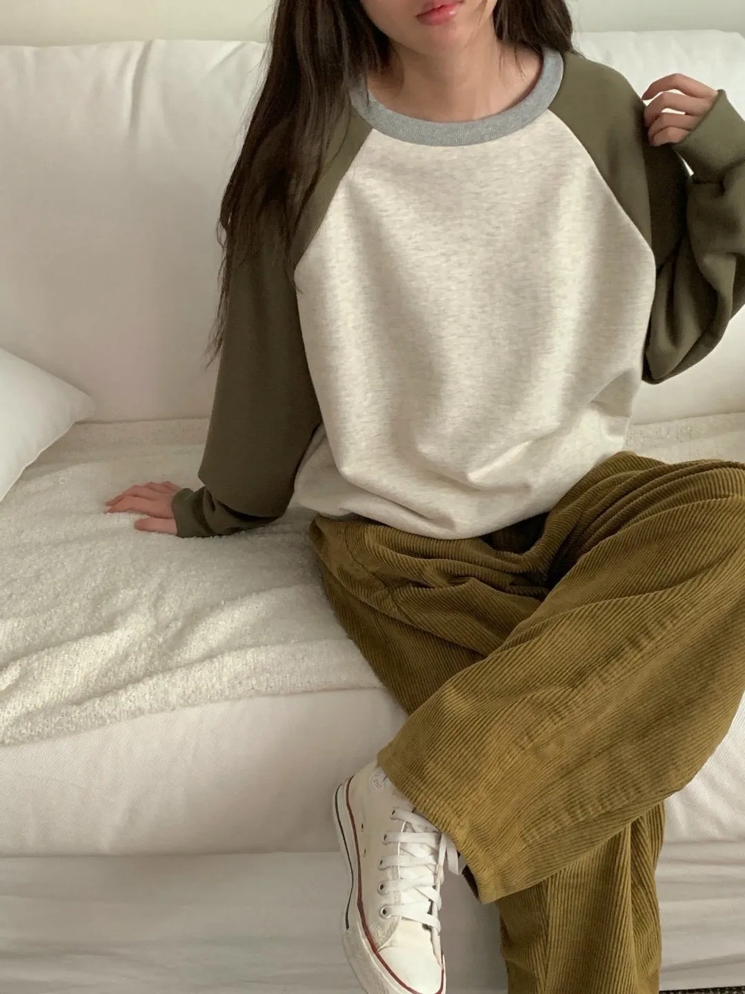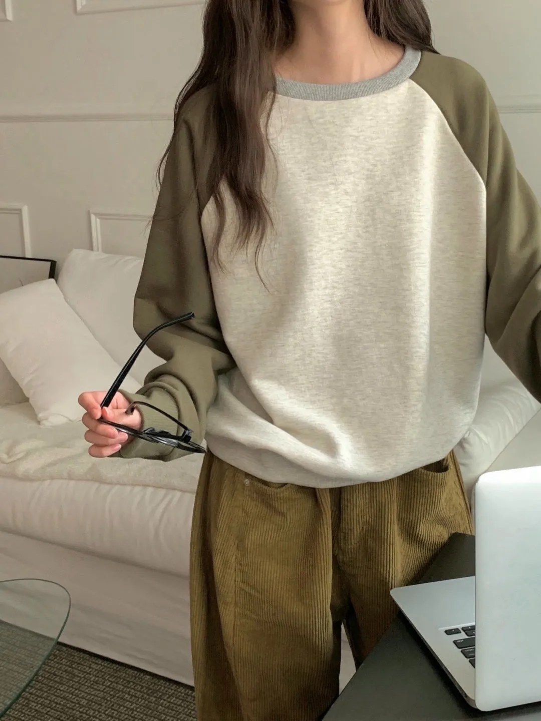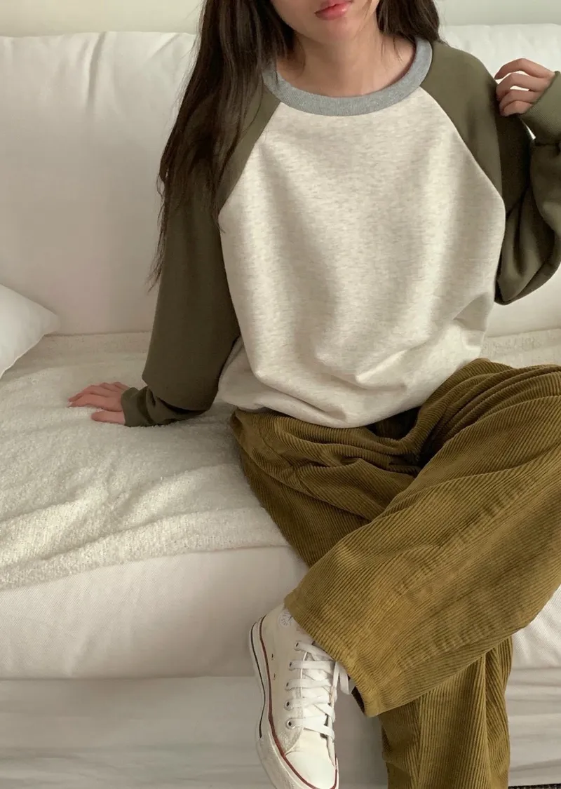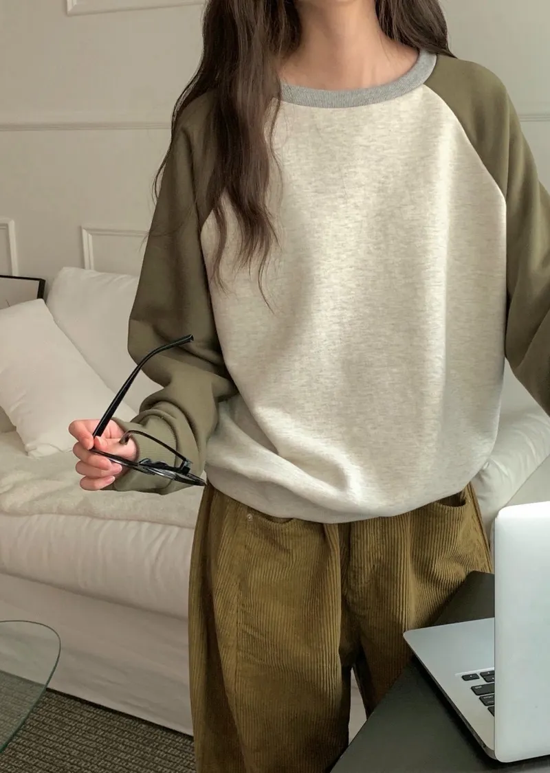 舒適拼接長袖上衣