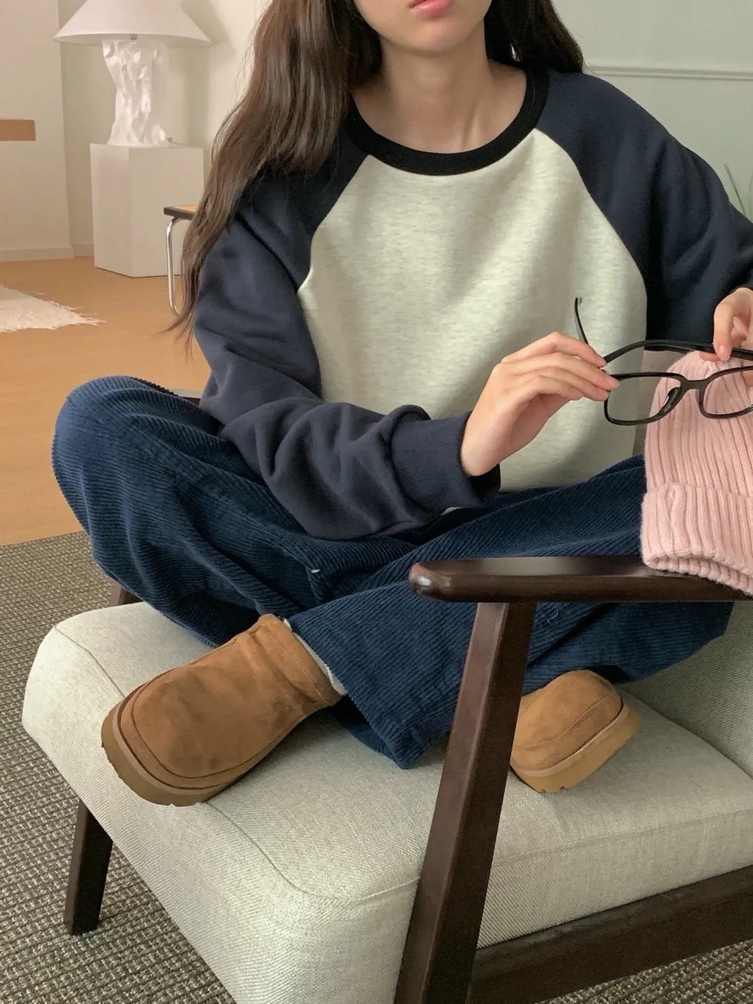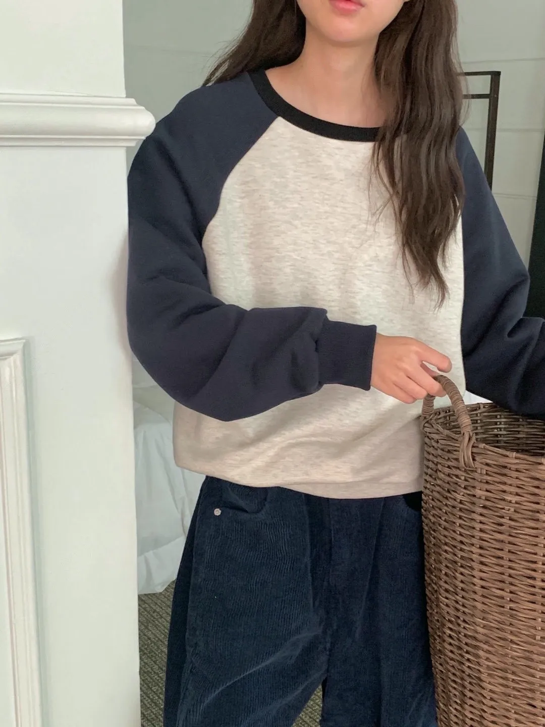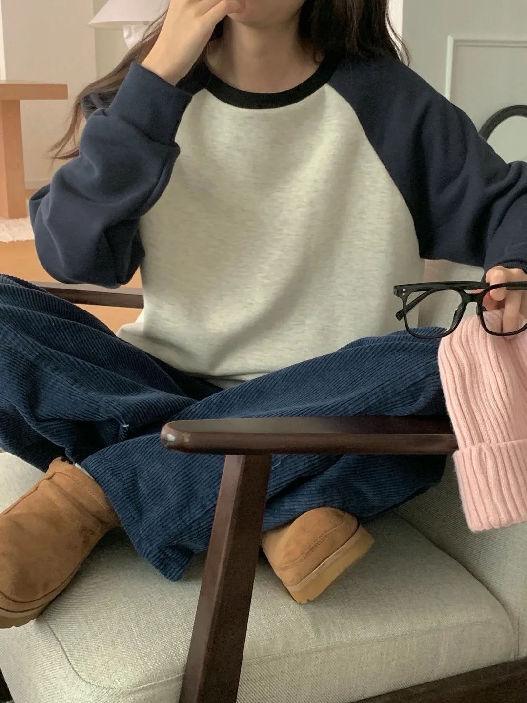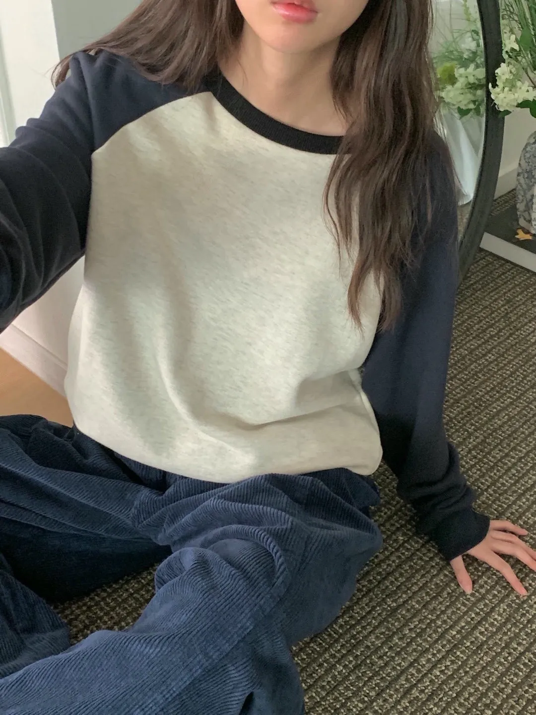 舒適拼接長袖上衣
