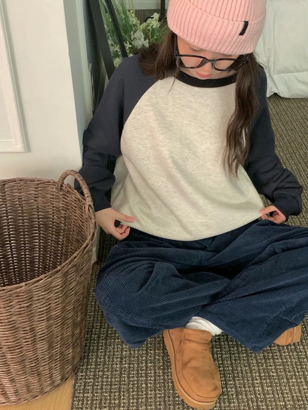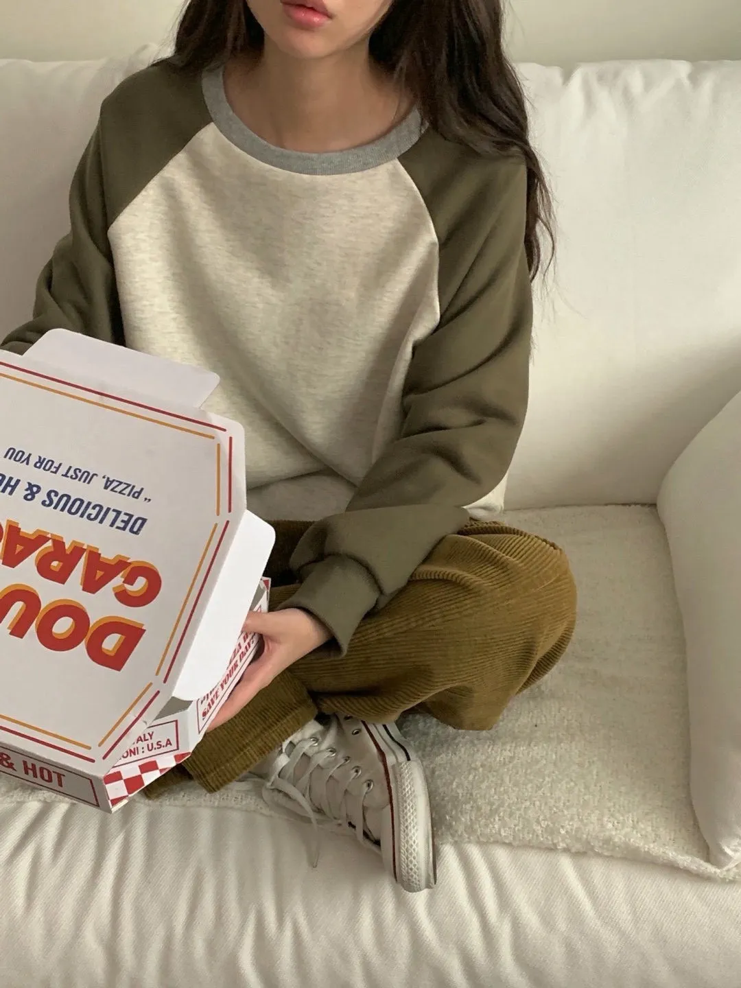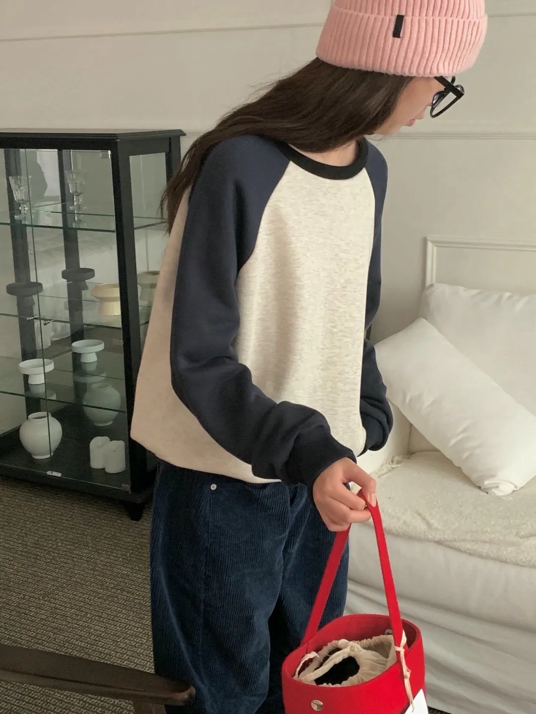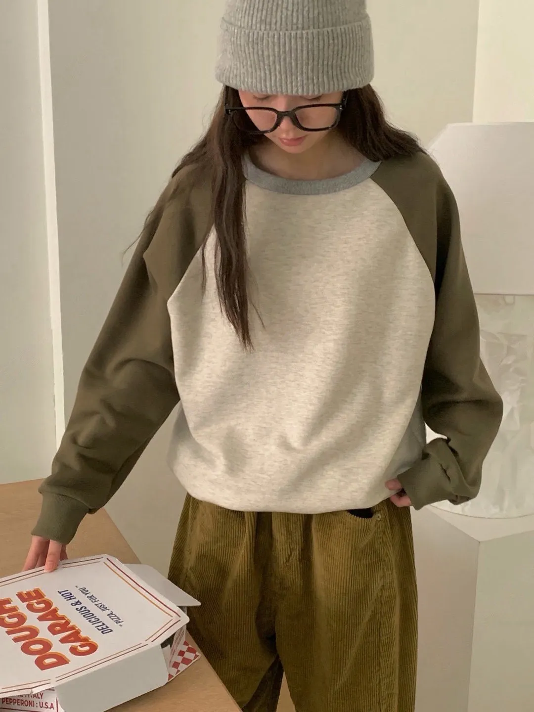 舒適拼接長袖上衣