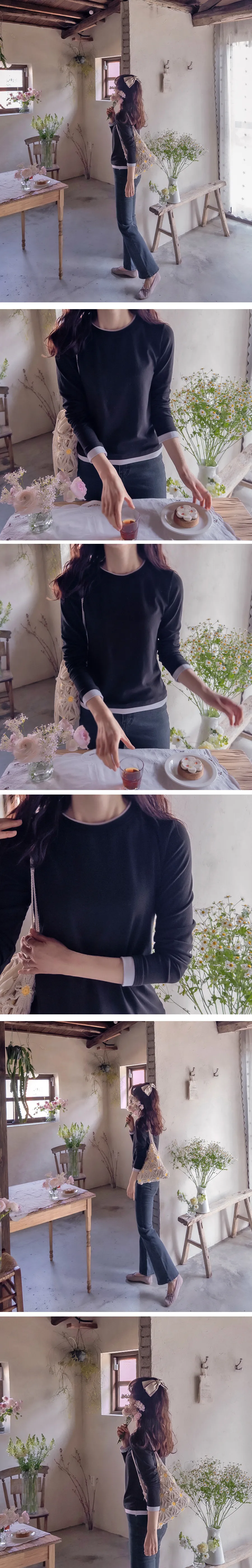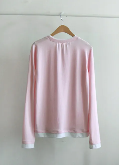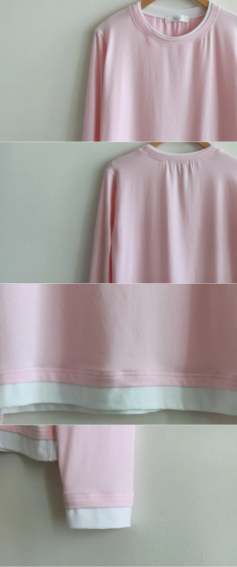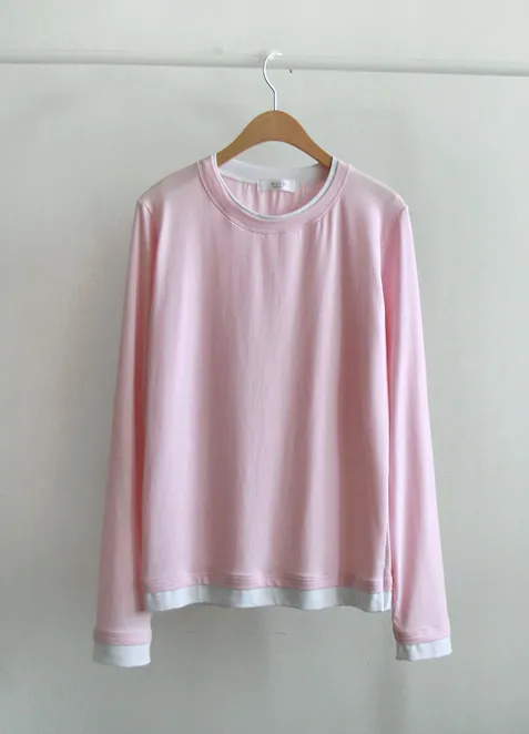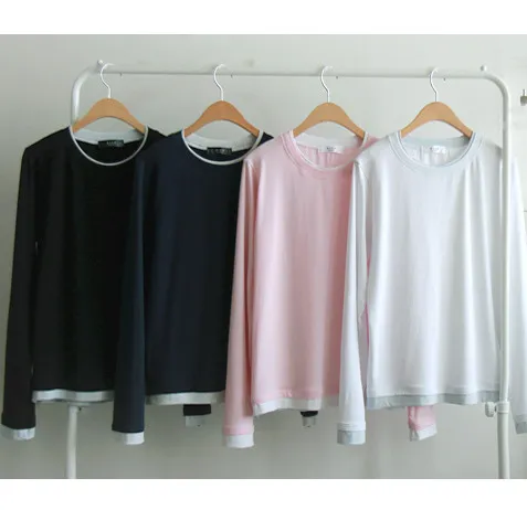 精緻優雅領口袖末配色層疊設計柔軟舒適上衣