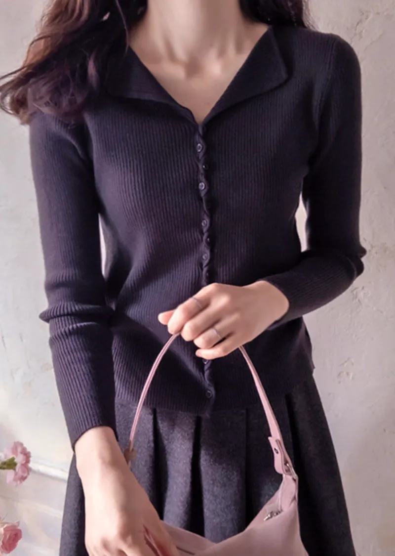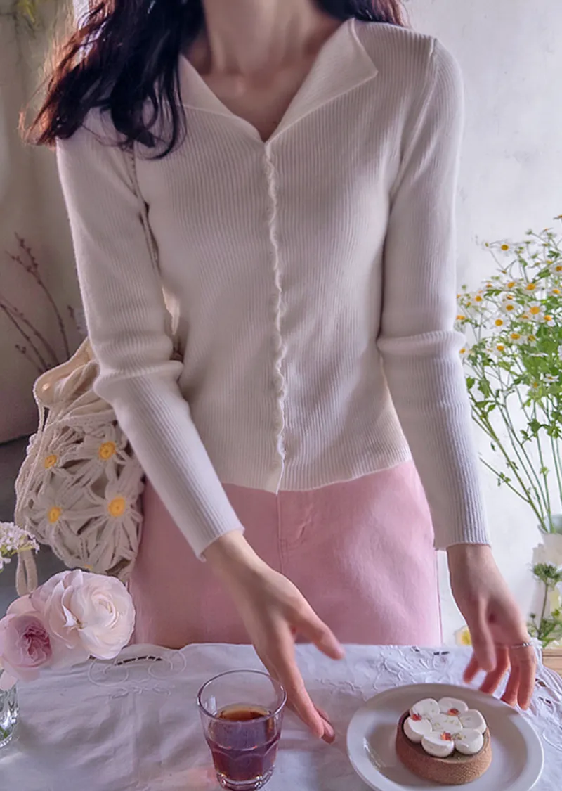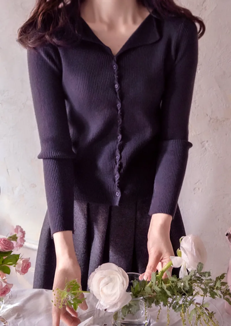 優雅領口線條扭結排扣設計修身開衫