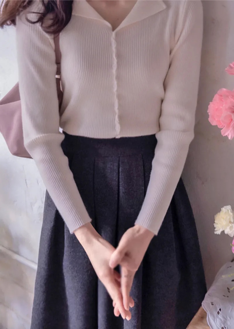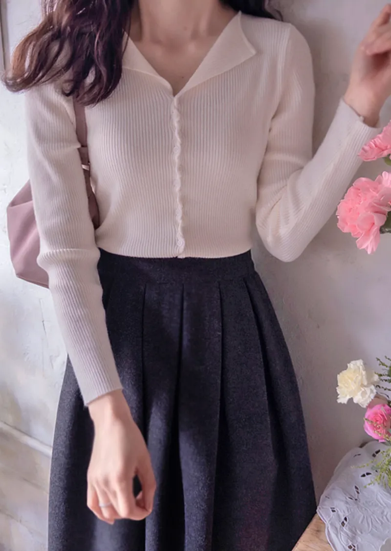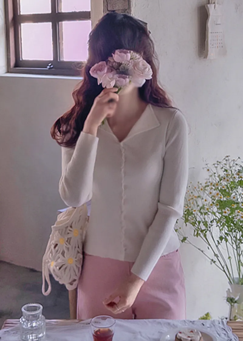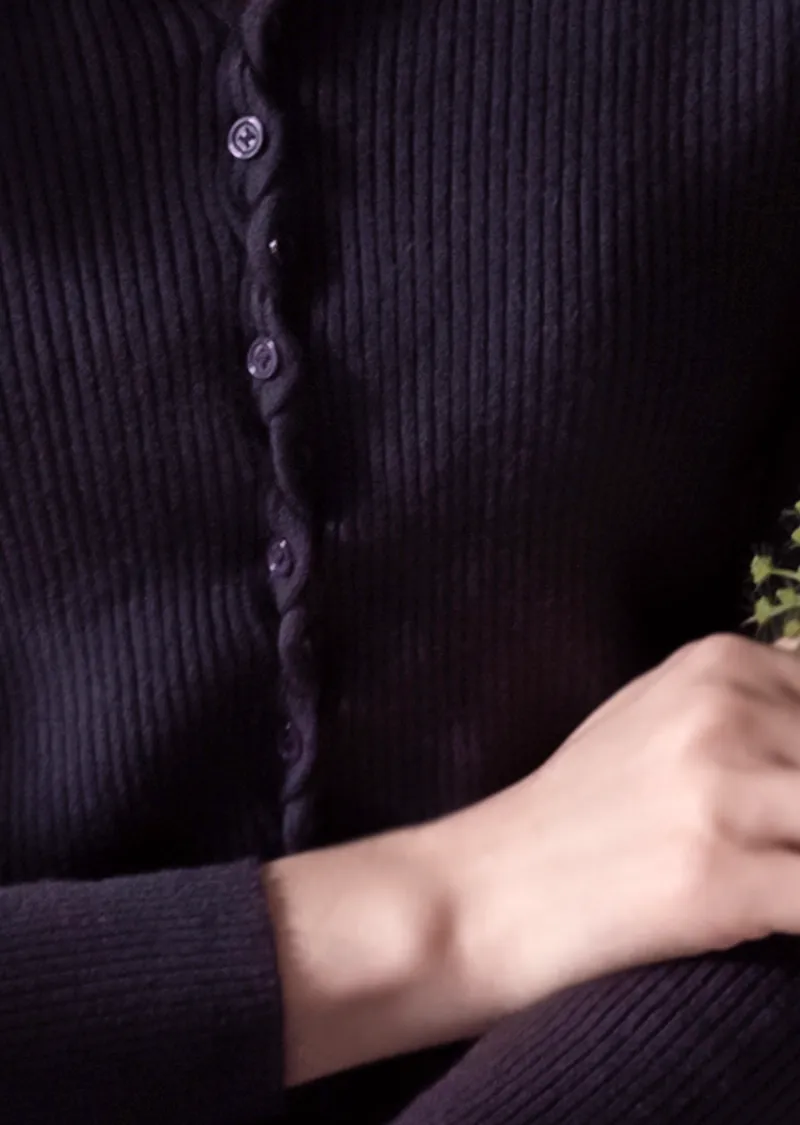 優雅領口線條扭結排扣設計修身開衫