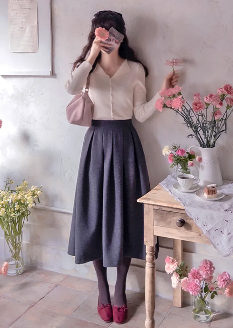 優雅修身A字剪裁摺線裙擺中長裙