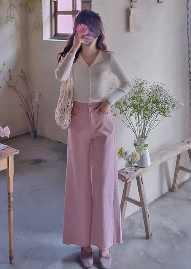 春日柔和色調腰部隱藏鬆緊舒適休閒褲