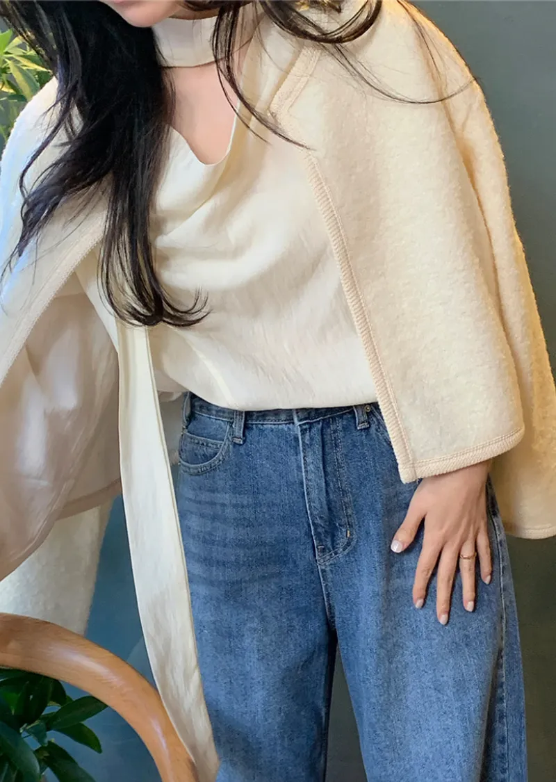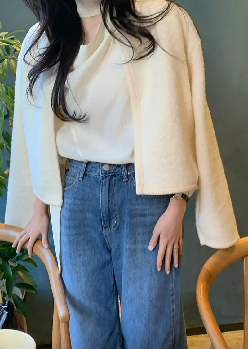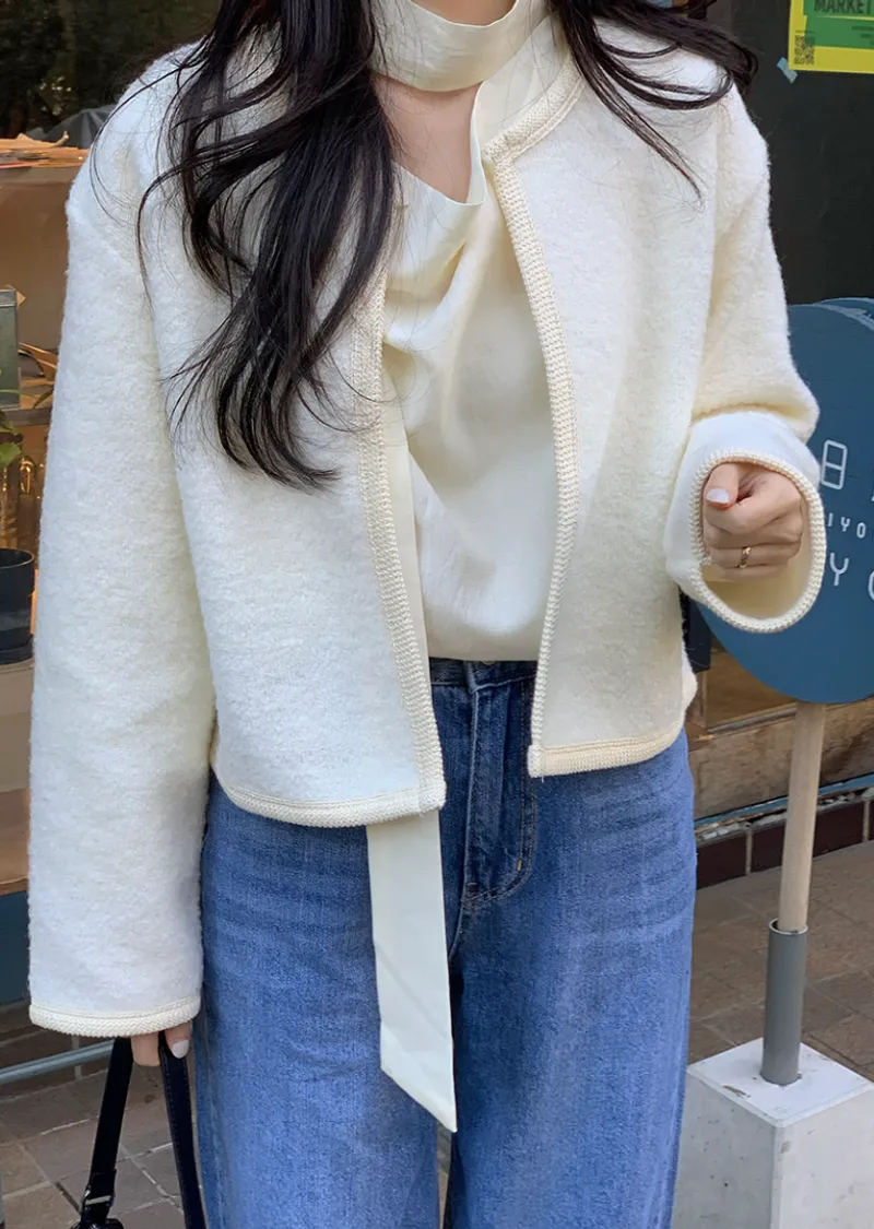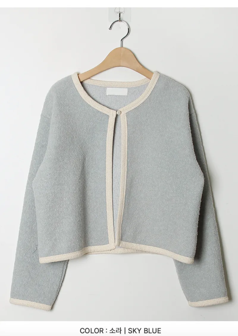 精緻舒適針織滾邊羊毛混紡開衫