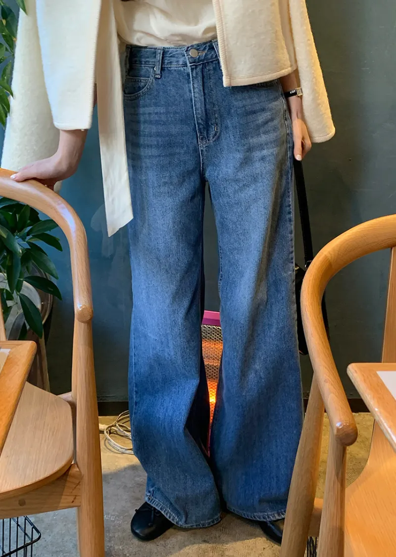 潮流氣息水洗線條半寬靴型剪裁牛仔褲