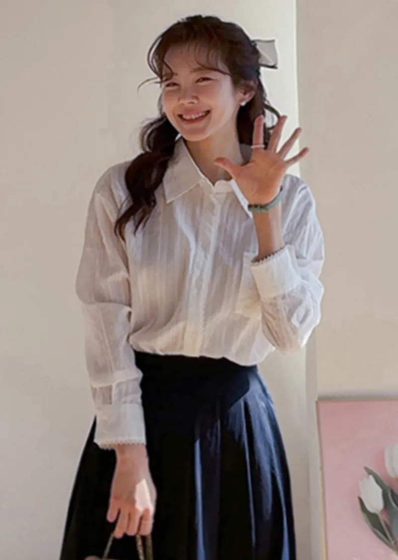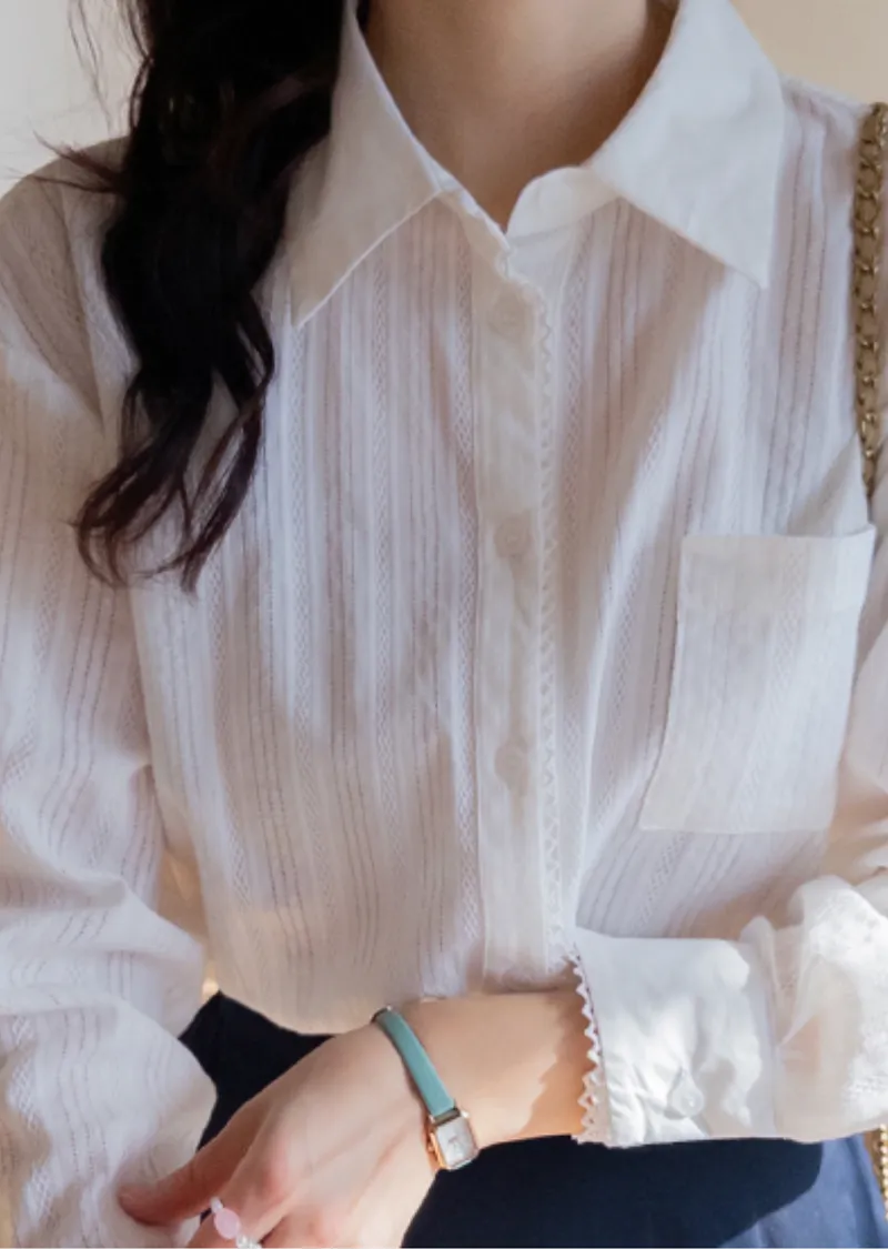 【精緻的質感,營造出柔和的氛圍】【袖口和前襟的蕾絲花邊很漂亮】【簡潔的襯衫設計,細節精緻! 】【單穿或內搭都非常百搭♥】