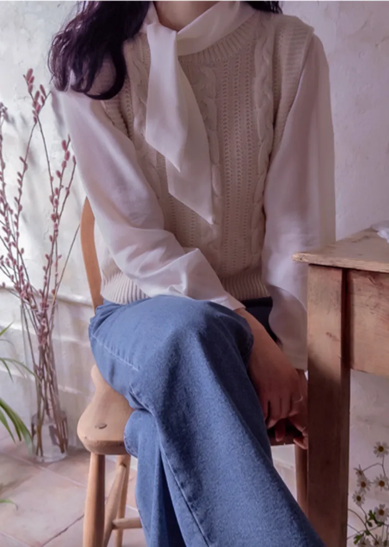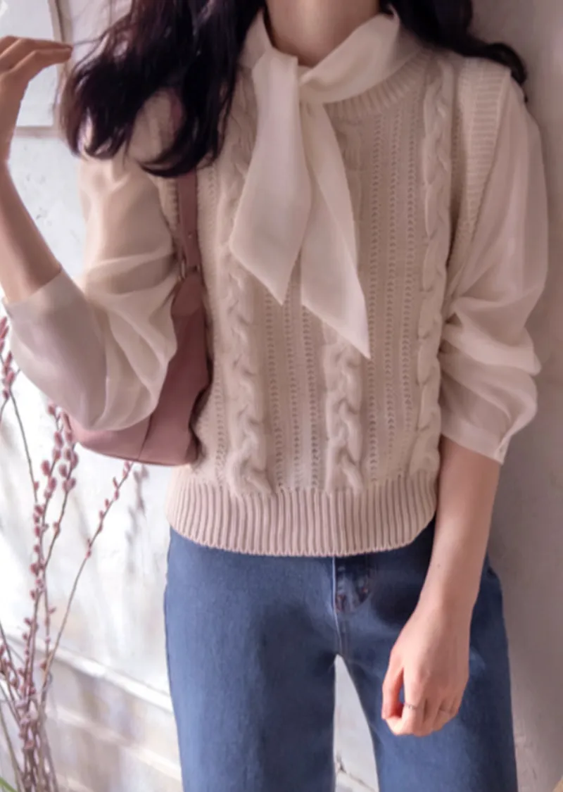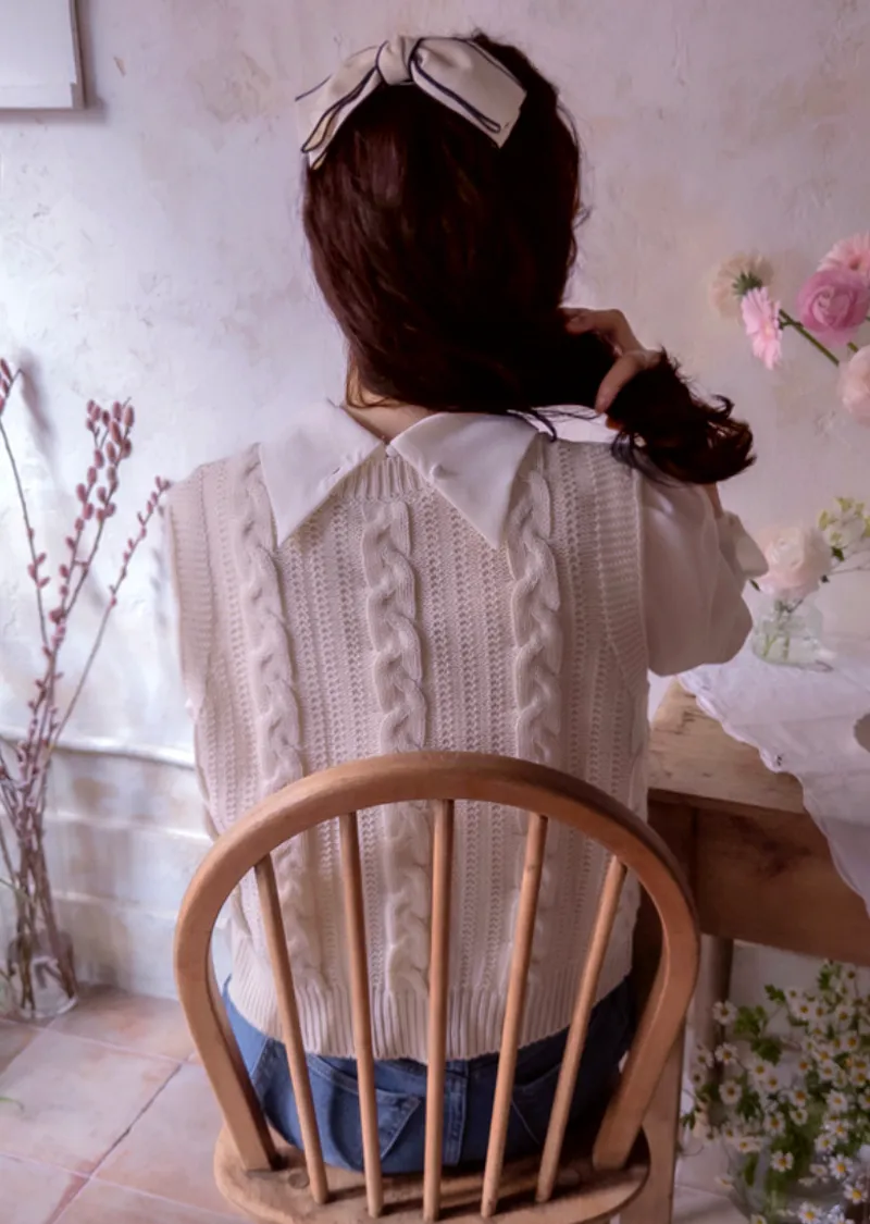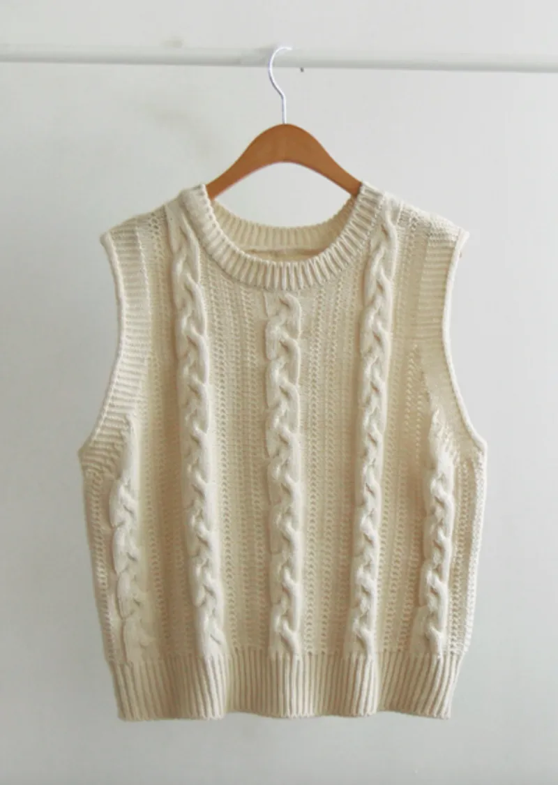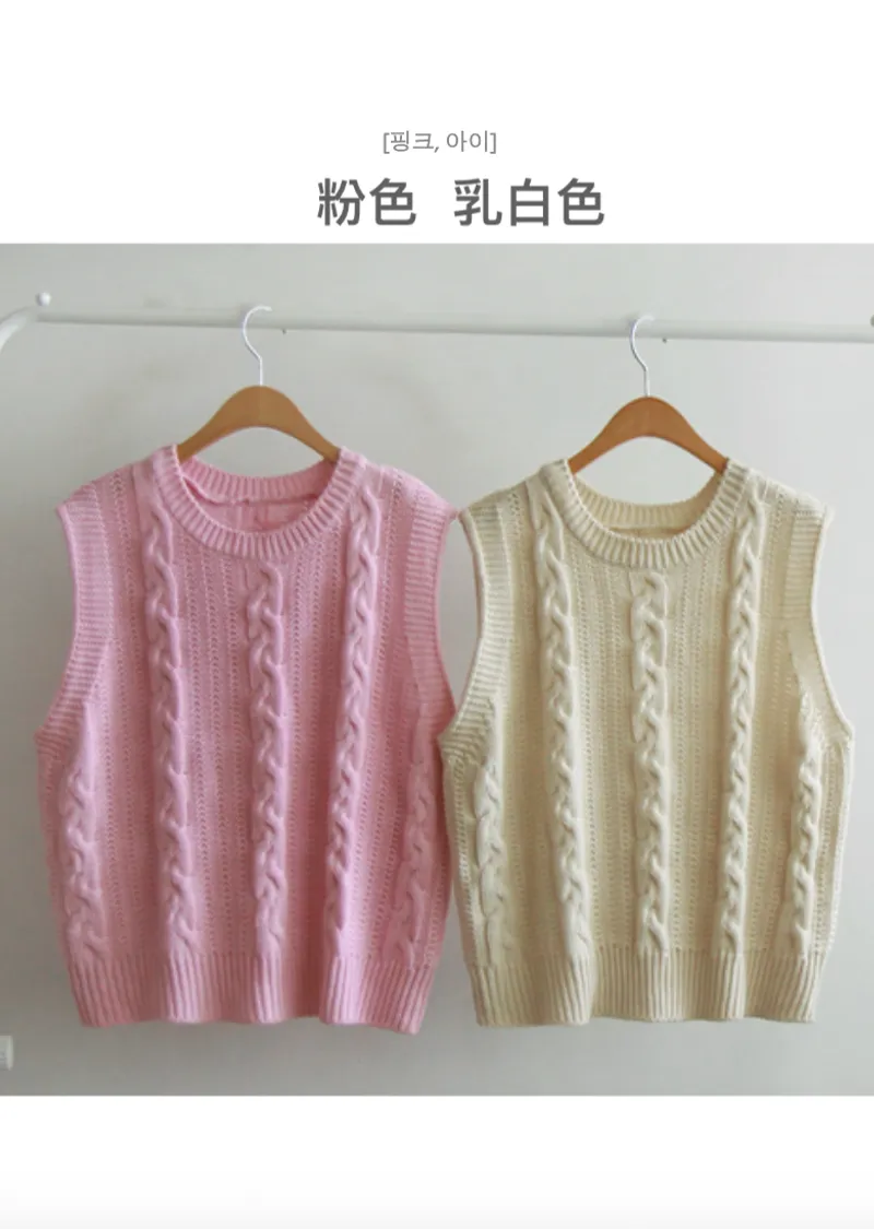 春日色彩簡約經典扭紋編織針織背心