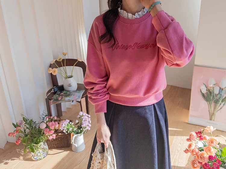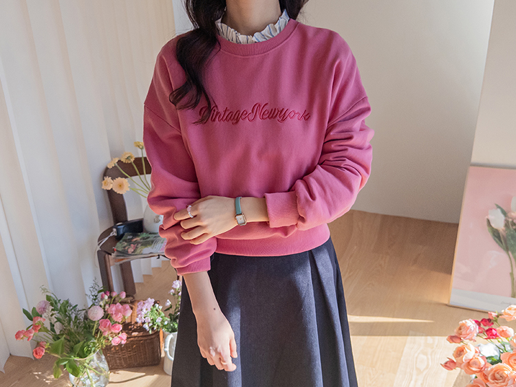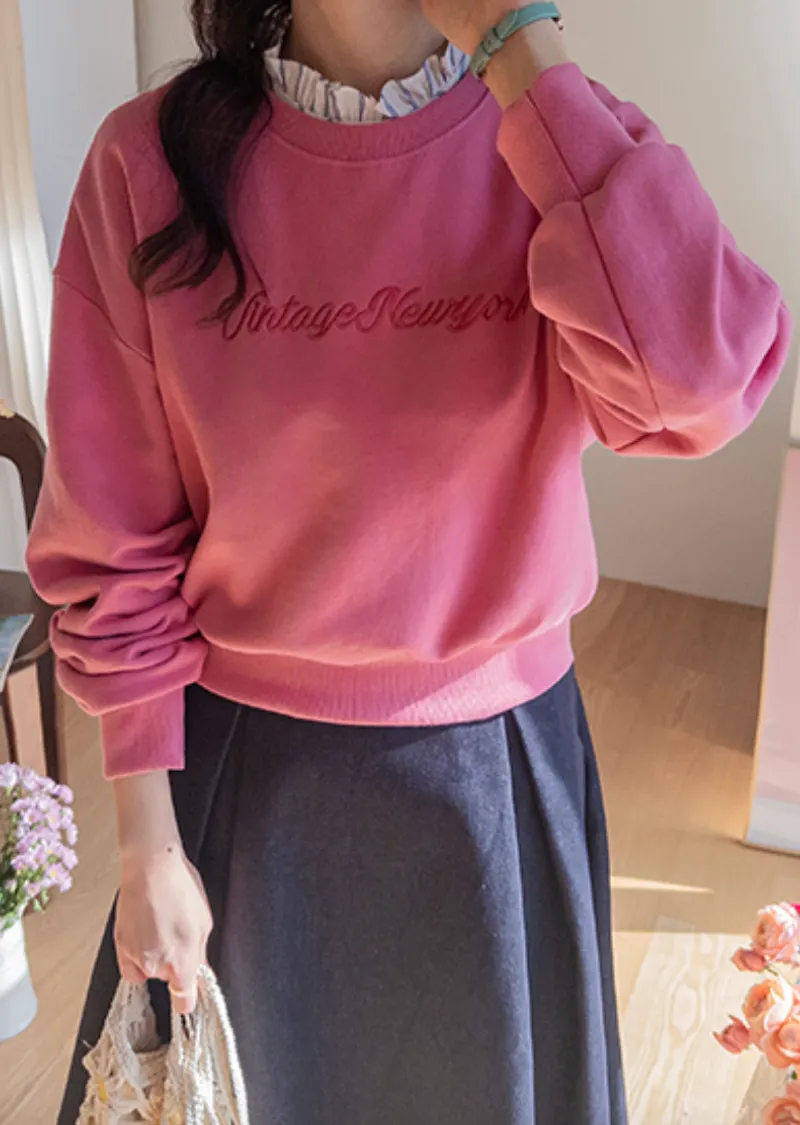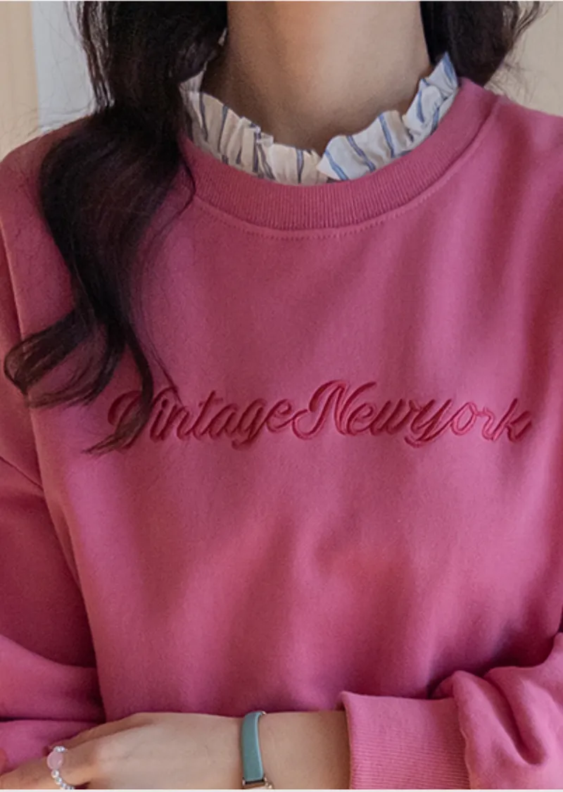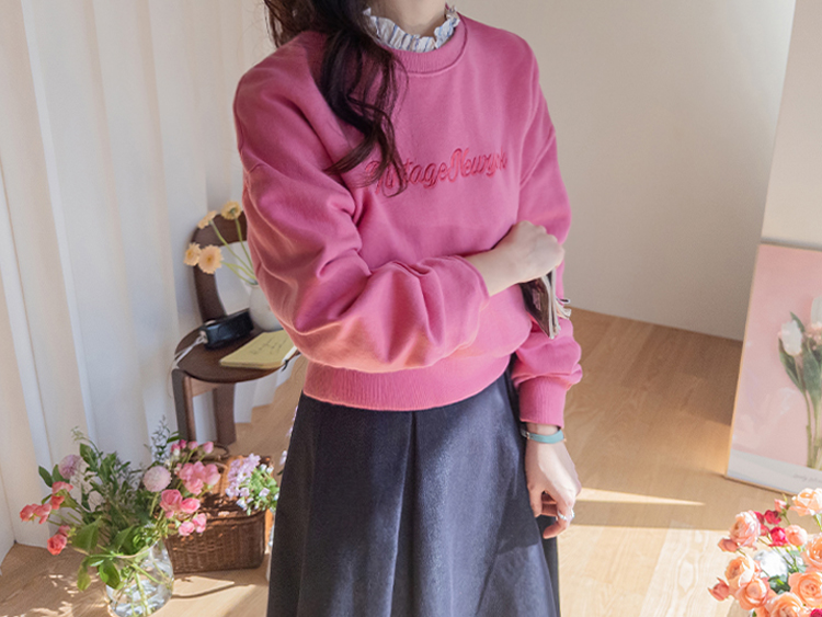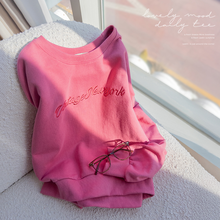 漂亮復古字母刺繡寬鬆版型穿搭上衣