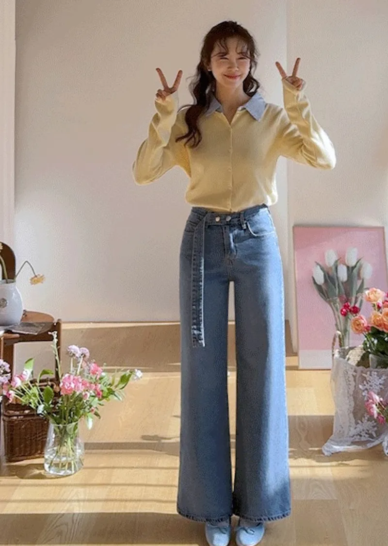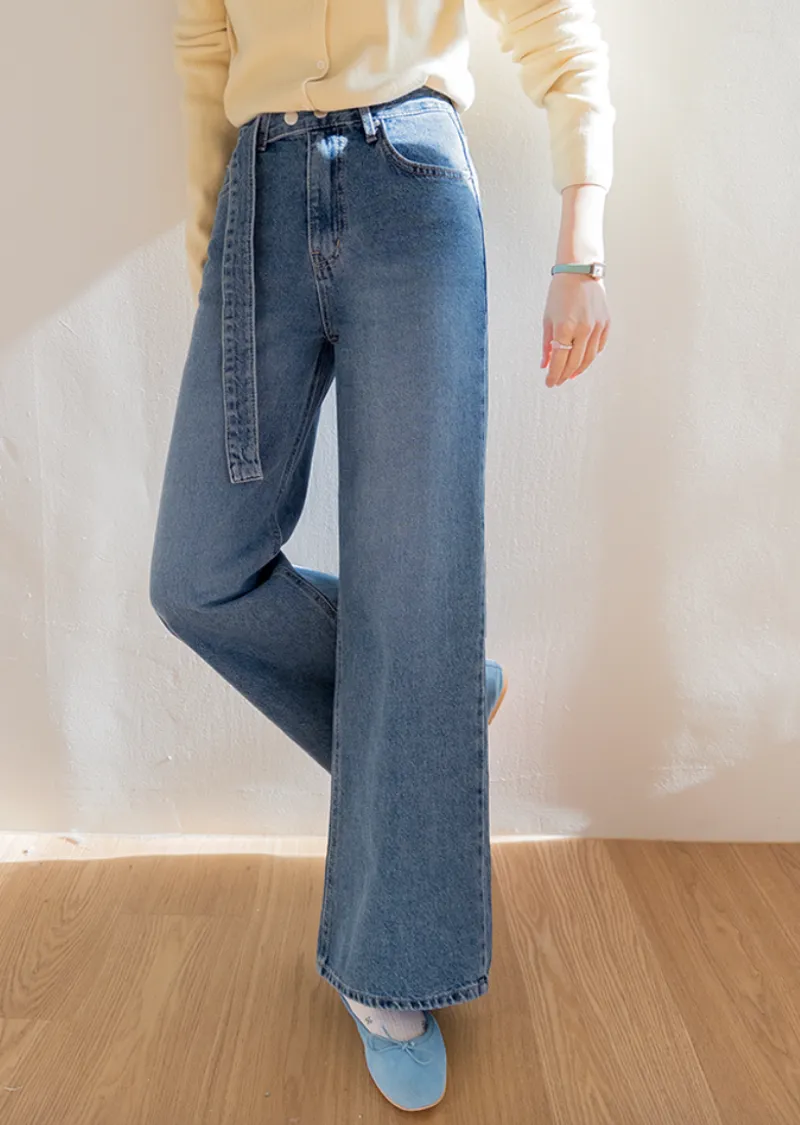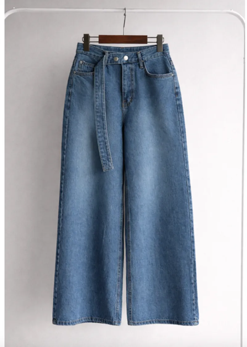 【寬鬆牛仔褲,布料厚實! 】【腰帶設計增添一抹亮色】【自然遮蓋下半身線條! 】【日常穿著的完美之選♥】